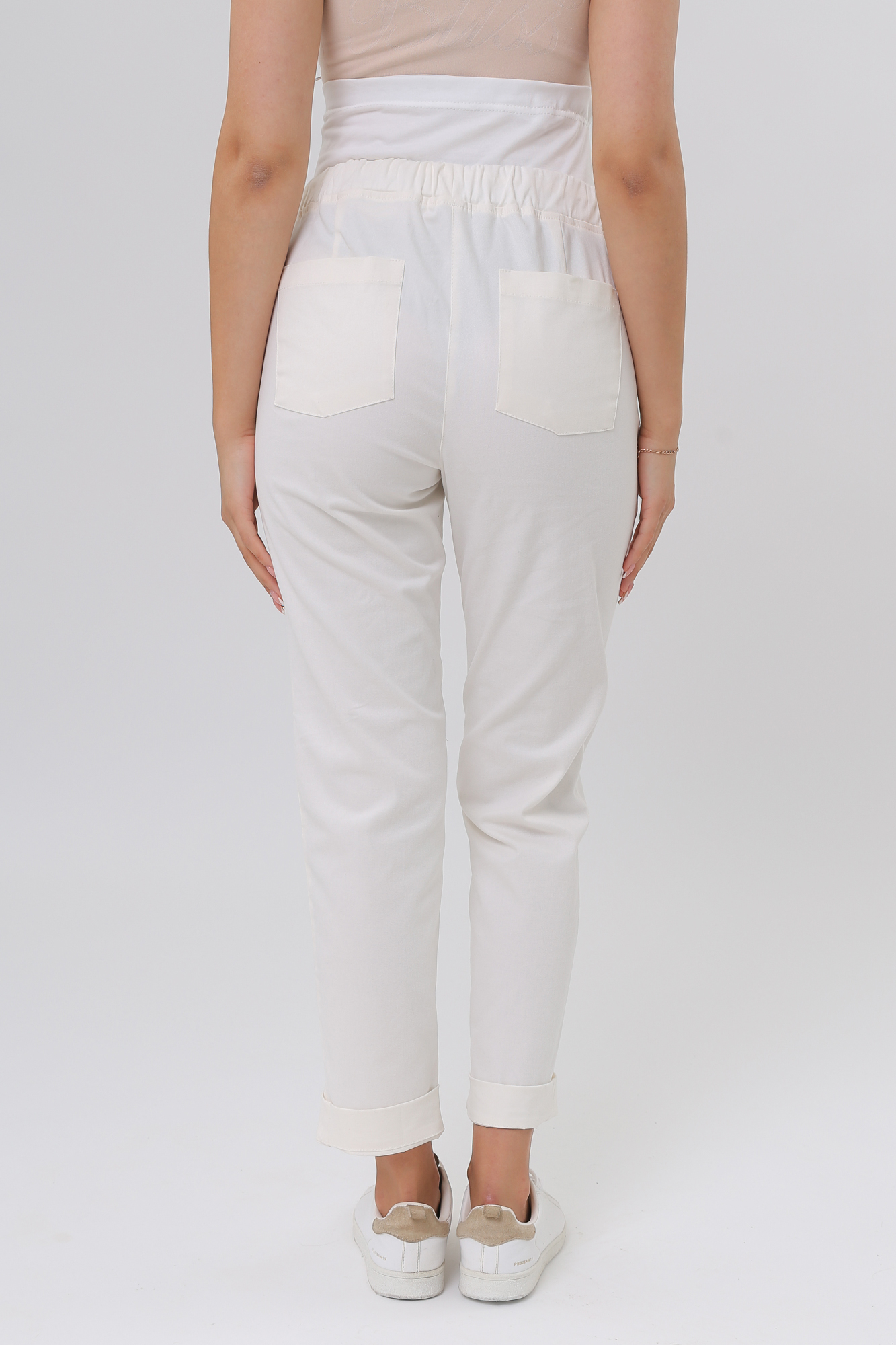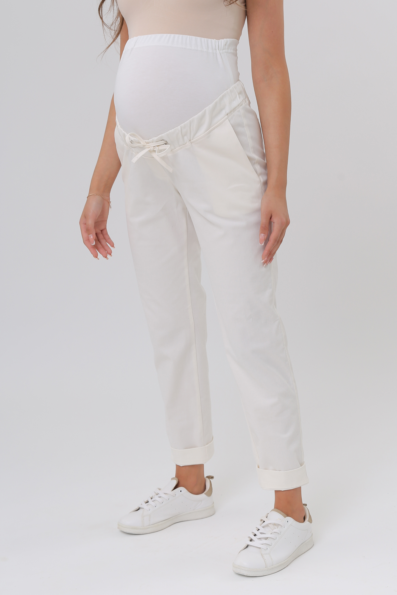 Стильные летние брюки для беременных выполнены из высококачественного твилла (на основе хлопка). Чиносы с высоким трикотажным бандажом и мягкой резинкой под живот не сдавливают, деликатно поддерживают растущий животик. Объем регулируется с помощью перфорированной резинки, перестегивающейся на пуговицу, продетой в верхнюю часть изделия, а так же с помощью шнурка в поясе. Модель оснащена боковыми карманами и задними накладными. Базовый крой брюк позволяет носить их на прогулку, в офис или же деловую встречу. Брюки прекрасно сочетаются с футболками и кроссовками или туфлями и блузками.