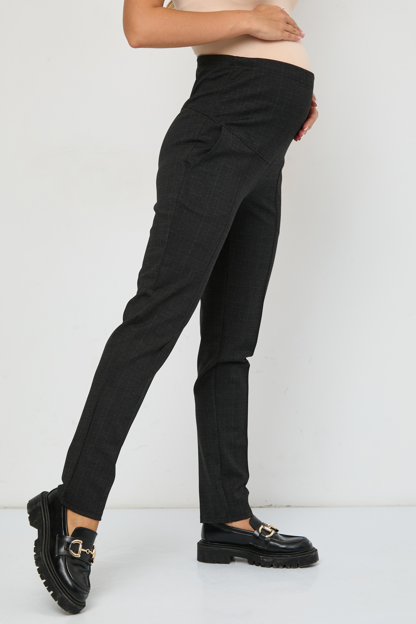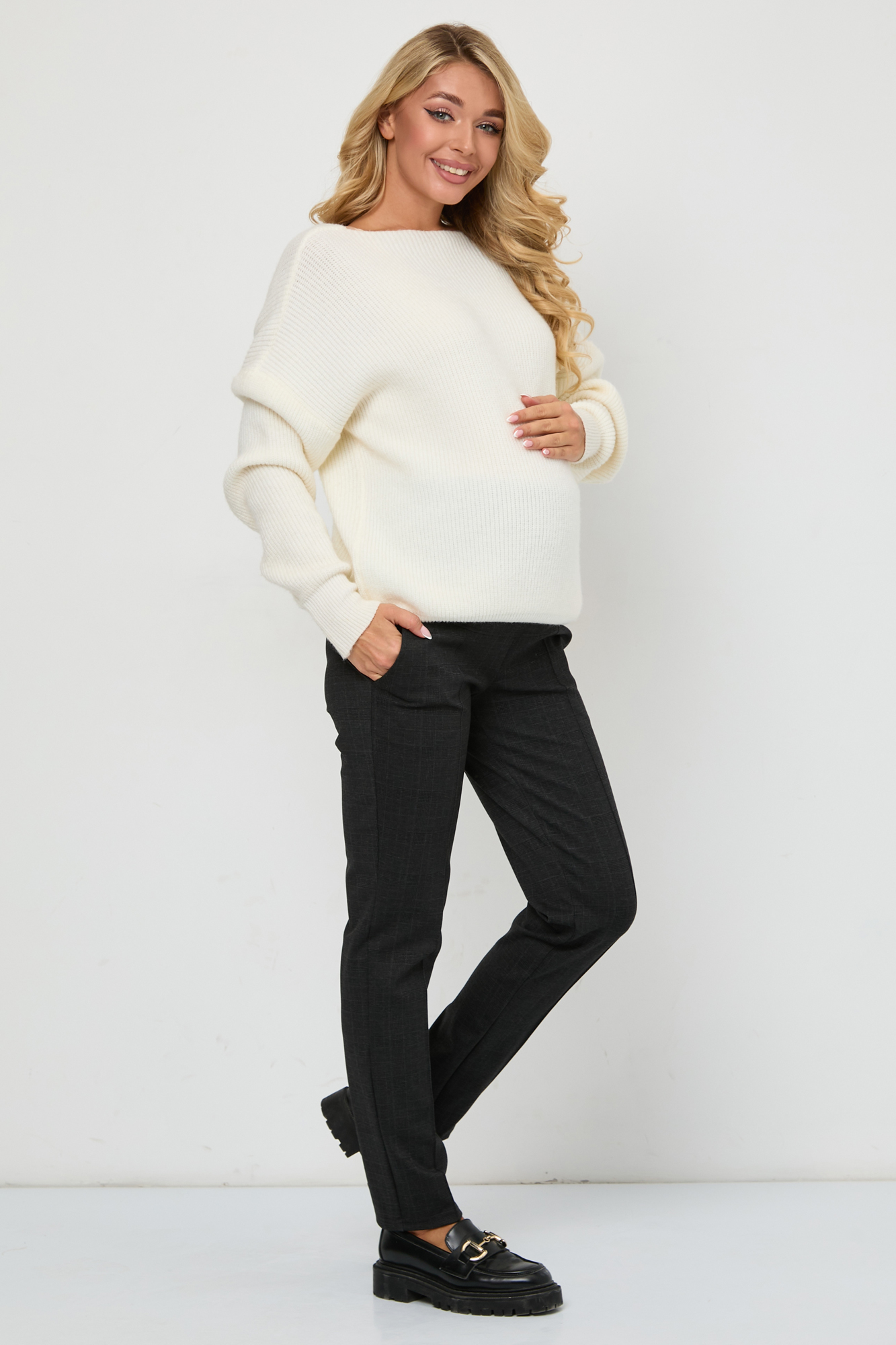 Зауженные брюки для беременных выполнены из плотного джерси. Детали: высокий эластичный бандаж, скошенные боковые карманы, отстроченные стрелки. Объем регулируется с помощью перфорированной резинки, перестегивающейся на пуговицу, продетой в верхнюю часть изделия. Эластичность ткани и регулировка объема обеспечивают идеальную посадку на всем протяжении бременности. В зависимости от подобранных дополнений они могут стать частью и офисного костюма, и одежды для непринуждённого отдыха, и наряда для торжественного события.