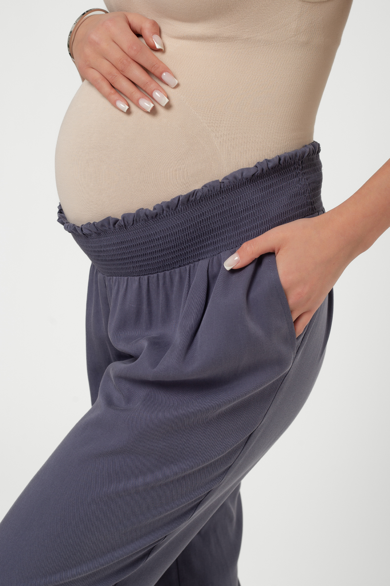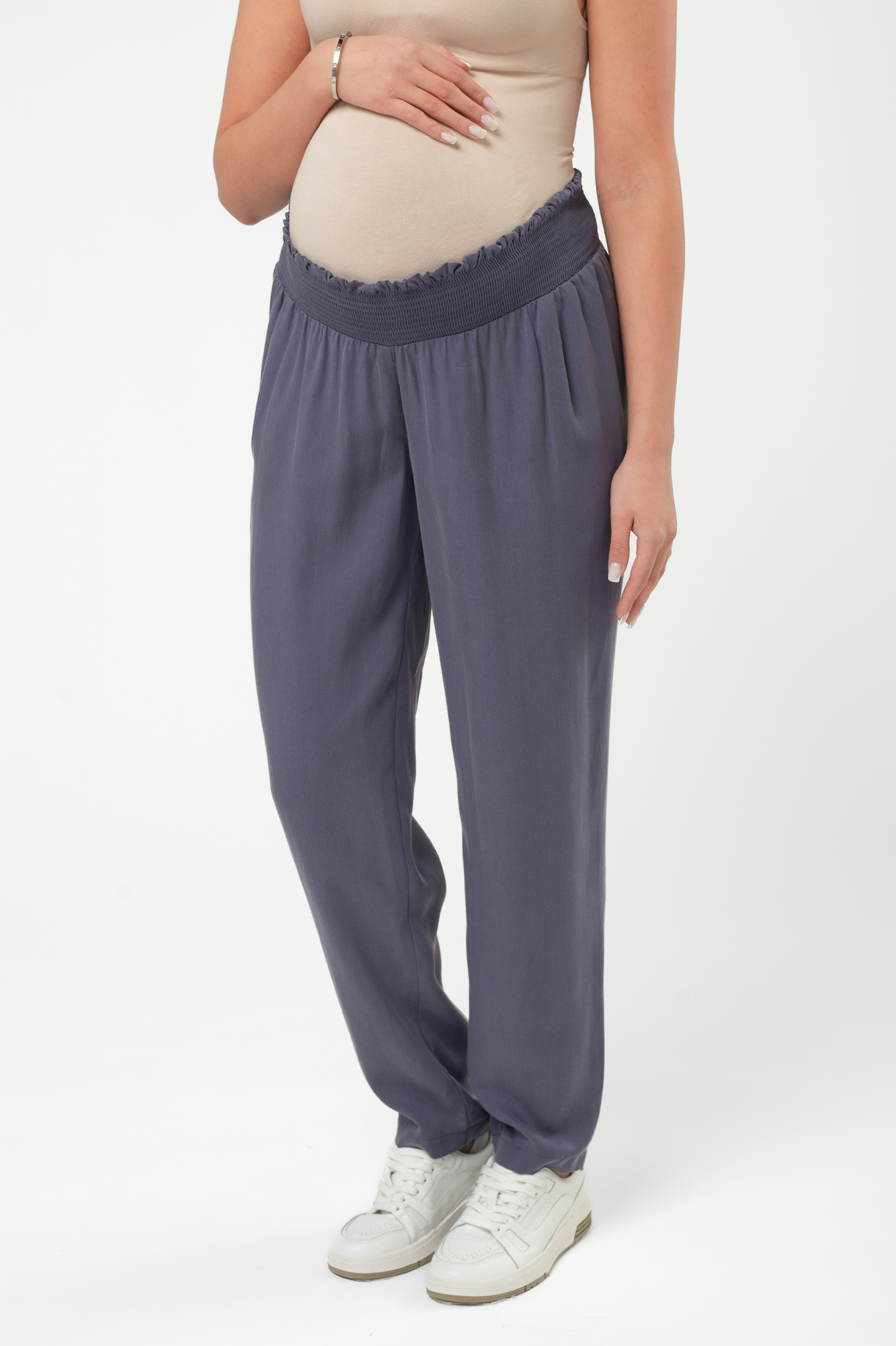 Легкие брюки для беременных выполнены из высококачественной вискозы. Брюки имеют свободный крой с низкой посадкой, что дарит комфорт в носке на протяжении всей беременности, а мягкий пояс аккуратно поддерживает растущий животик. Базовые брюки, благодаря универсальному крою, идеально подходят на любую фигуру. Брюки отлично подходят для прогулок, работы в офисе и просто на каждый день.