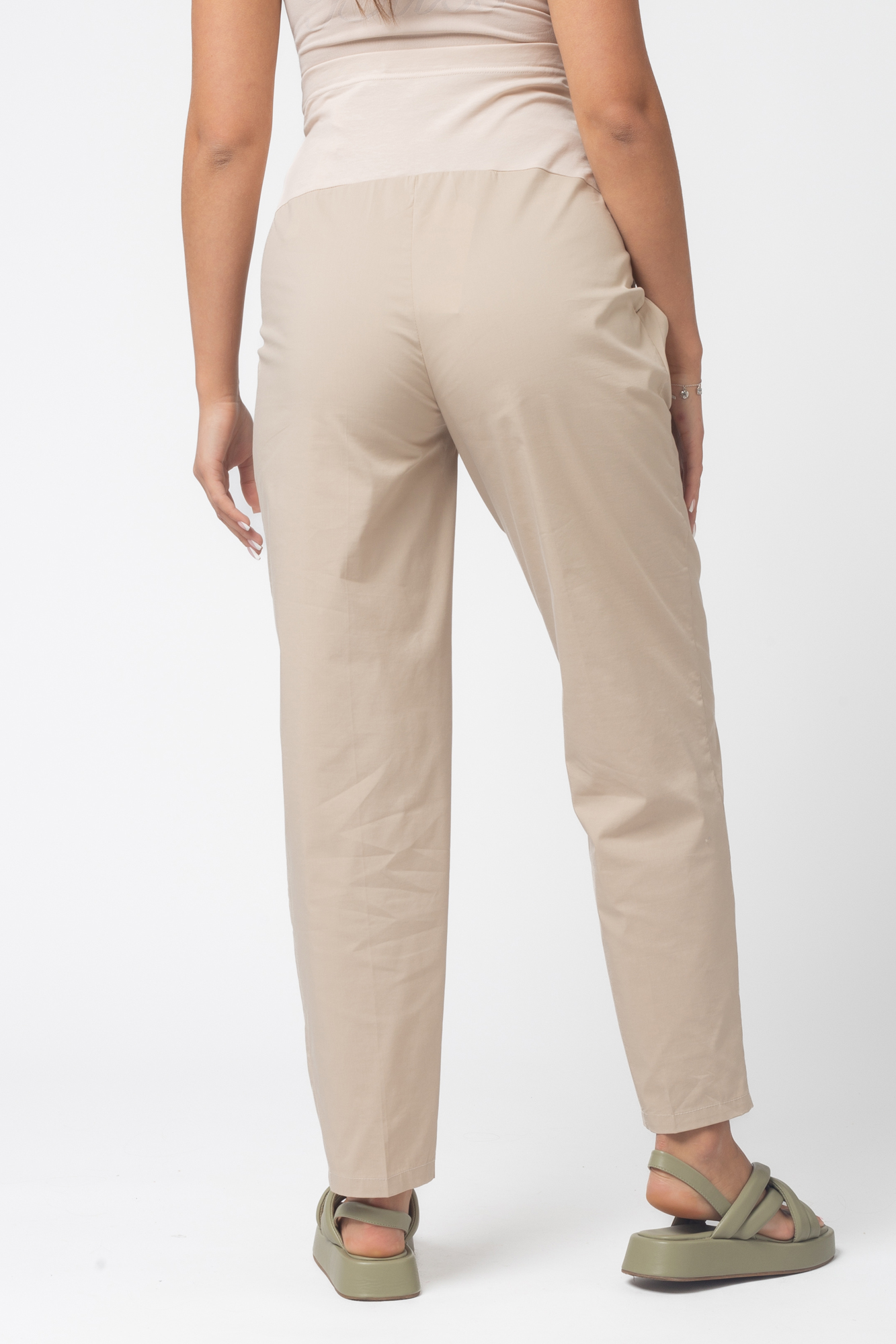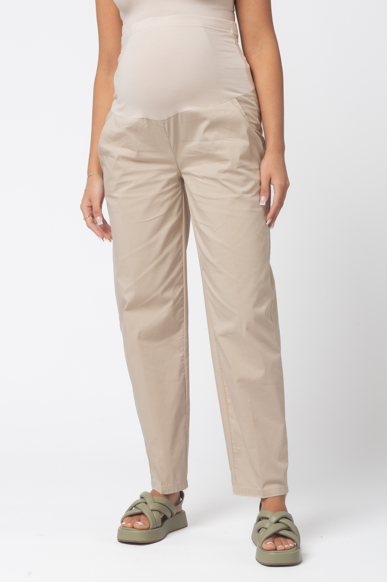 Летние брюки из высококачественного поплина для будущих мам. Брюки с эластичным бандажом обеспечат комфорт на протяжении всей беременности. Объем регулируется с помощью перфорированной резинки, перестегивающейся на пуговицу, продетой в верхнюю часть трикотажной вставки. Изделие выполнено из легкого дышащего материала - идеальный вариант в жаркую погоду.