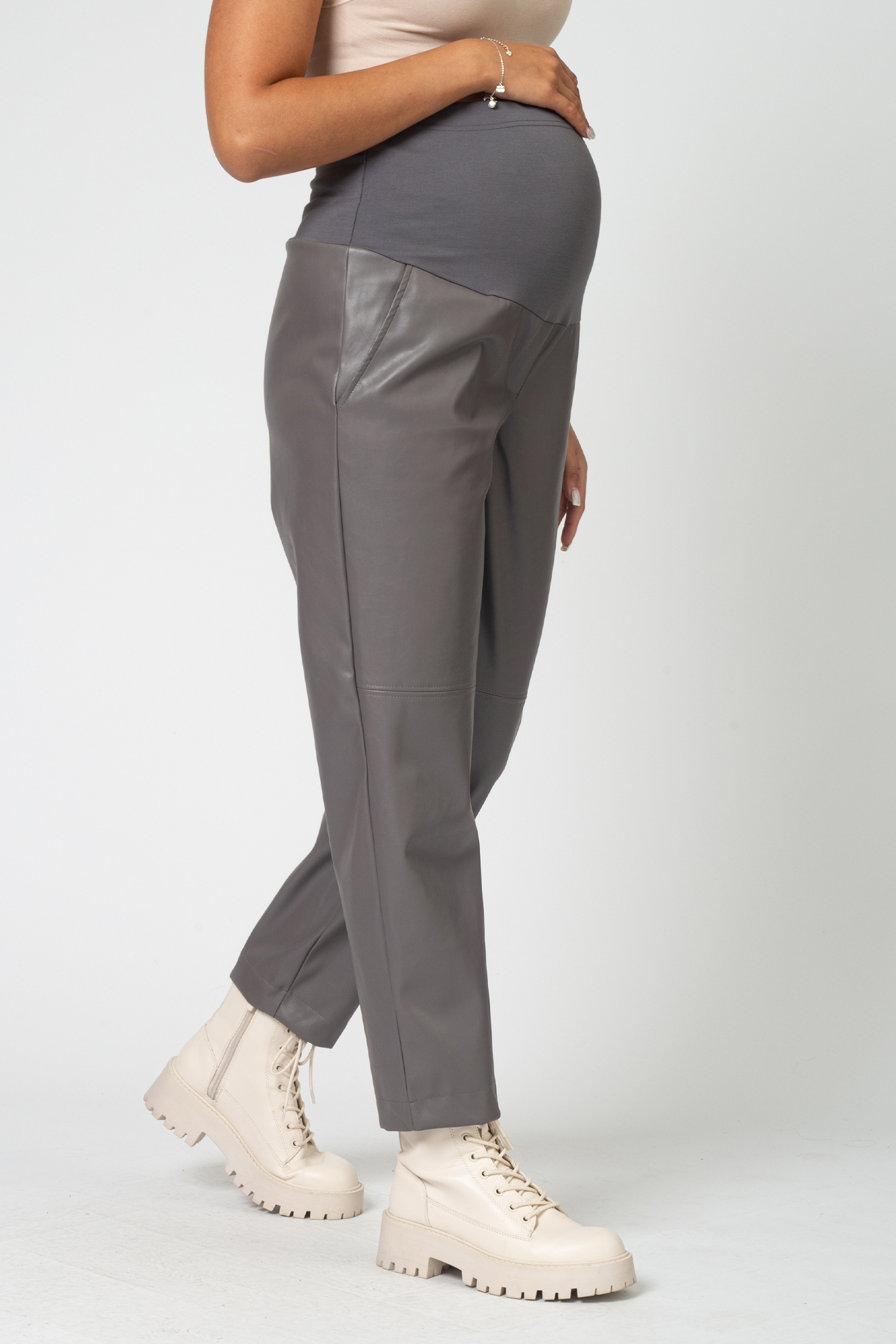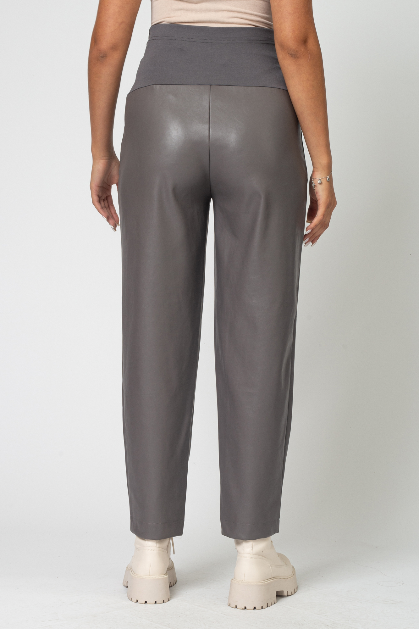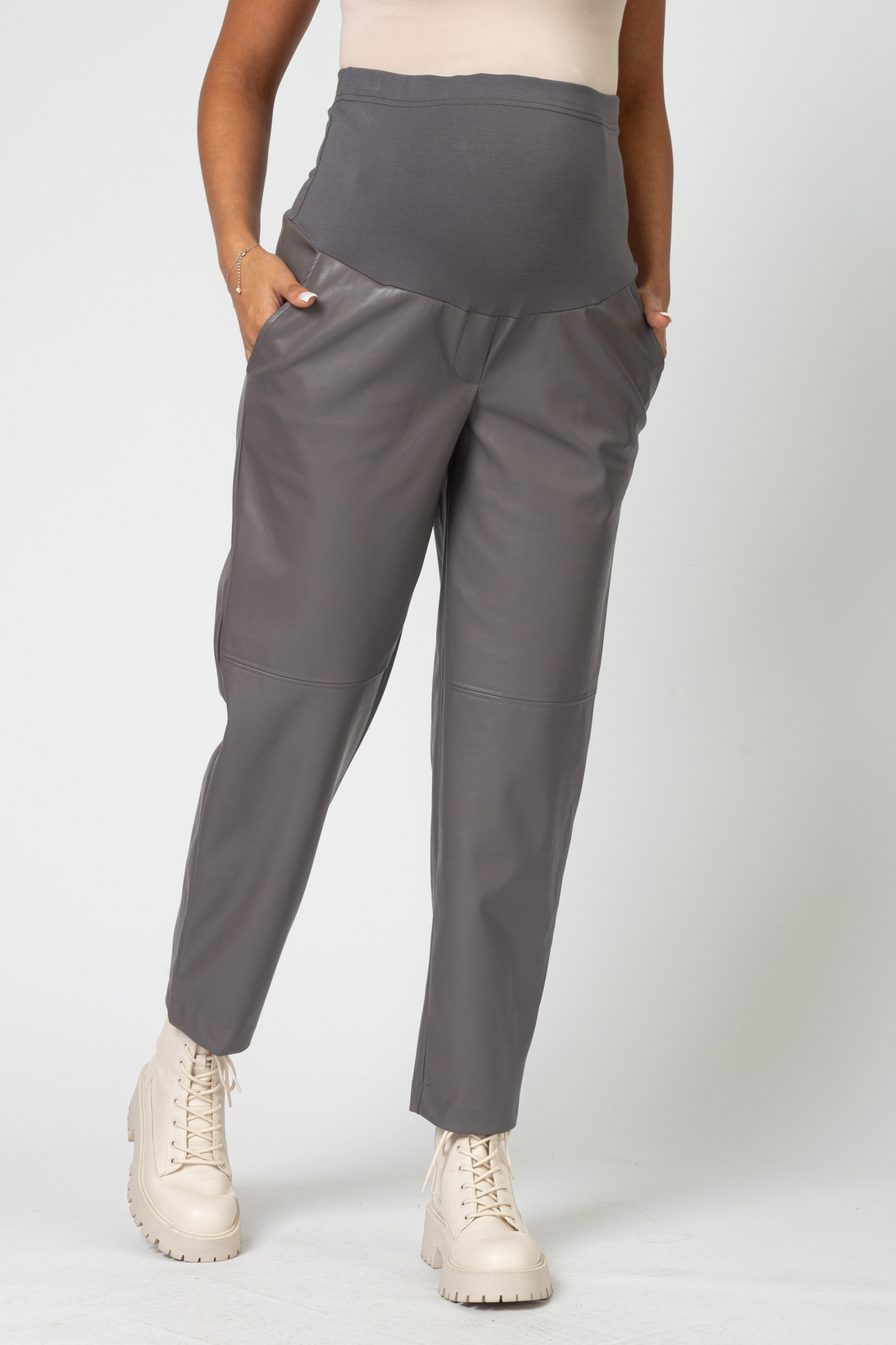 Стильные брюки для беременных из качественной экокожи с эффектной полуматовой фактурой отлично впишутся в гардероб современной будущей мамы. Фасон модели бананы гармонично смотрится на любой фигуре, а высокая посадка с эластичным поясом обеспечивают комфорт на любом месяце беременности. Брюки для беременных из экокожи подойдут для повседневной носки, гармонично впишутся в классический офисный образ, дополнят городской casual look, а при наличии пары ярких аксессуаров вполне может стать частью выходного наряда.