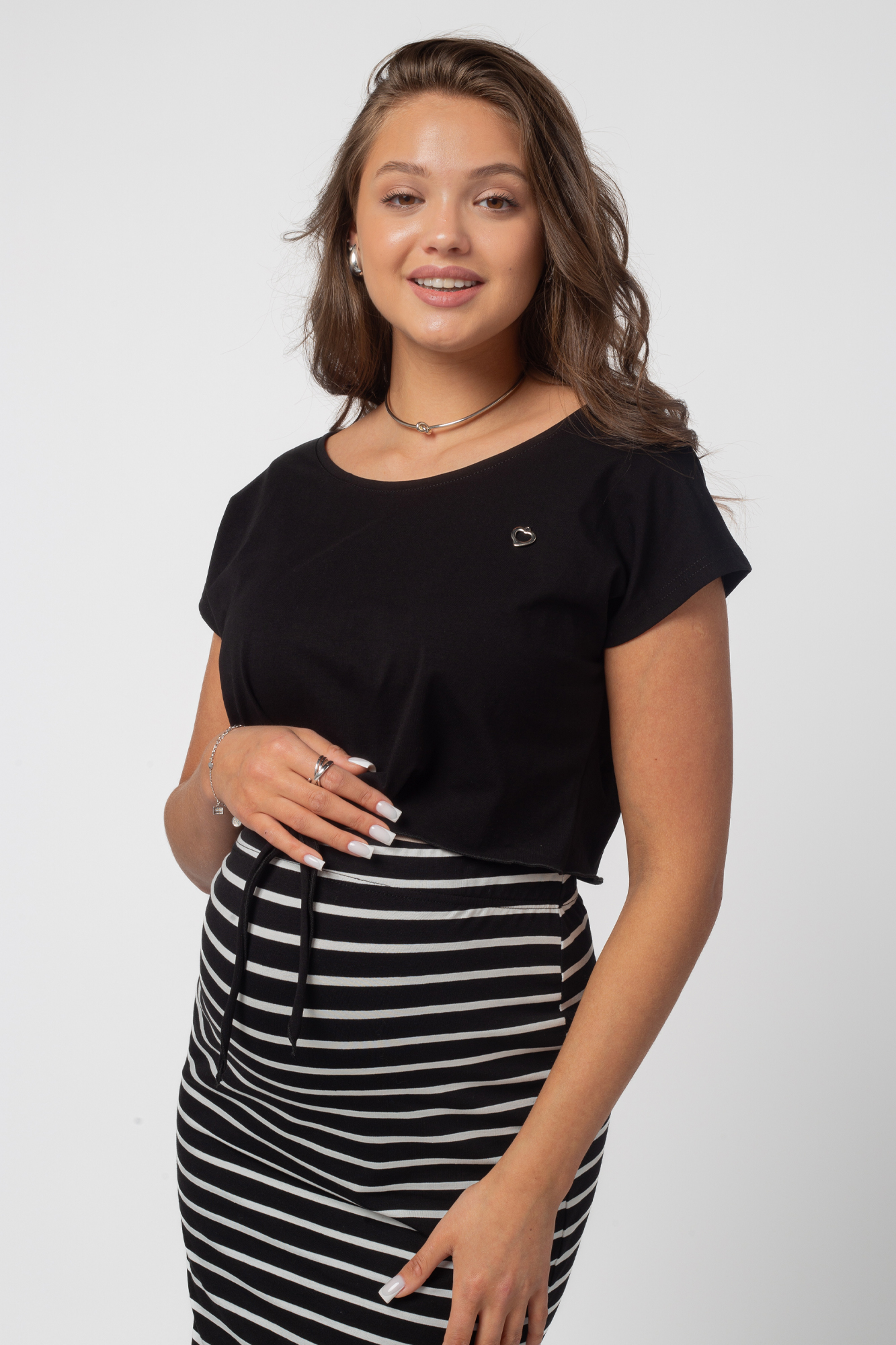 Стильный комплект для беременных состоит из футболки и трикотажной юбки. Футболка-топ с завязками выполнена из хлопка с добавлением эластана. С ним не нарушается кожное дыхание, легко происходит впитывание и испарение влаги. В такой одежде вы будете чувствовать себя комфортно и легко. Особый крой позволяет носить изделие на всем протяжении беременности. Эластичная юбка с завышенной талией мягко облегает и не сдавливает живот. Разрезы по бокам изделия обеспечат свободу движений. Футболку и юбку можно носить как вместе, так и сочетать с другими элементами гардероба.