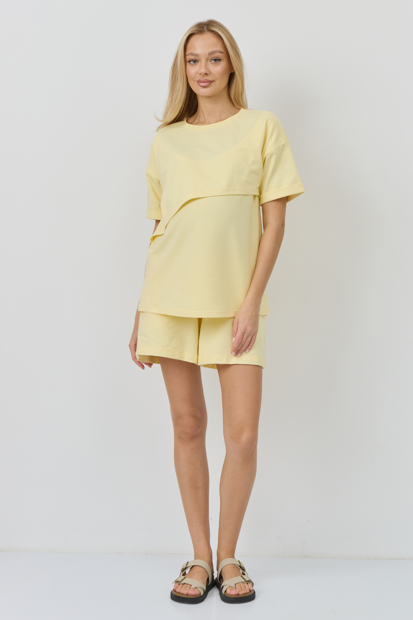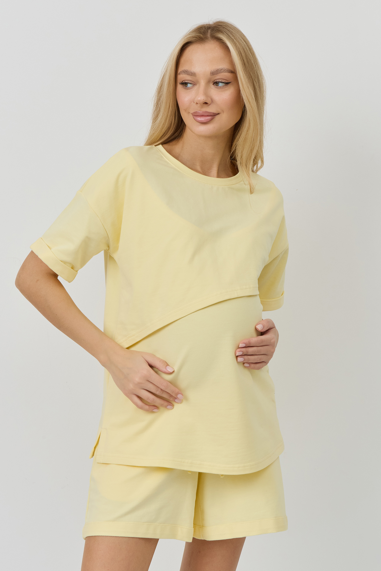 Летний костюм для беременных сшит из тонкого двухниточного футера. Ткань на основе хлопка имеет дышащую структуру, приятна на ощупь и гипоаллергенна. Футболка оверсайз со спущенной линией плеча дарит полную свободу движениям. Секрет для кормления позволяет с комфортом покормить малыша на прогулке или в гостях. Короткие широкие шорты с эластичным поясом и кулиской можно носить на любом месяце беременности и даже после родов. Стильный женский костюм подойдет для отдыха и путешествий, занятий спортом, посещений врача, а также для ношения дома. В линейке представлены нежные однотонные расцветки. Размерный ряд включает все стандартные модели.