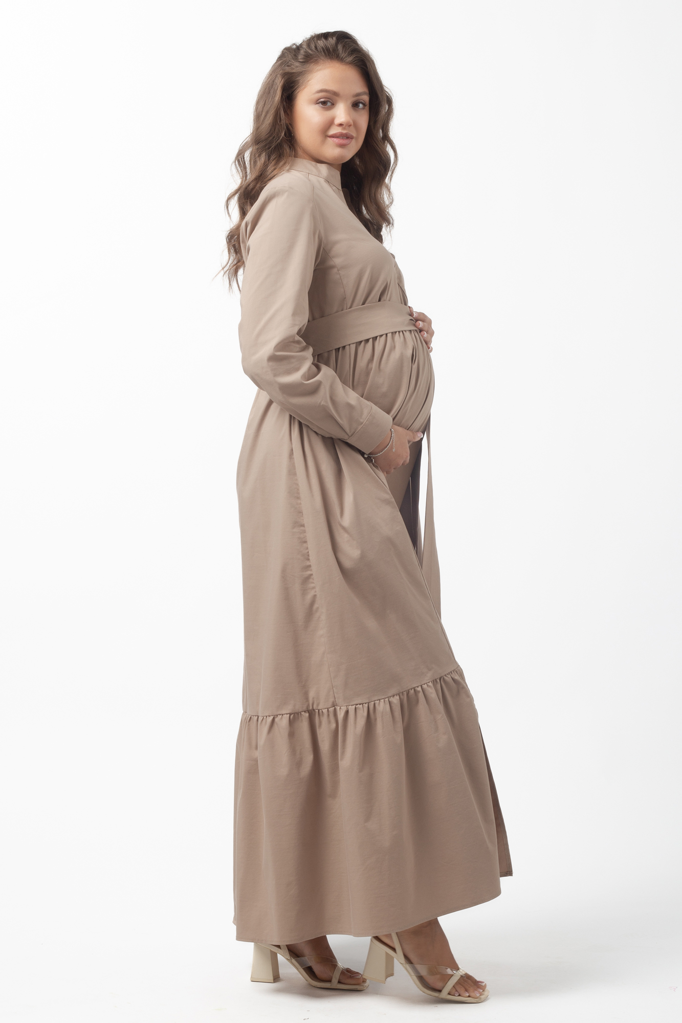 Стильное длинное платье для беременных. Отложной воротник, широкий волан по низу изделия. Платье для будущих мам подходит на любой срок беременности и идеально сидит на фигуре. Длина макси делает его комфортным и отлично подчеркнет Вашу женственность. Базовый крой дает возможность стилизовать его от спортивного платья до вечернего и нарядного, подчеркнув образ аксессуарами; носить его как повседневное, а также в офис, в театр, на прогулки. Легкое платье отлично впишется в летний пляжный гардероб, пригодится на море и создаст незабываемое отпускное настроение.