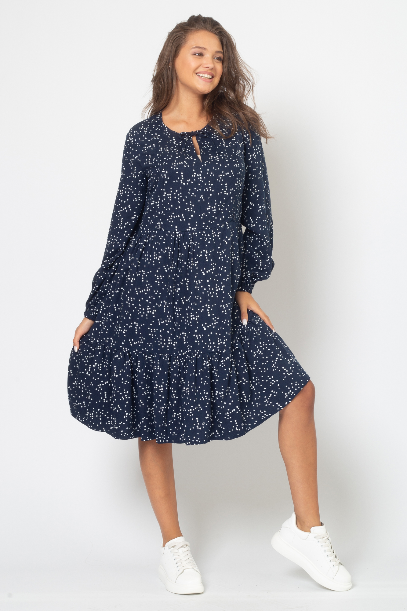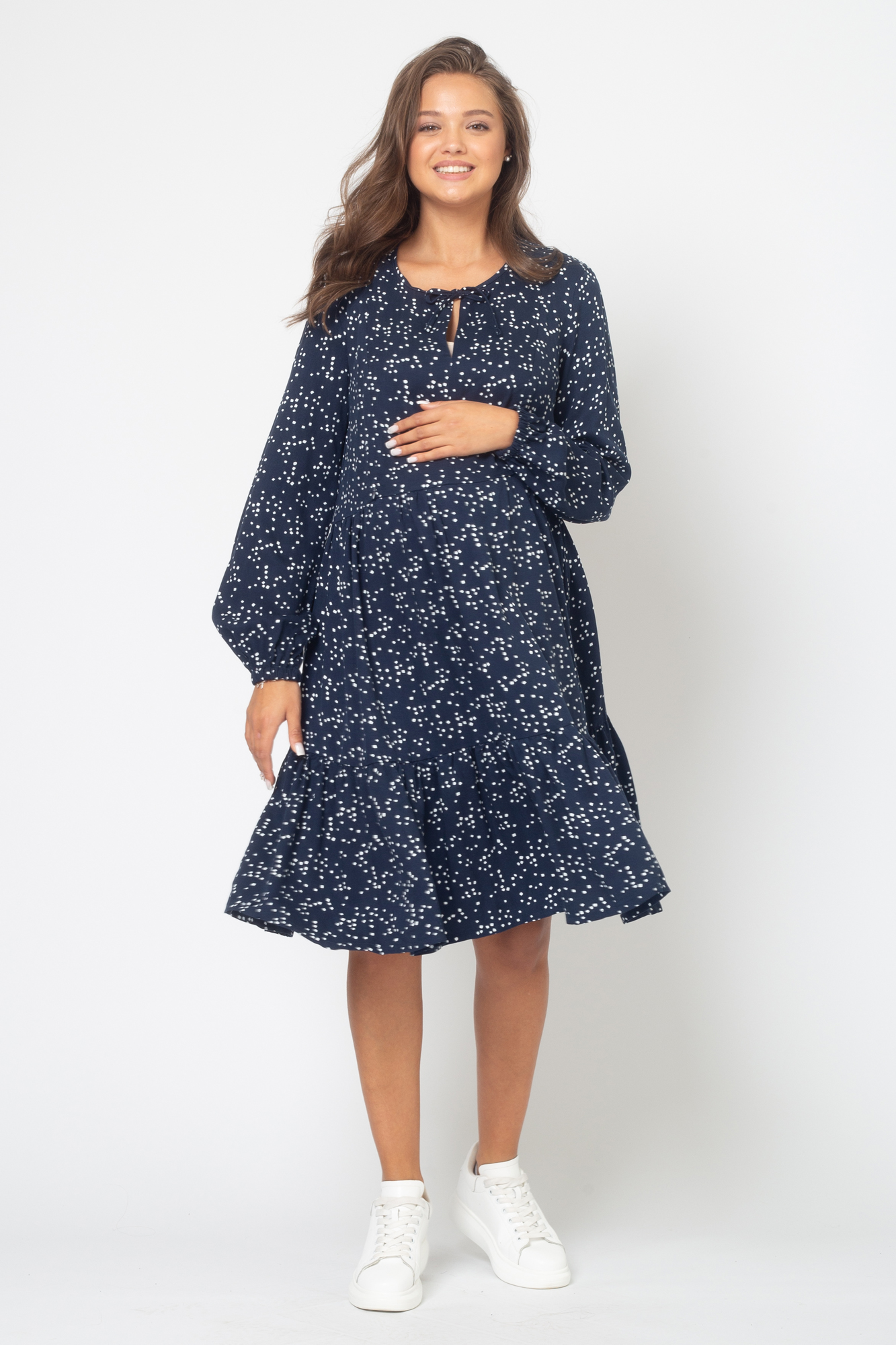 Женственное платье для беременных и кормящих мам выполнено из приятной к телу и хорошо дышащей вискозы создаст комфорт как для мамы, так и для малыша. Платье женское повседневное для работы в офисе, деловых встреча, романтических свиданий и просто на каждый день. Незаметные потайные молнии обеспечат легкий доступ к груди и удобное кормление малыша, а также позволят носить платье с секретом для кормления даже после завершения грудного вскармливания. На модели длинный воздушный рукав на резинке, округлый вырез горловины с завязками. Свободный силуэт оверсайз позволяет носить его на любом сроке беременности, а после рождения малыша скроет временные несовершенства фигуры. Платье трапеция для беременных и кормящих мам на праздник и выписку из роддома. Нарядное праздничное платье вечернее летящего силуэта будущим мамам.