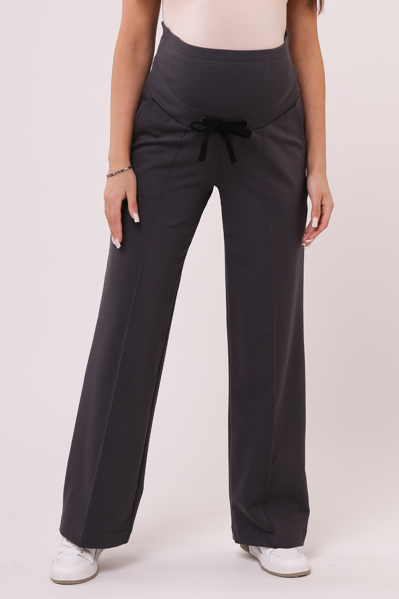Стильные повседневные брюки для беременных из высококачественного двухниточного футера. Высокий эластичный бандаж мягко и деликатно поддерживает растущий животик. Объем регулируется шнурками в поясе и перфорированной резинкой, перестегивающейся на пуговицу, что позволяет носить брюки от начала до конца беременности и после родов. Изделие декорировано отстроченными стрелками. Невероятно комфортная модель для прогулок, занятий спортом и просто на каждый день.