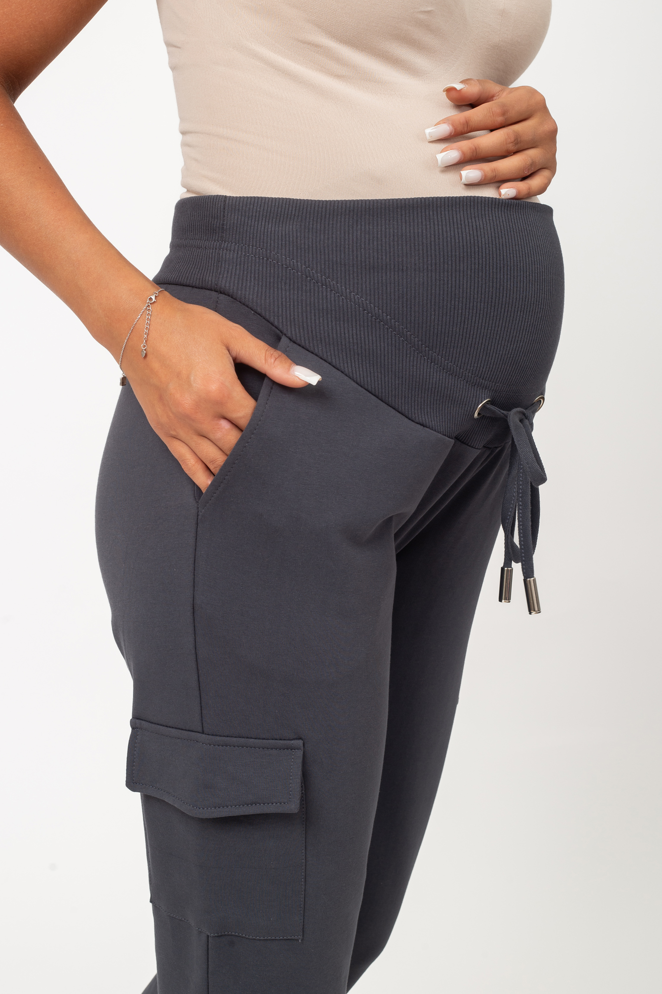 Зауженные спортивные брюки из высококачественного двухниточного футера для беременных. Высокий эластичный бандаж мягко и деликатно поддерживает растущий животик. Объем регулируется шнурками в поясе и перфорированной резинкой, перестегивающейся на пуговицу, что позволяет носить брюки от начала до конца беременности и после родов. Невероятно комфортная модель для прогулок, занятий спортом и просто на каждый день.