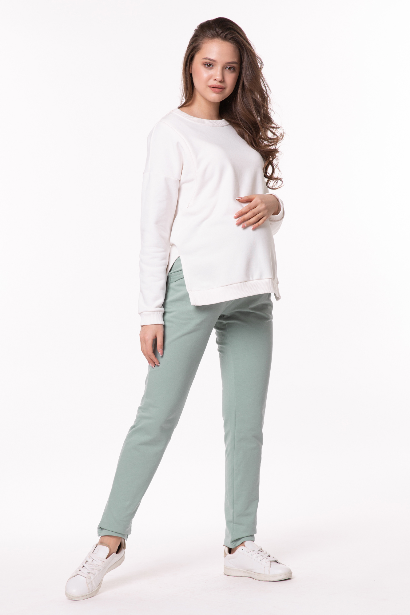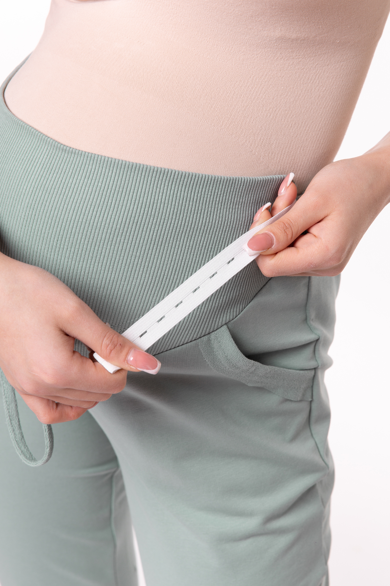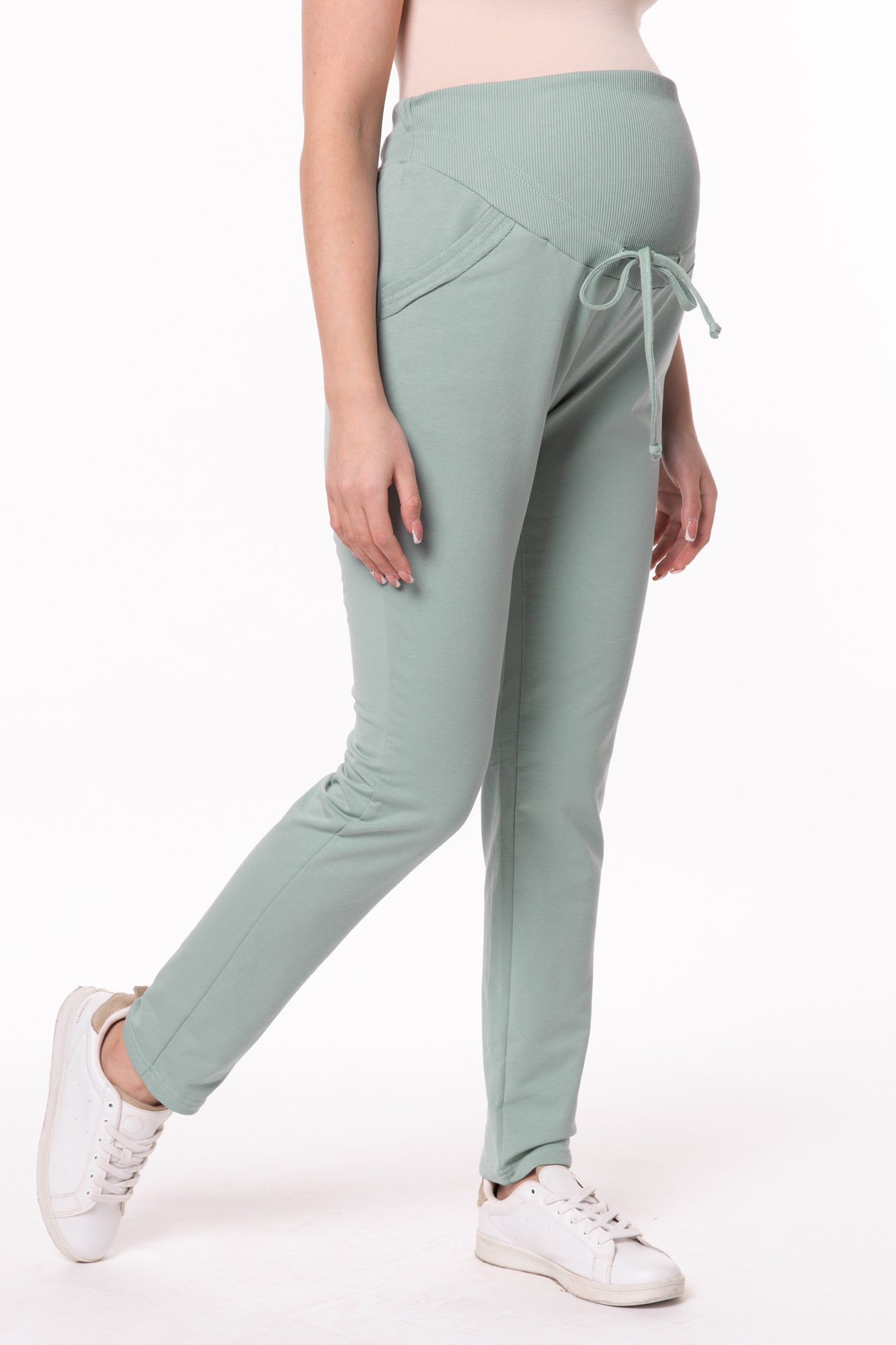 Зауженные спортивные брюки из футера для беременных. Высокий эластичный бандаж мягко и деликатно поддерживает растущий животик. Объем регулируется шнурками в поясе и перфорированной резинкой, перестегивающейся на пуговицу, что позволяет носить брюки от начала до конца беременности и после родов. Невероятно комфортная модель для прогулок, занятий спортом и просто на каждый день.