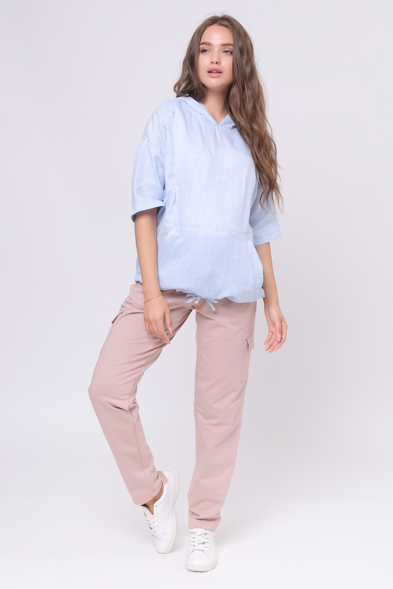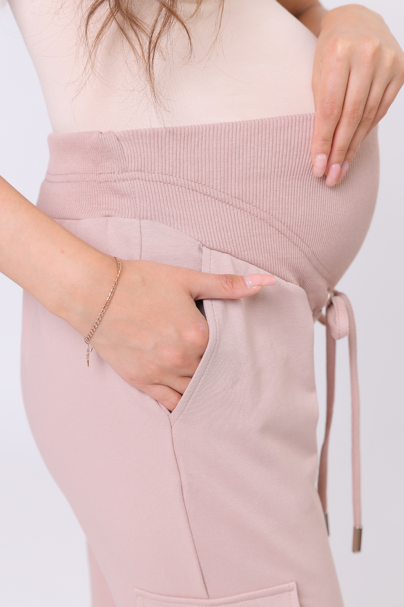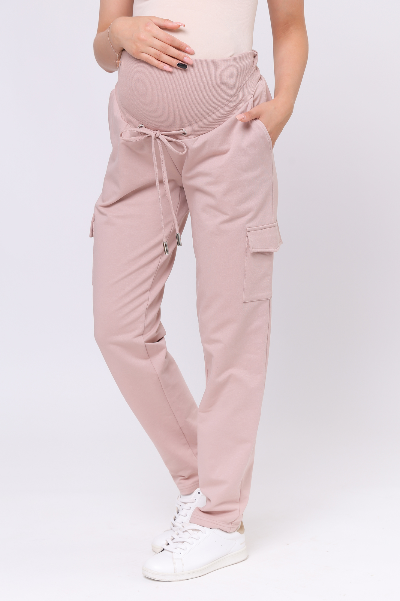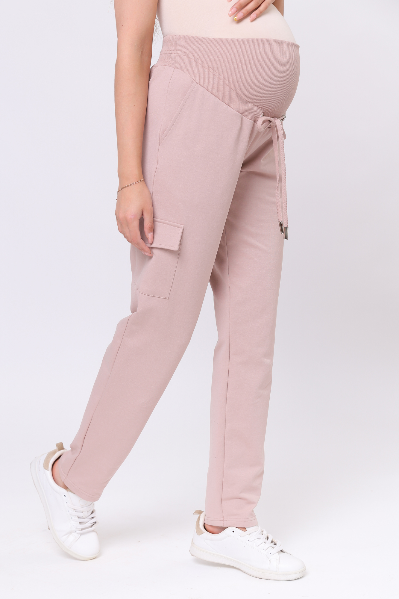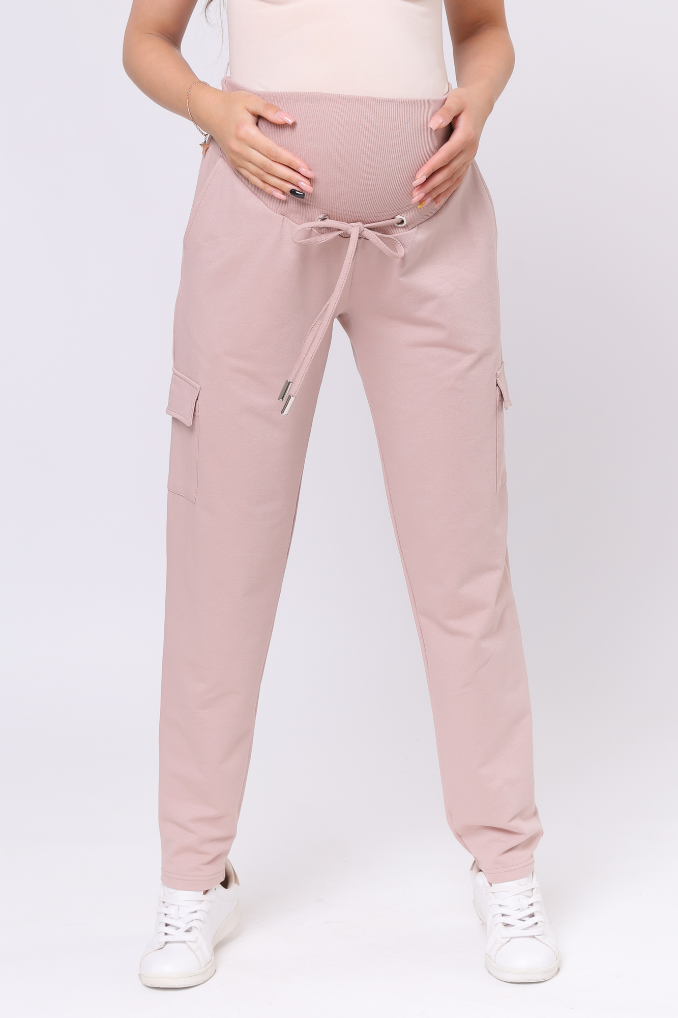 Зауженные спортивные брюки из высококачественного двухниточного футера для беременных. Высокий эластичный бандаж мягко и деликатно поддерживает растущий животик. Объем регулируется шнурками в поясе и перфорированной резинкой, перестегивающейся на пуговицу, что позволяет носить брюки от начала до конца беременности и после родов. Невероятно комфортная модель для прогулок, занятий спортом и просто на каждый день.