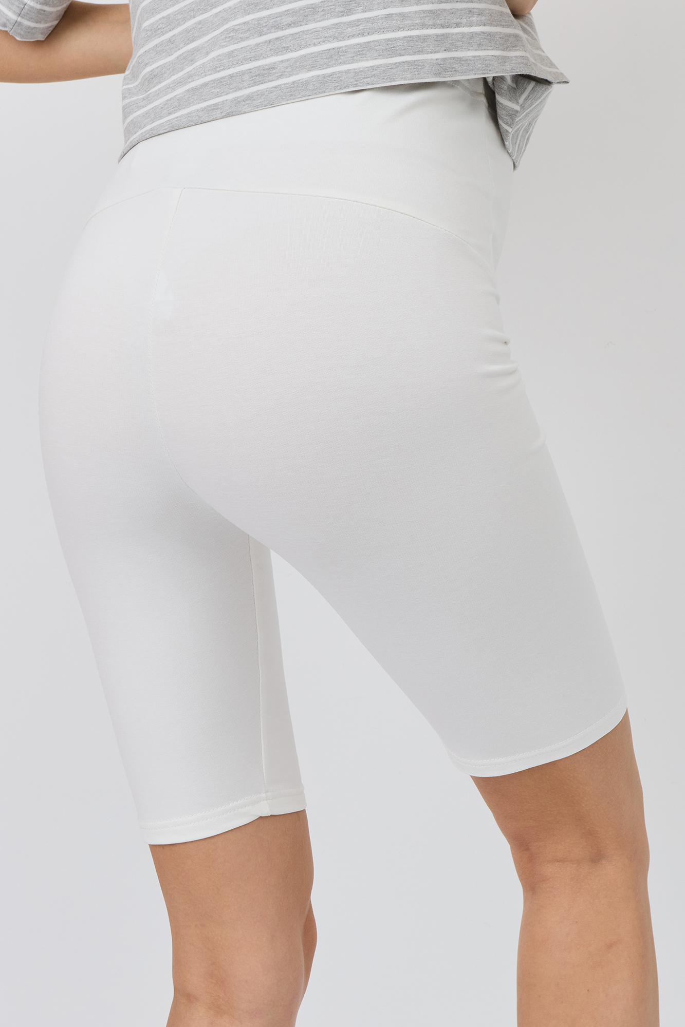 Низ — велосипедки с высокой посадкой и завышенной талией, которые мягко облегают тело и обеспечивают надёжную поддержку живота. В области пояса предусмотрена регулировка объема с помощью резинки, что делает велосипедки максимально удобными на любом сроке беременности. Эластичный крой и приятная к телу ткань дарят ощущение свободы как дома, так и на прогулке.