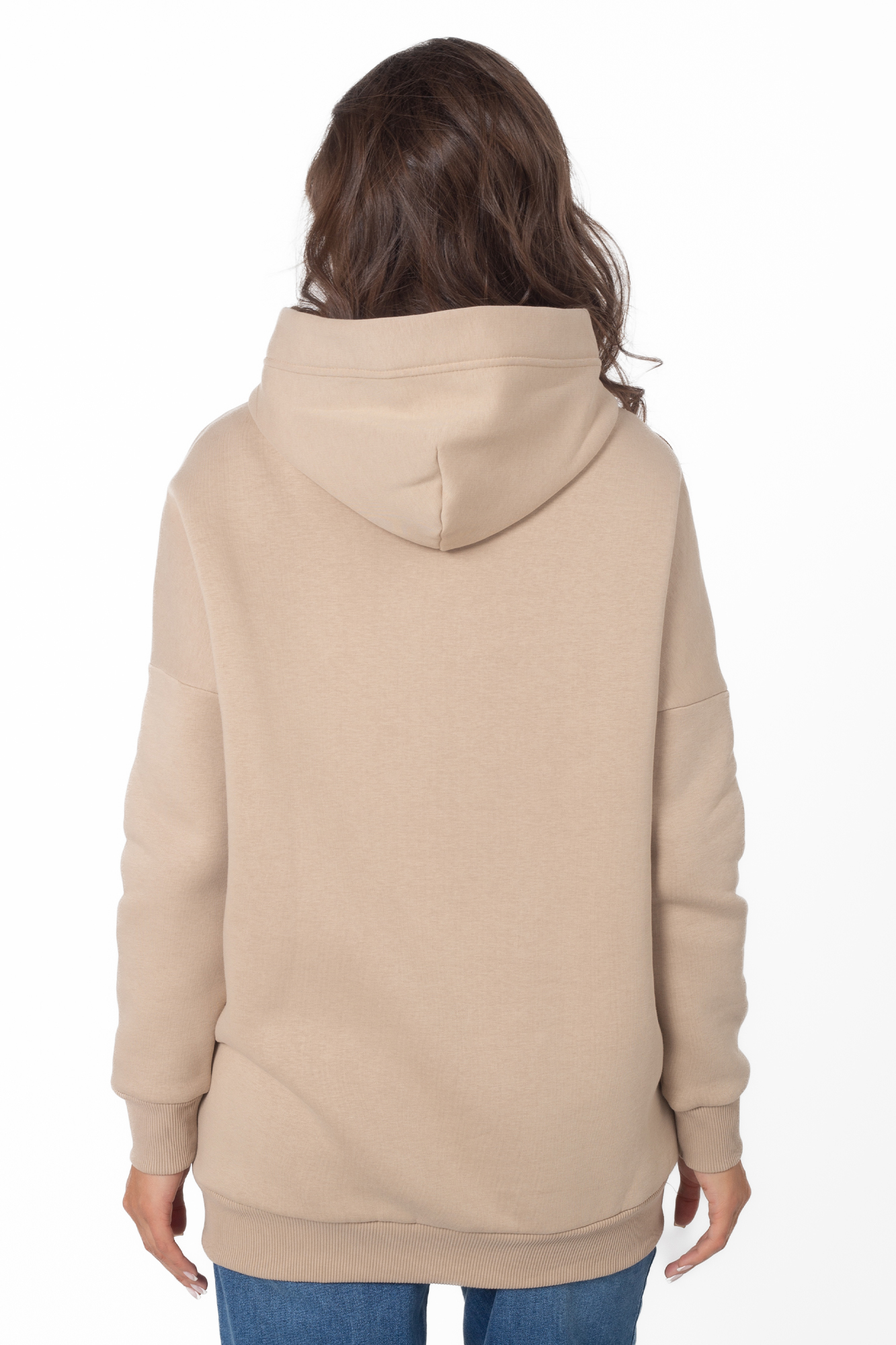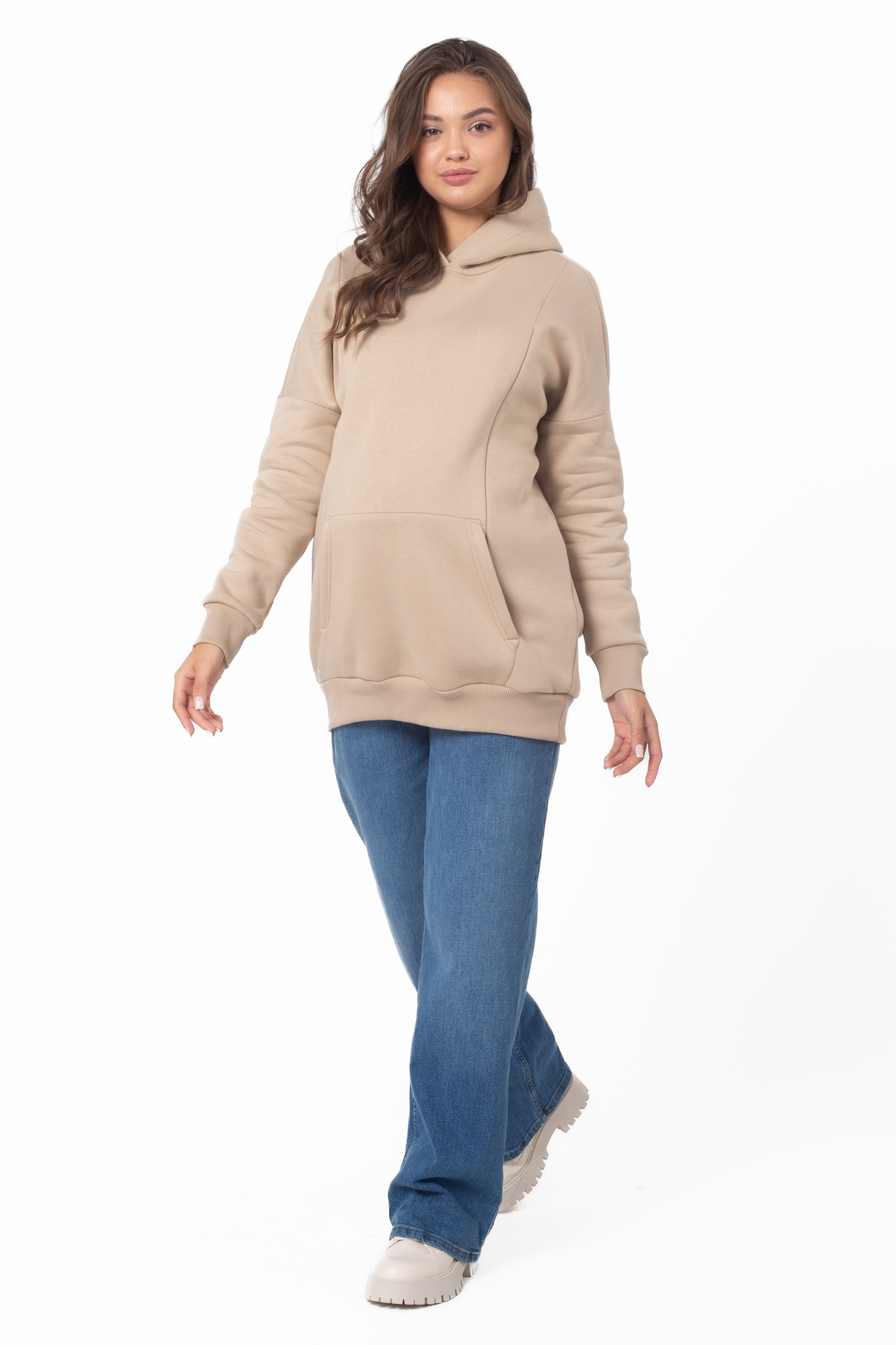 Базовая толстовка для беременных и кормящих женщин выполнена из качественного трехниточного футера с начесом. Фасон изделия по последним трендам: свободный крой оверсайз, средняя длина, длинный рукав на манжете и капюшон. На животе предусмотрен вместительный карман-кенгуру. Худи дополнит женский гардероб на любом сроке беременности, а также подойдет кормящим мамам: по бокам вшиты скрытые молнии для комфортного кормления малыша. Сочетать толстовку можно с большинством повседневных женских вещей - джинсами и леггинсами, футболками и майками, курткой и плащом. Вещь подойдет для ежедневного ношения, занятий спортом, путешествий и отдыха. В размерной линейке представлены стандартные размеры.