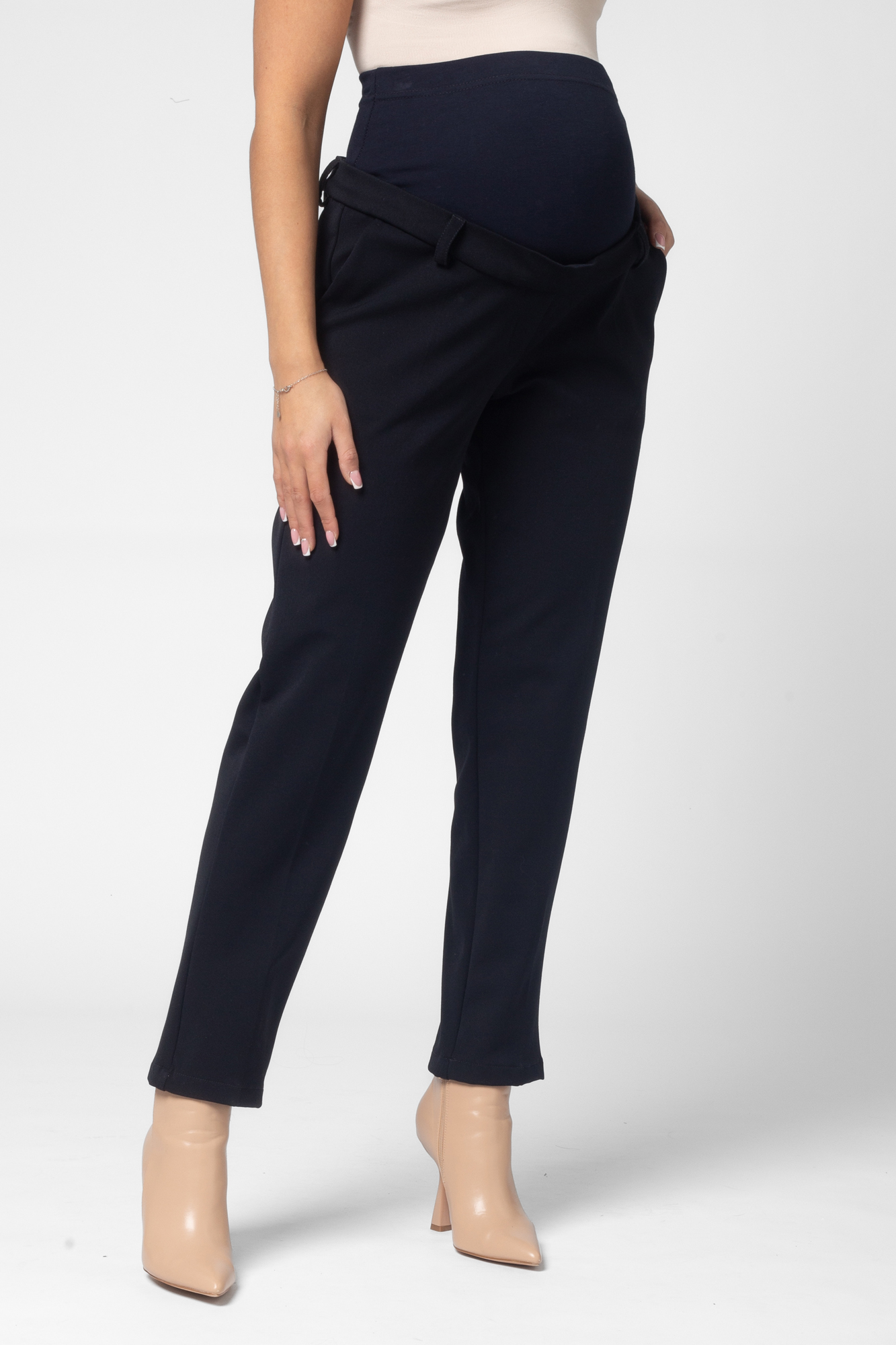 Утепленные брюки из плотного габардина для беременных с начесом. Высококачественная ткань не пиллингуется, обладает высокой износостойкостью, проста в уходе. Высокий трикотажный бандаж не сдавливвает, мягко и деликатно поддерживает растущий животик. Детали: скошенные карманы, регулировка объема для животика осуществляется при помощи резинки, продетой в верхнюю часть брюк. В зависимости от подобранных дополнений их можно носить в офис, на торжество и просто каждый день. Осенние теплые брюки станут незаменимой частью базового гардероба будущей мамы.