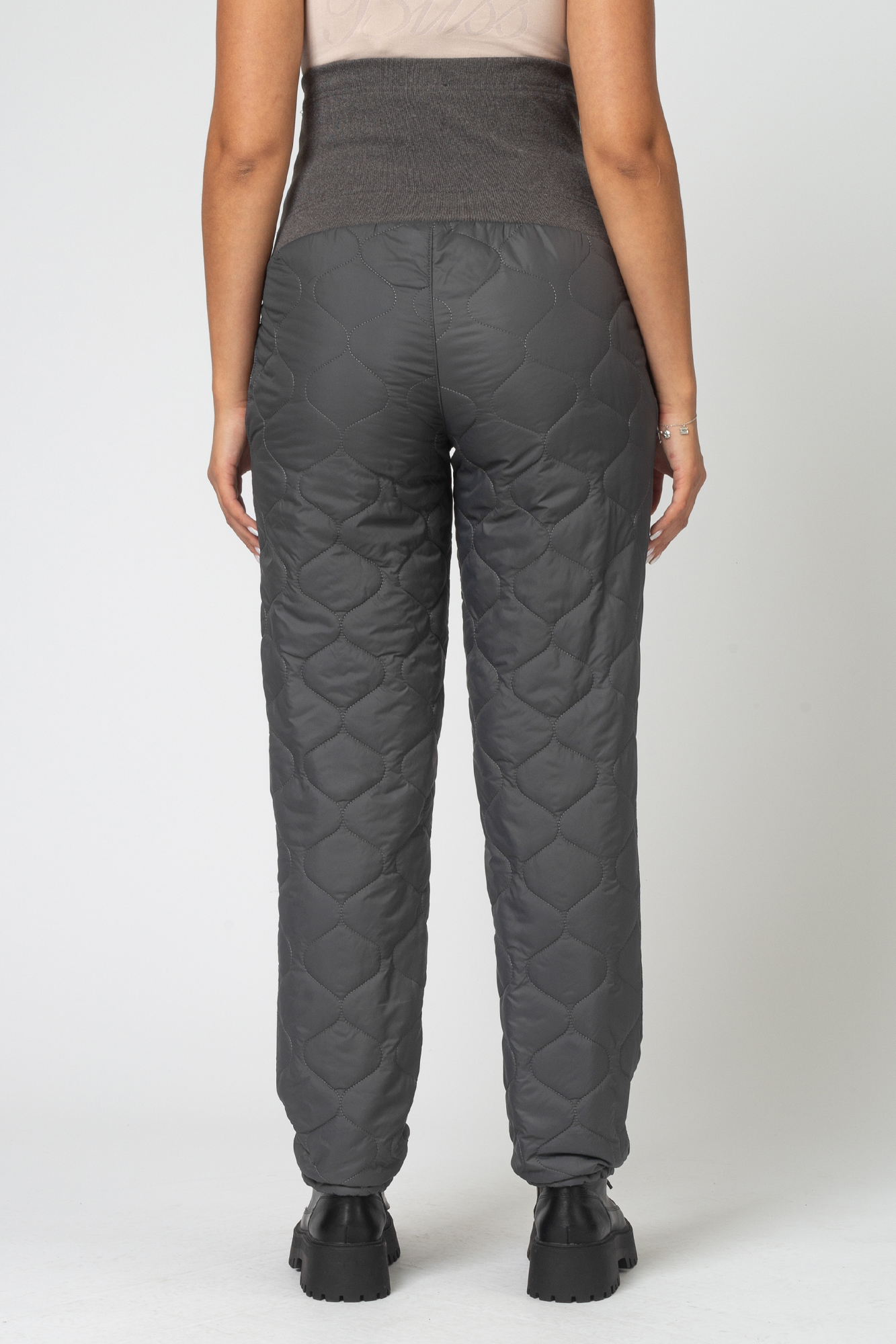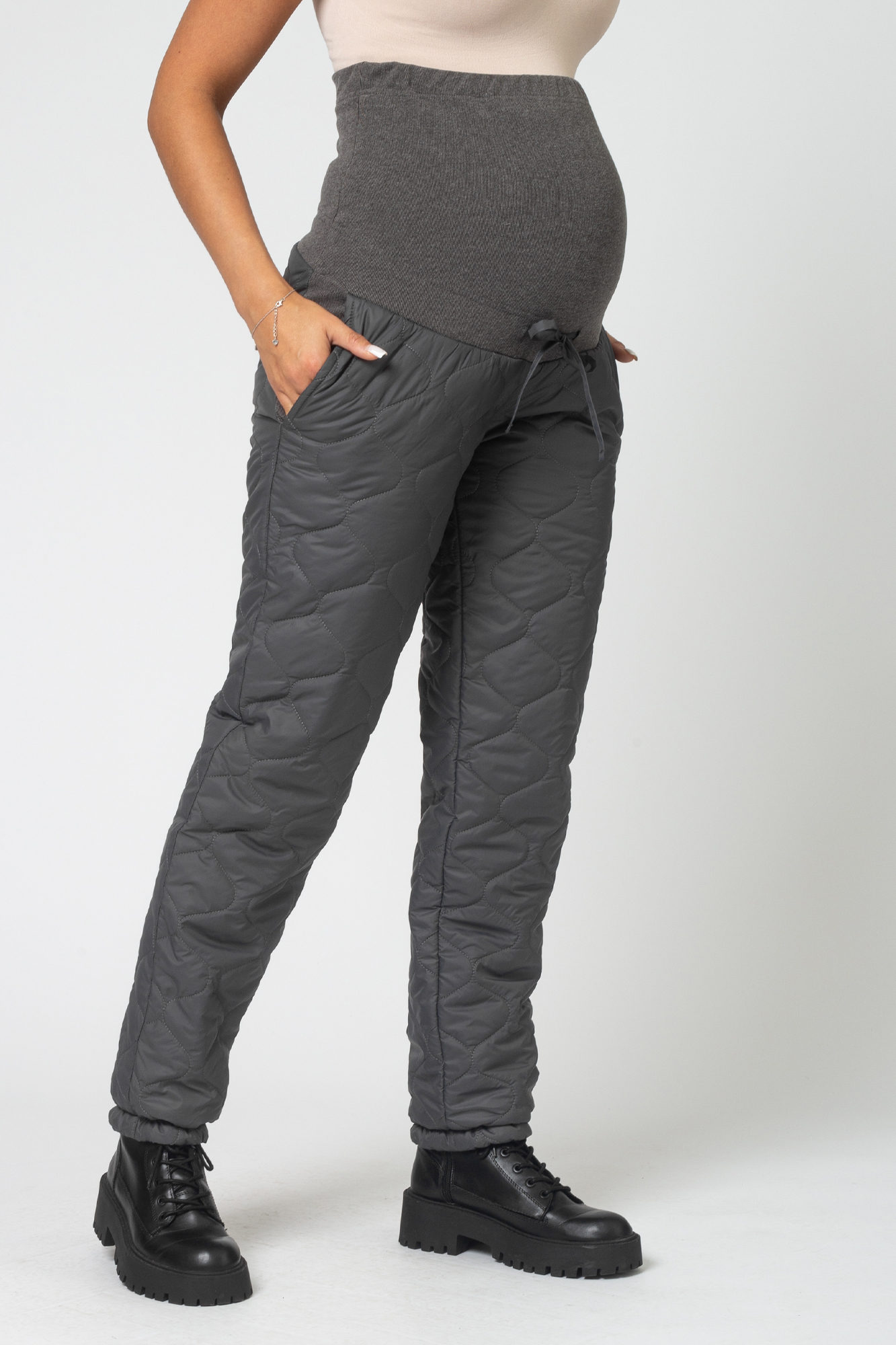 Теплые болоневые брюки для беременных пригодятся будущей маме на протяжении всего зимнего сезона. Для их пошива используется специальная курточная ткань на основе полиэстера. Материал обладает ветрозащитными свойствами, влагонепроницаемостью, легко очищается от грязи. В качестве утеплителя выбран легкий синтепон. Утепленные штаны с высокой посадкой дополнены эластичным цельновязанным поясом из плотного трикотажа. Эта деталь обеспечивает мягкую поддержку растущему животику, а скрытая регулировка объема позволяет носить брюки на любом месяце беременности и после родов. Фасон штанов джоггеры предусматривает наличие широких манжет на штанинах, которые создают дополнительную защиту от ветра и холода. Брюки подойдут для ежедневных прогулок, путешествий, занятий спортом.