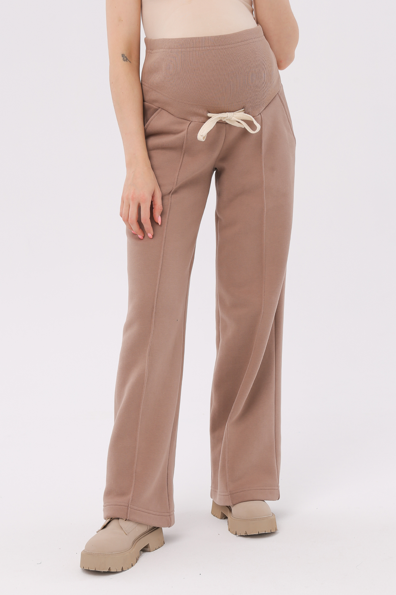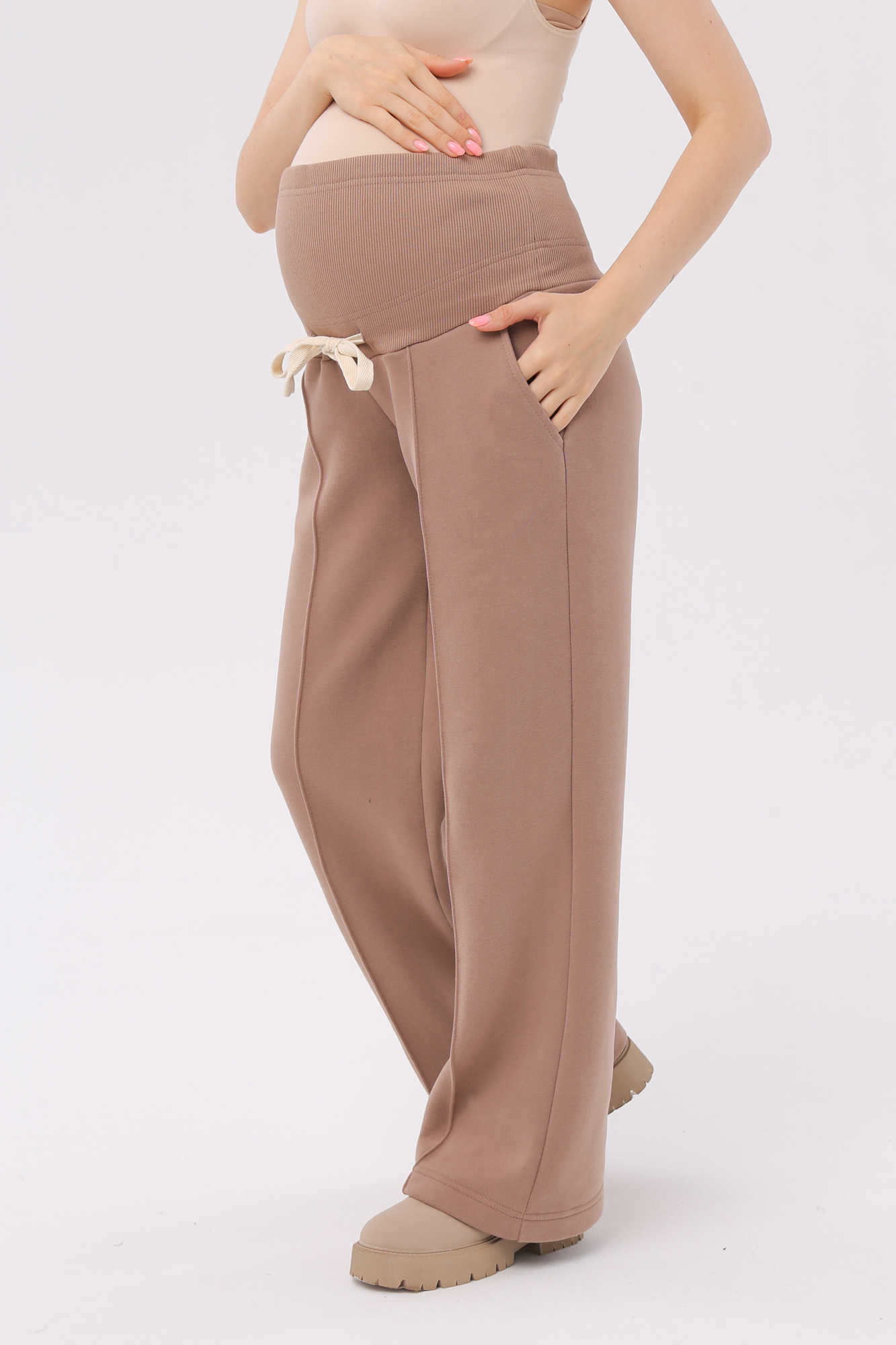 Стильные повседневные брюки для беременных из футера велюра c начесом. Высокий эластичный бандаж мягко и деликатно поддерживает растущий животик. Объем регулируется шнурками в поясе и перфорированной резинкой, перестегивающейся на пуговицу, что позволяет носить брюки от начала до конца беременности и после родов. Невероятно комфортная модель для прогулок, занятий спортом и просто на каждый день.