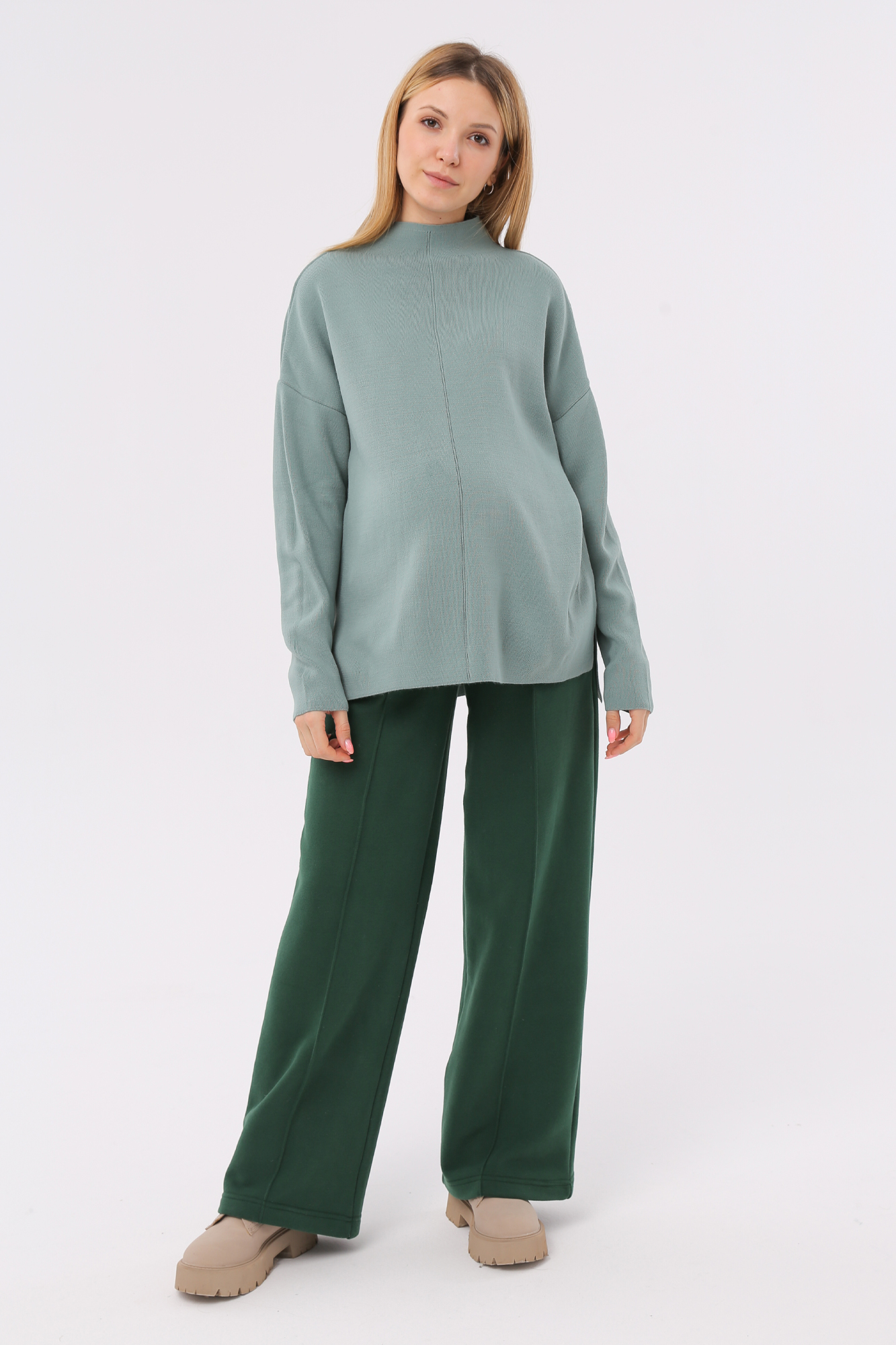Стильные повседневные брюки для беременных из футера велюра c начесом. Высокий эластичный бандаж мягко и деликатно поддерживает растущий животик. Объем регулируется шнурками в поясе и перфорированной резинкой, перестегивающейся на пуговицу, что позволяет носить брюки от начала до конца беременности и после родов. Невероятно комфортная модель для прогулок, занятий спортом и просто на каждый день.