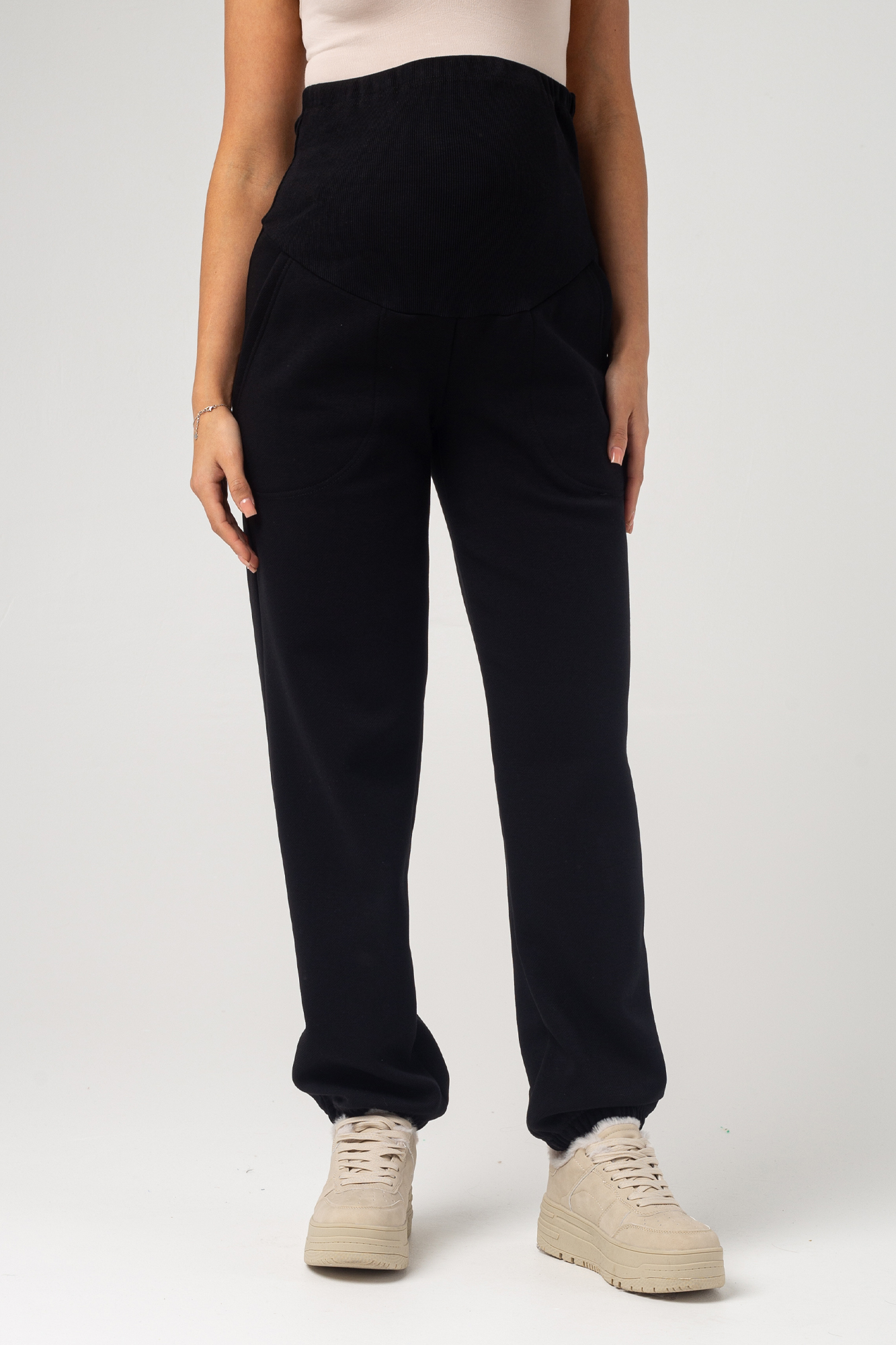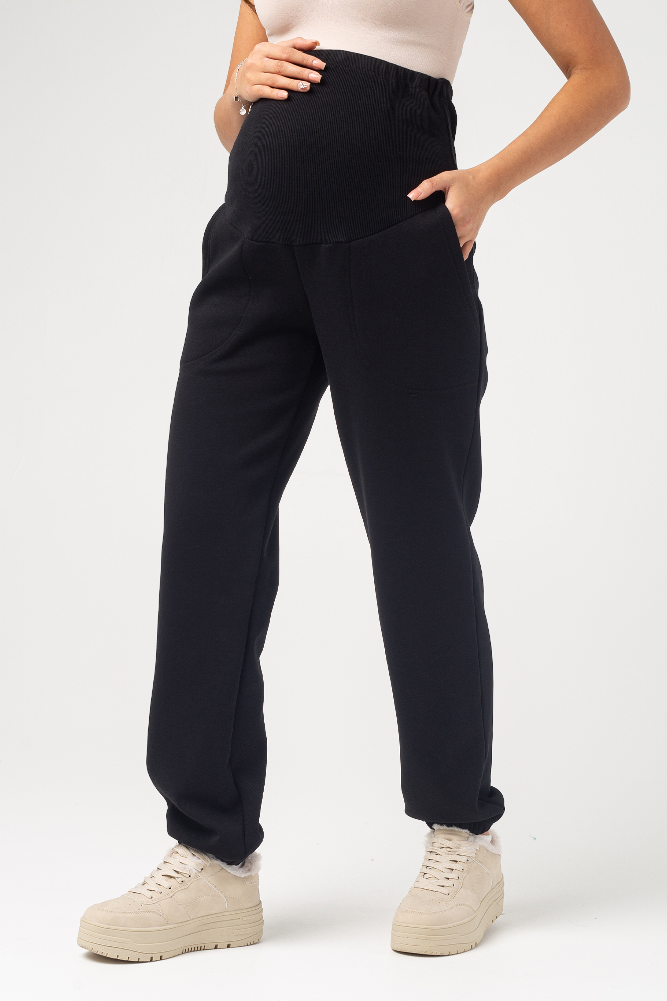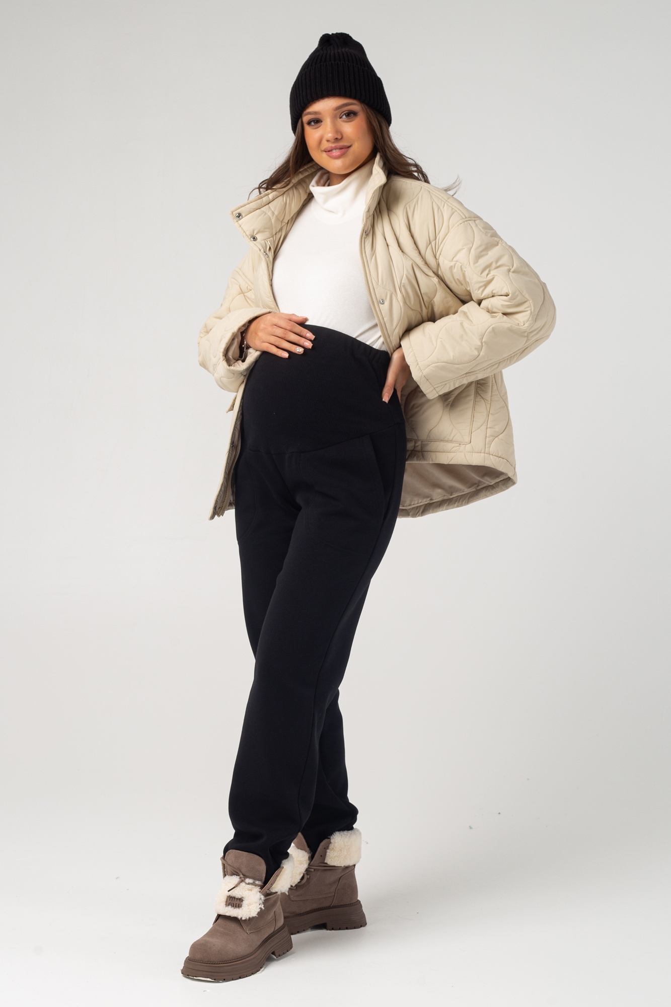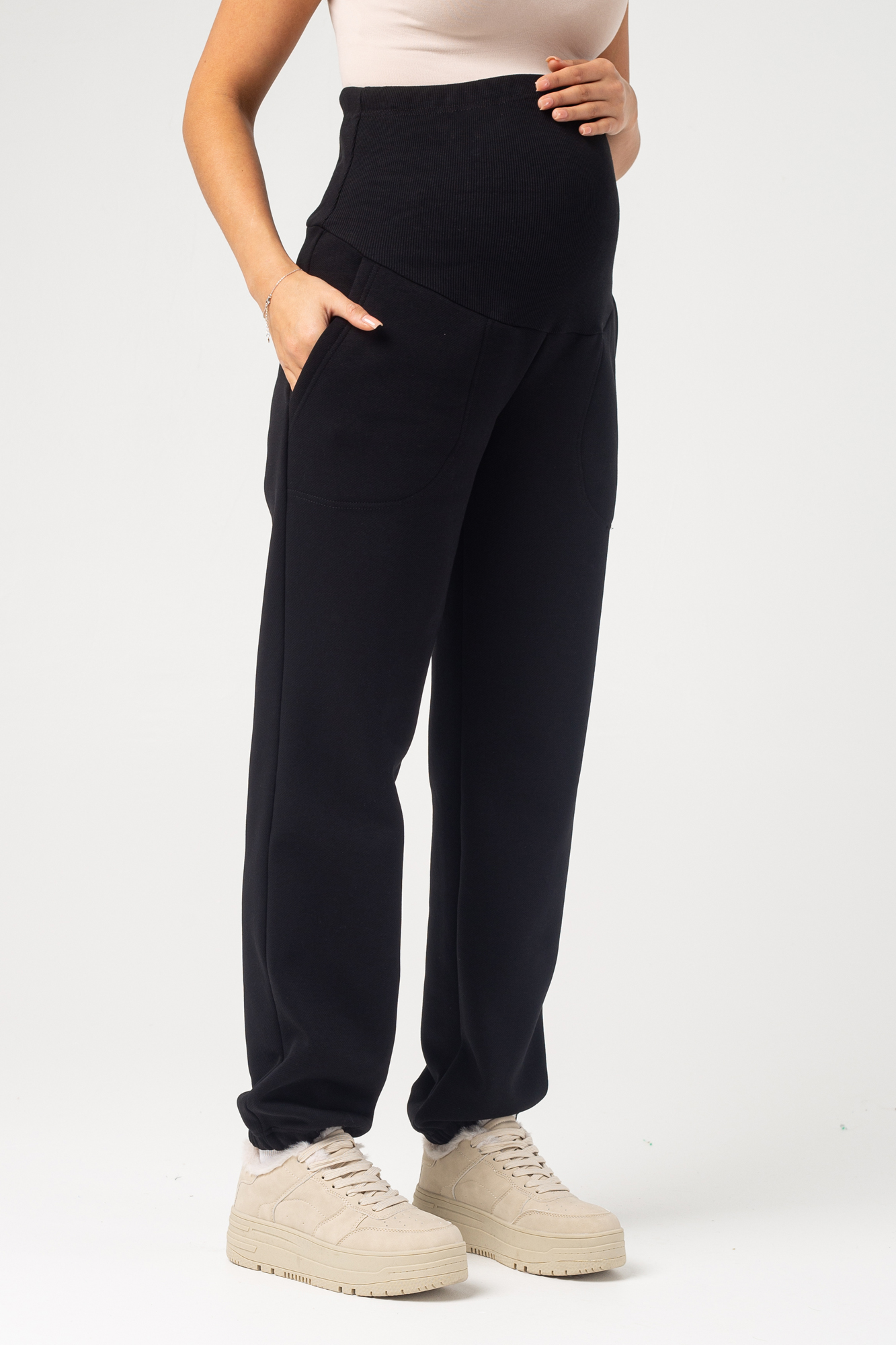 Брюки для беременных из премиального футера барашек. Внутри мягкий, плотный и очень приятный к телу евро флис. Такой вид утеплителя не осыпается, не скатывается и не истончается. Греет и дарит ощущение уюта. Высокий трикотажный пояс-бандаж мягко и деликатно поддерживает растущий животик. Объем пояса можно регулировать с помощью перфорированной резинки, перестегивающейся на пуговицу, что позволяет носить теплые флисовые штаны от начала до конца беременности, а также после родов. Идеальная трендовая модель штанов для того, что бы носить их в холодное время года, будь то осень или зима. В них комфортно и очень тепло. С подобными осенними брюками можно составить стильную базовую капсулу. Модель подойдет так же и девушкам, и женщинам с большим размером одежды plus size.