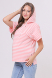 Футболка для беременных и кормящих 12527 коралл/полоска