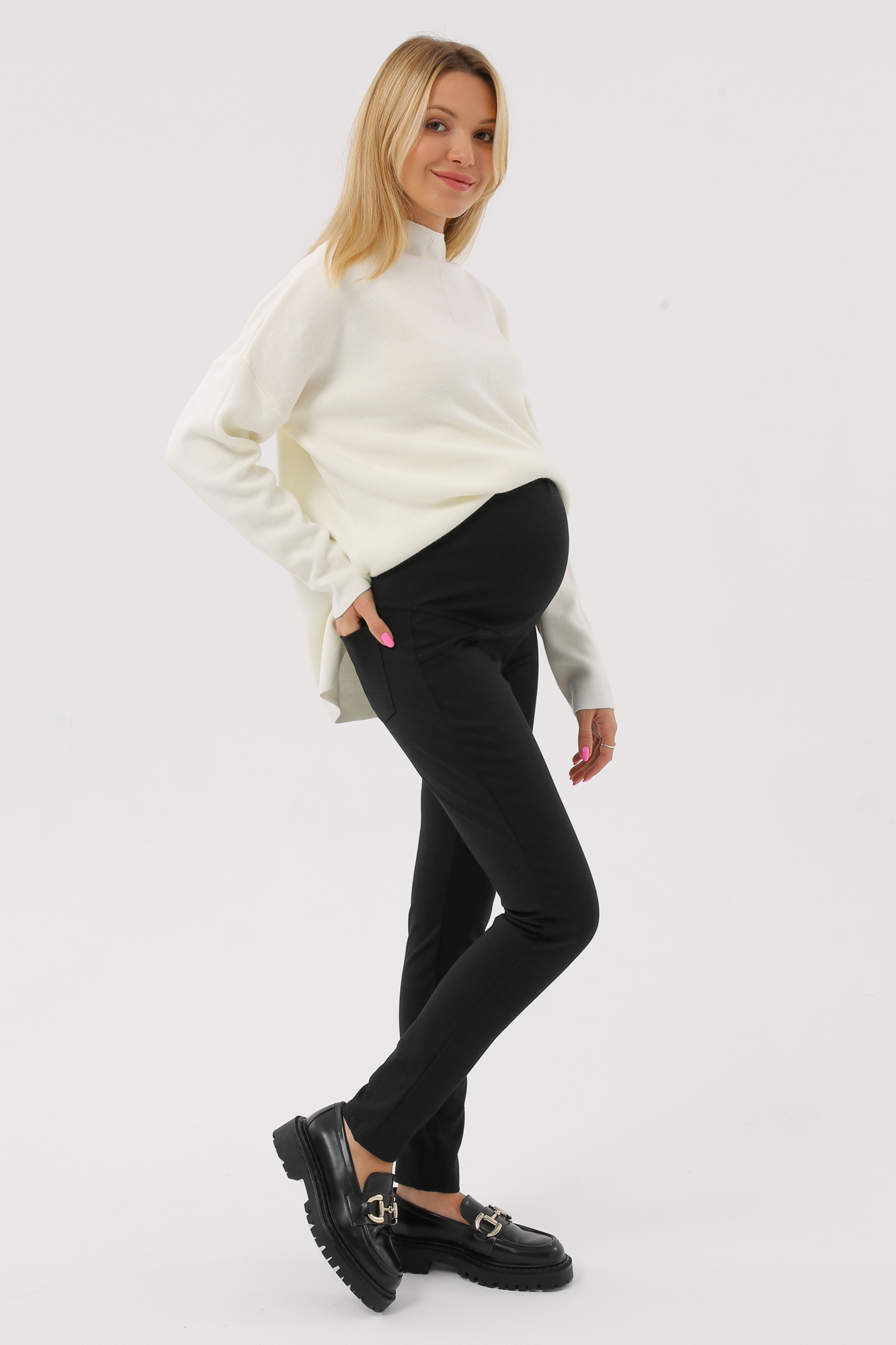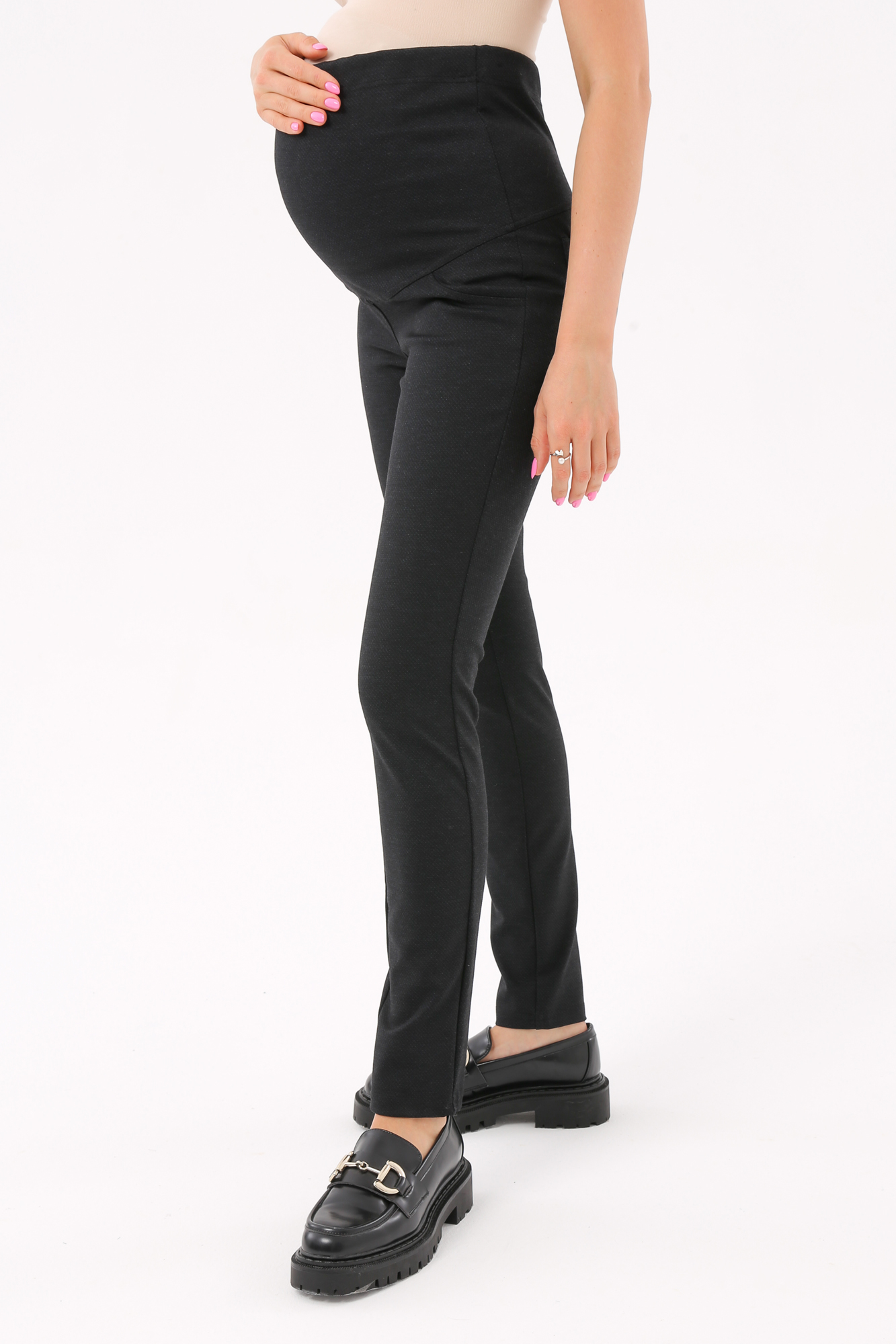Плотные джеггинсы с высокой посадкой для беременных выполнены из эластичного упругого джерси премиум качества. Высокая вставка на животик с эффектом бандажа не сдавливает и поддерживает. Объем регулируется с помощью перфорированной резинки, перестегивающейся на пуговицу, продетой в пояс изделия. Кокетка и карманы сзади создают соблазнительный эффект пуш ап. Модель с экслюзивным принтом "штрихи". Универсальный вариант для вашего гардероба - джеггинсы сочетаются как со спортивной одеждой и обувью, так и с классической. Идеальны для офиса и прогулок.