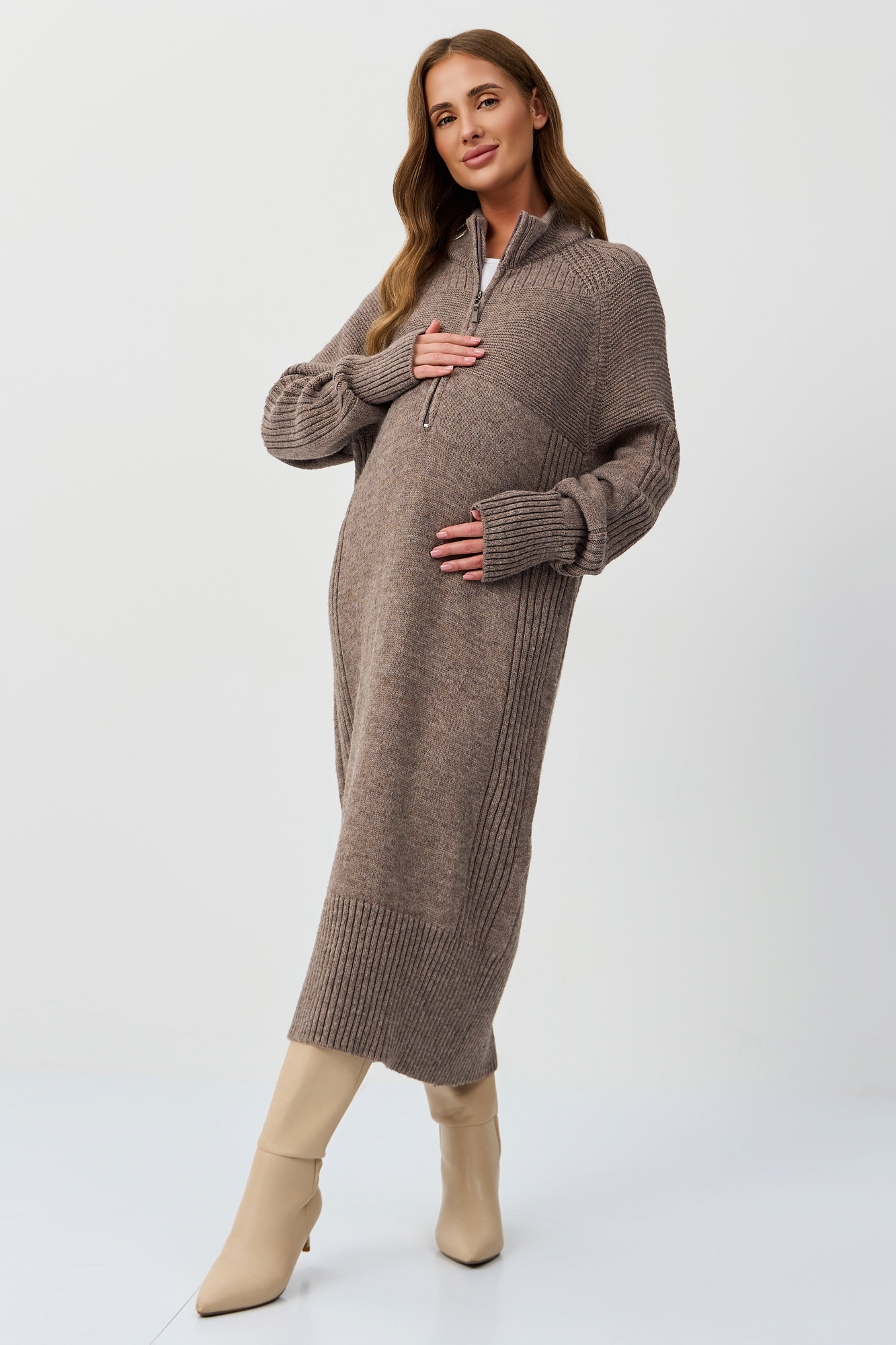 Платье для беременных вязаное теплое с добавлением шерсти. Теплое зимнее платье выполнено из вискозы плотной вязки с добавлением шерстяных нитей (20% шерсти). Свободная оверсайз модель практична и станет любимой вещью в гардеробе будущей мамы. Вязаное платье с контрастными полосами вязки создаст стильный и элегантный образ беременной женщины. Праздничное платье слегка облегает животик, образ получается нежный и женственный. Высокий воротник с длинной молнией защитит от холода и ветра, согреет осенью и зимой. Удобная молния обеспечит комфортное кормление малыша, вы сможете без труда использовать это платье не только в беременность, но и в период грудного вскармливания. Данная модель подойдет так же и девушкам plus size. Женщины с большим размером одежды могут с легкостью создавать нарядные образы с этим платьем. Теплая и мягкая вискоза с шерстью, незаменимый атрибут зимы. Длина платья миди позволяет носить его даже в самый холод.