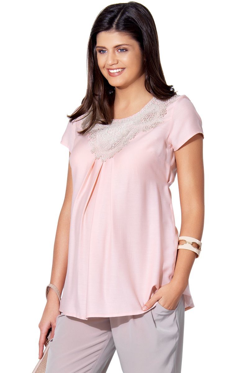 Блузка для беременных с кружевным воротничком, имеет удобный крой и красивый дизайн. Будущая мамочка будет самой красивой. Необычная и очень комфортная модель. Подходит для большинства типов фигур кроме обладательниц широких плеч. Можно носить на любом сроке беременности и после родов. Состав: 50% Хлопок,50% Вискоза.