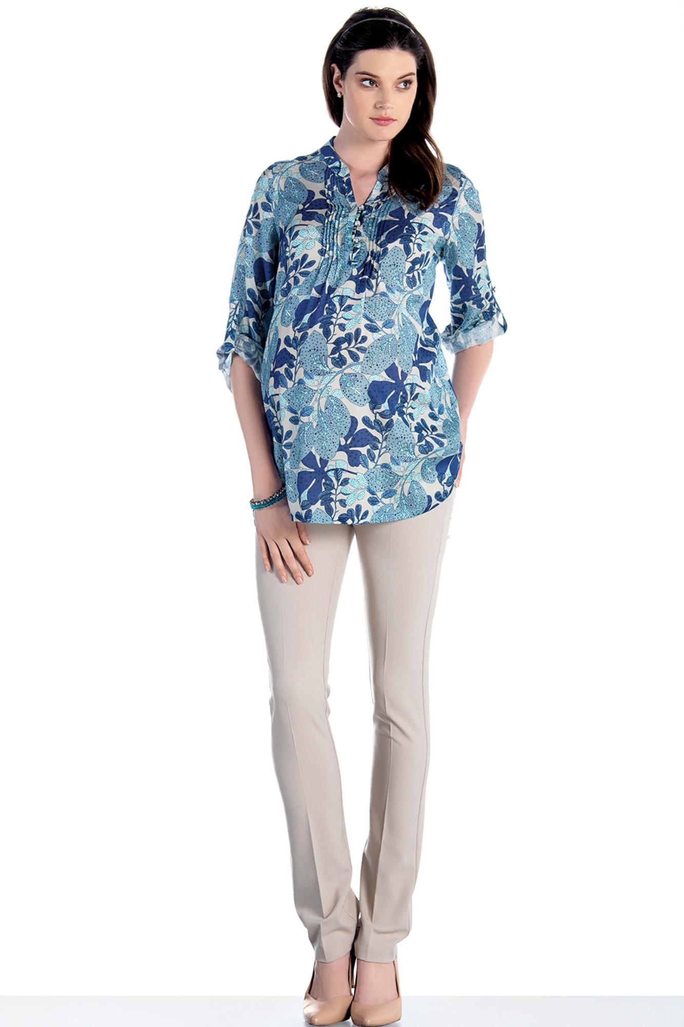 Легкая блузка для будущих мам. Лаконичный крой и правильно подобранные материалы обеспечат Вам особый комфорт и уют. Блузка застегивается на пуговицы до уровня груди. Свободный крой, на спинке собирается пояском из той же ткани и создает приталенный силуэт. Великолепно сочетается с однотонными брюками, юбками и джинсами.