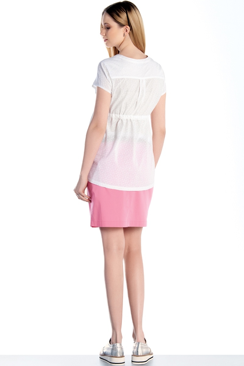 Легкая блузка для беременных, изготовлена из тонкого, приятного к телу материала, с высоким содержанием хлопка. Модель трапециевидного силуэта, с коротким рукавом, передняя планка застегивается на пуговицы. Универсальный фасон обеспечивает комфорт в период беременности, после рождения малыша скрывает временные несовершенства фигуры. Кулиска под грудью обеспечит необходимое прилегание.
