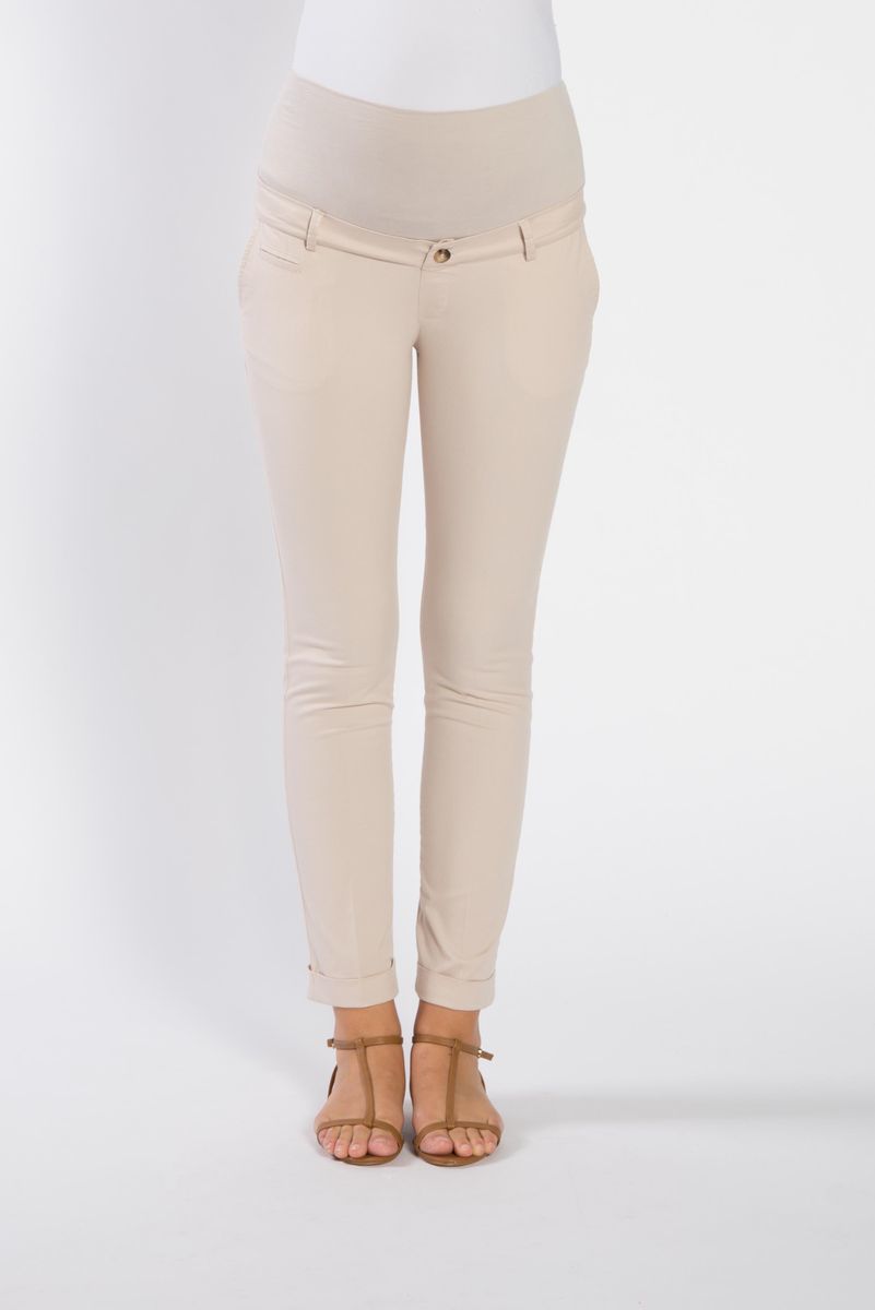 Модель зауженного кроя, средняя посадка без застёжки, брючина с подворотом.Детали: высокая трикотажная вставка для животика, два кармана спереди и два накладных кармана сзади, шлевки для ремня.Cостав: 97% Хлопка, 3% Эластан.