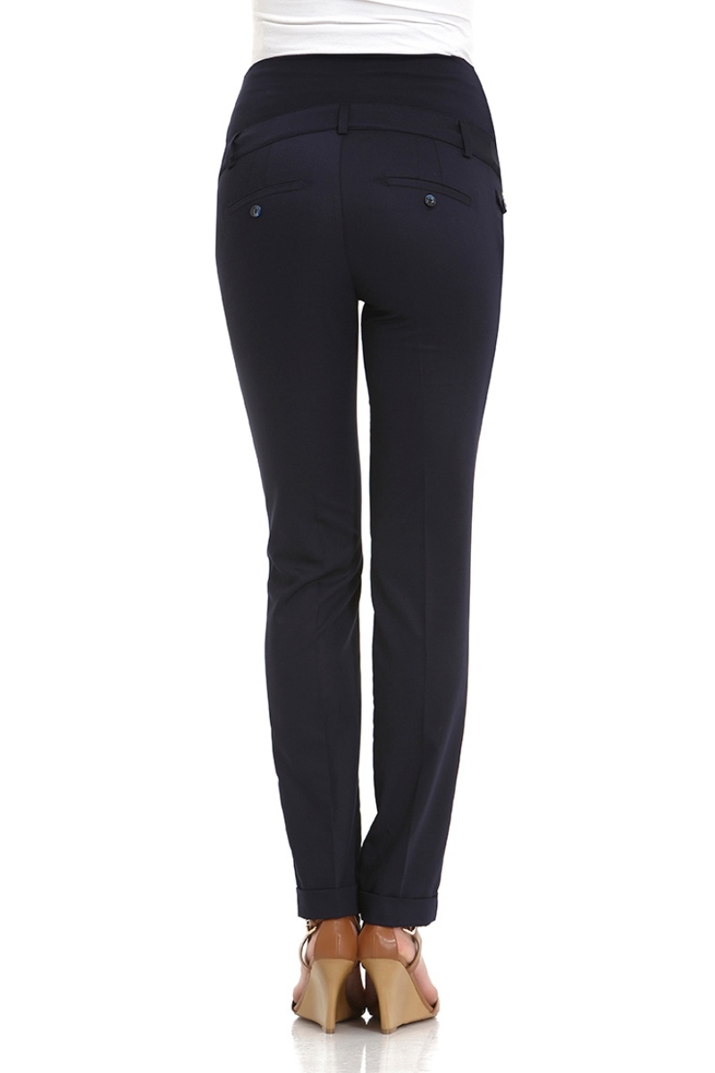 Классические зауженные брюки с отворотами. Выполнены из тонкой костюмной ткани с добавлением эластана, что позволяет с комфортом носить модель на протяжении всего срока беременности. Мягкий трикотажный бандаж поддерживает и хорошо растягивается по мере увеличения объема живота.