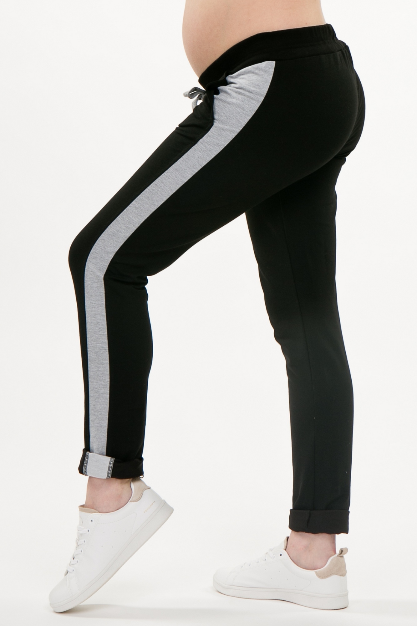 Спортивные брюки с резинкой под живот не сдавливают и не стесняют движений. Декорированы лампасами из другой ткани, по бокам изделия карманы. Брюки подойдут для прогулок, занятий спортом и в качестве домашней одежды.
