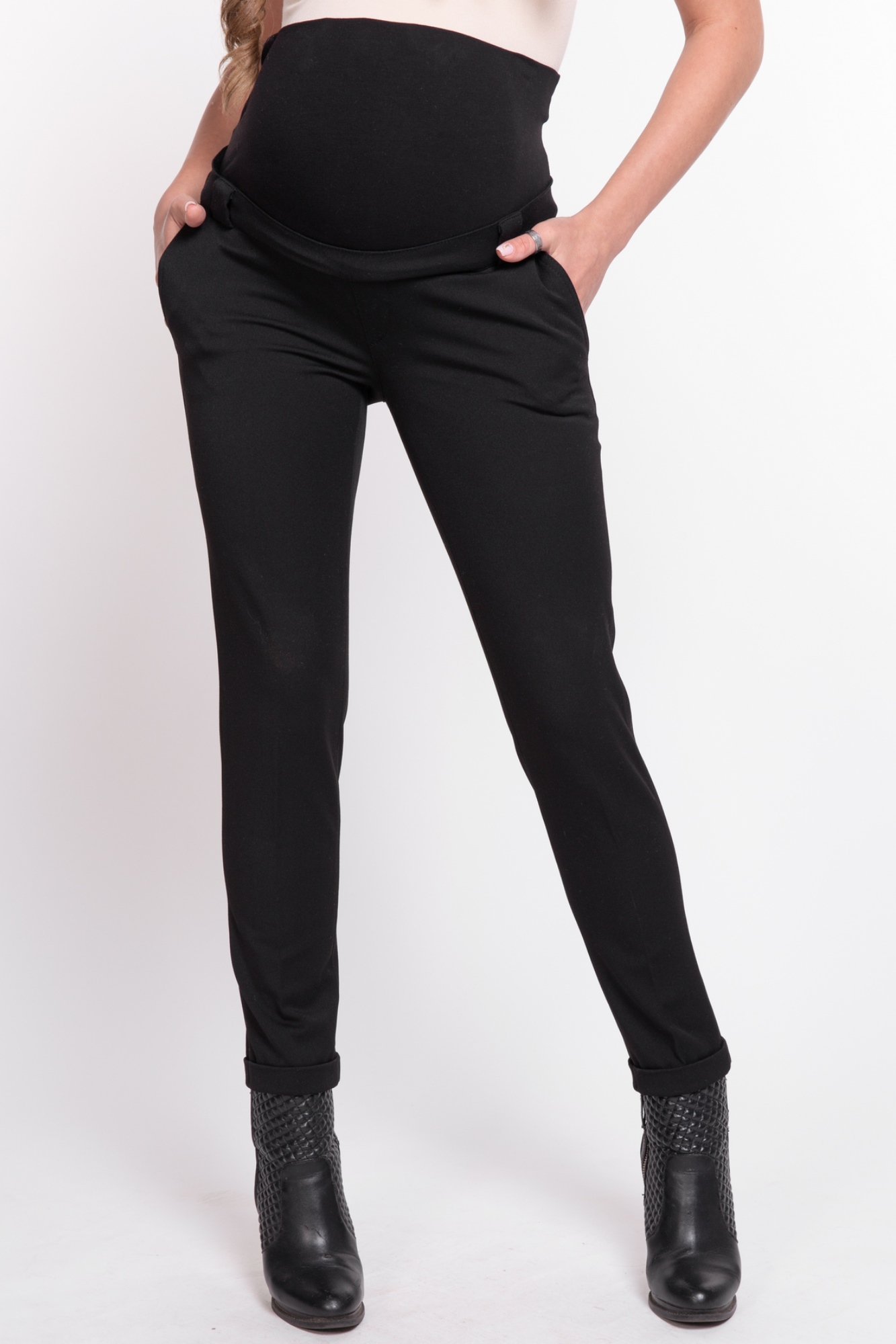 Утепленные зауженные брюки из габардина (поливискозы) с начесом. Высококачественная ткань не пиллингуется, обладает высокой износостойкостью, проста в уходе. Детали: высокий эластичный бандаж, скошенные карманы спереди, прорезные карманы сзади, регулировка объема осуществляется при помощи резинки, продетой в пояс брюк и перестегивающейся на пуговицу. В зависимости от подобранных дополнений они могут стать частью и офисного костюма, и одежды для непринуждённого отдыха, и наряда для торжественного события.