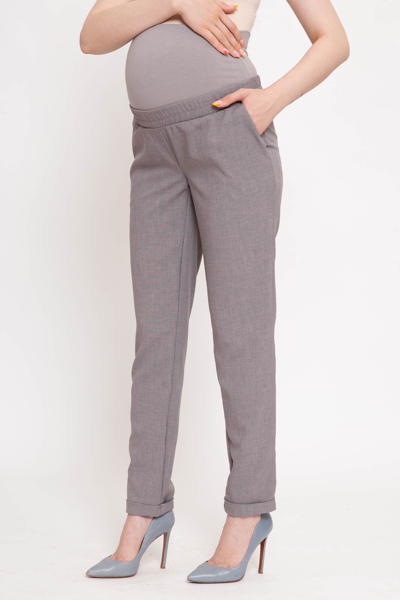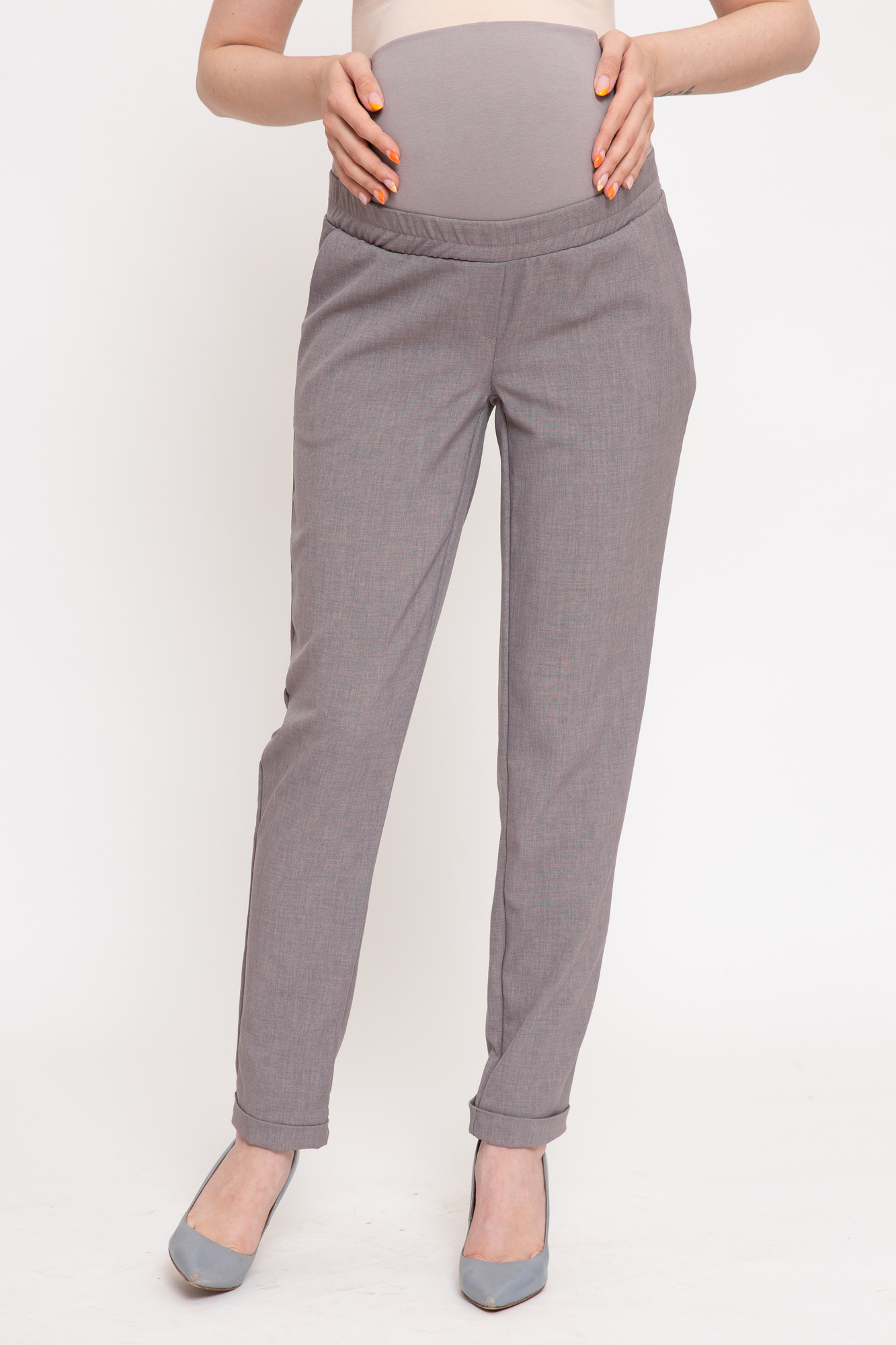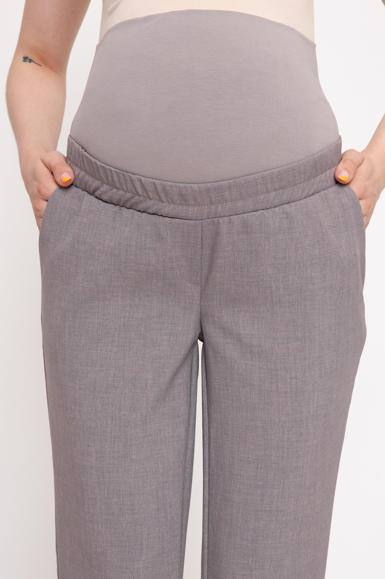 Базовые летние брюки для будущих мам. Детали: высокий эластичный бандаж, мягкая резинка в поясе, скошенные боковые карманы. В зависимости от подобранных дополнений они могут стать частью и офисного костюма, и одежды для непринуждённого отдыха, и наряда для торжественного события. Выполнены из легкого смешенного льна.