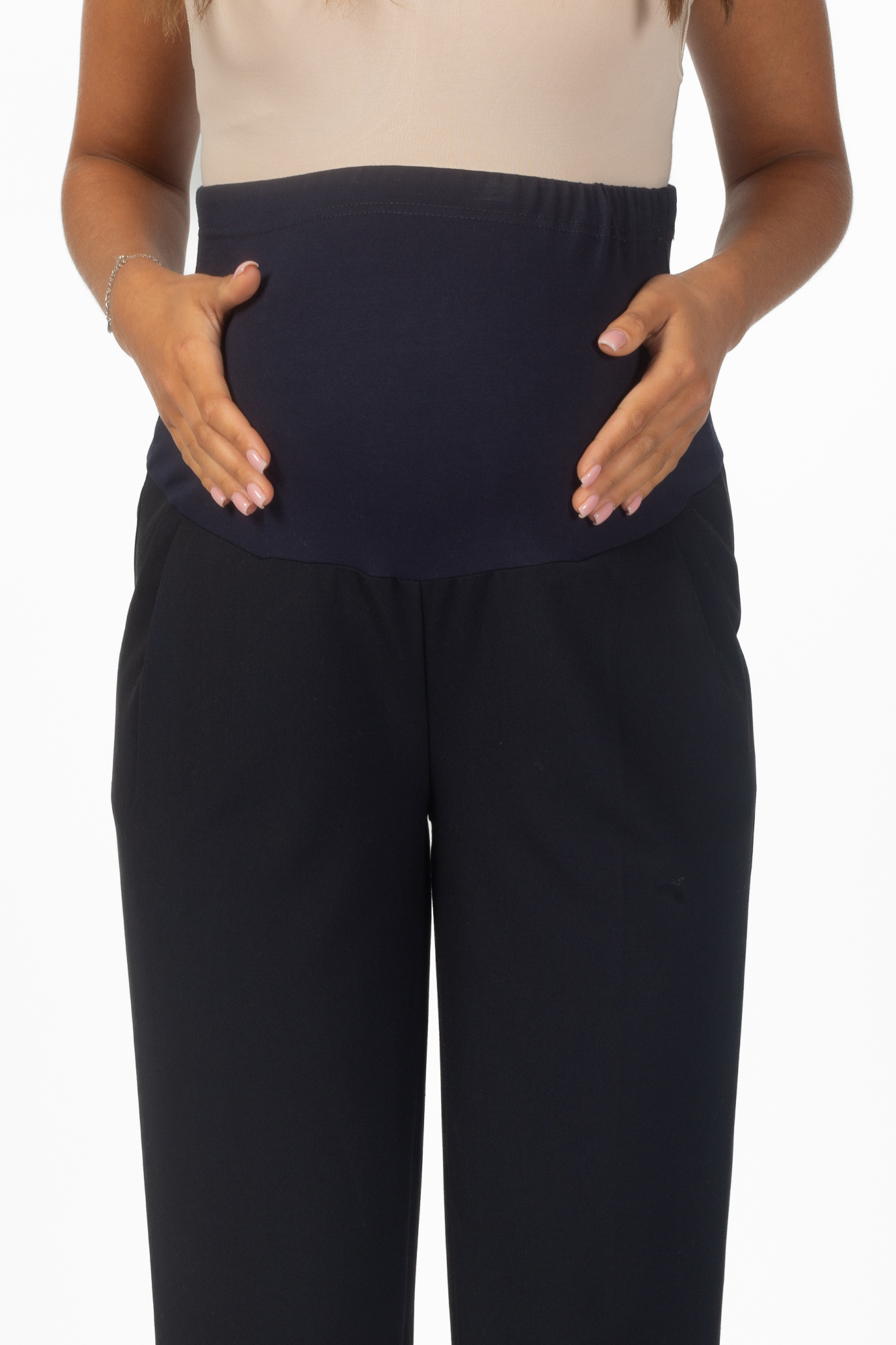 Модные брюки для беременных сшиты из плотного габардина на основе вискозы. Брюки чинос зауженного кроя дополнены высоким эластичным поясом. Пояс создает легкий эффект бандажа, аккуратно поддерживает животик, а скрытая регулировка бандажа позволяет носить вещь на любом месяце беременности. По бокам штаны дополнены удобными карманами. Модель легко комбинируется с другой женской одеждой: блузами, туниками, рубашками, свитерами. Универсальный фасон и базовые однотонные расцветки делают брюки удачным повседневным решением, стильной деталью выходного или офисного образа.