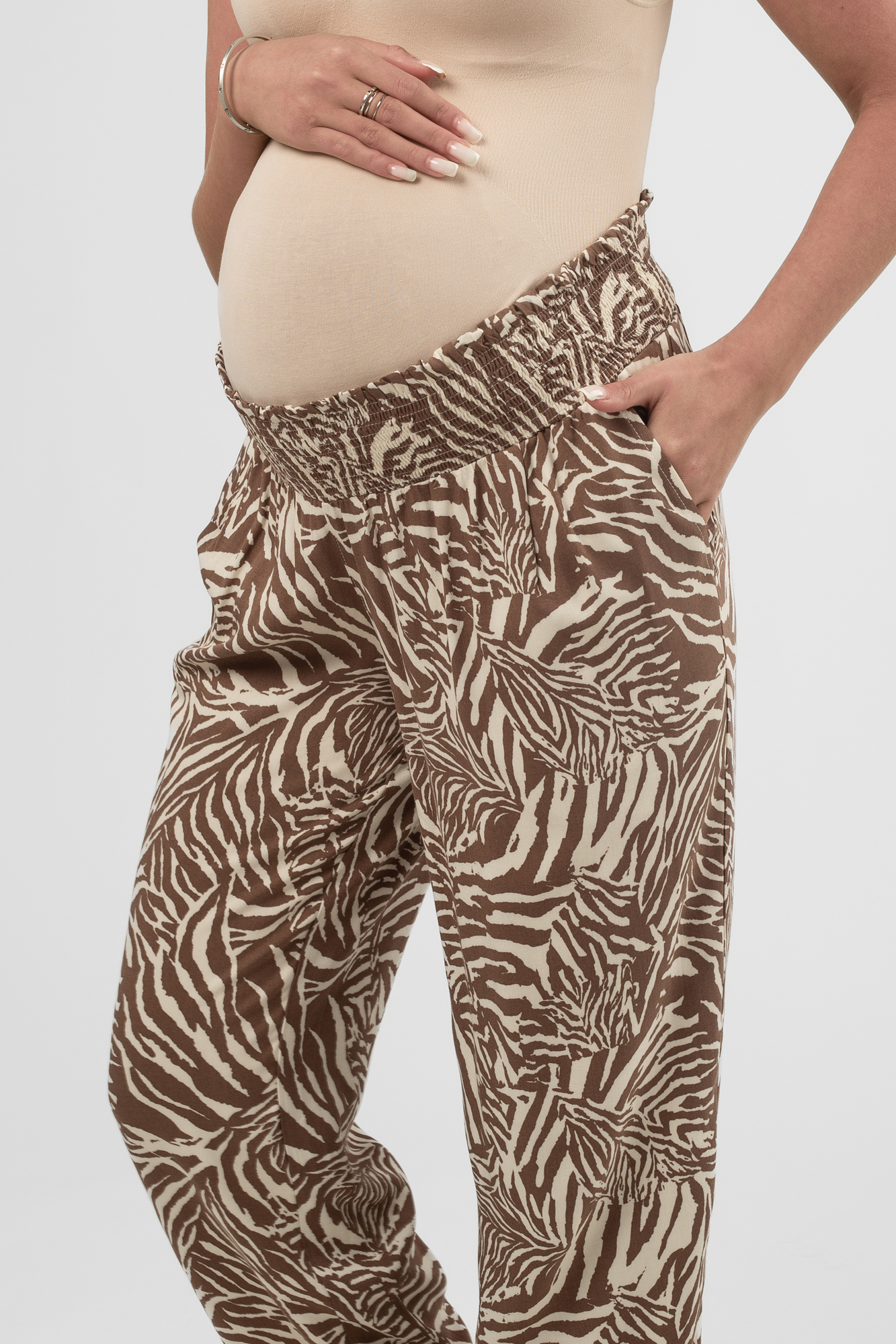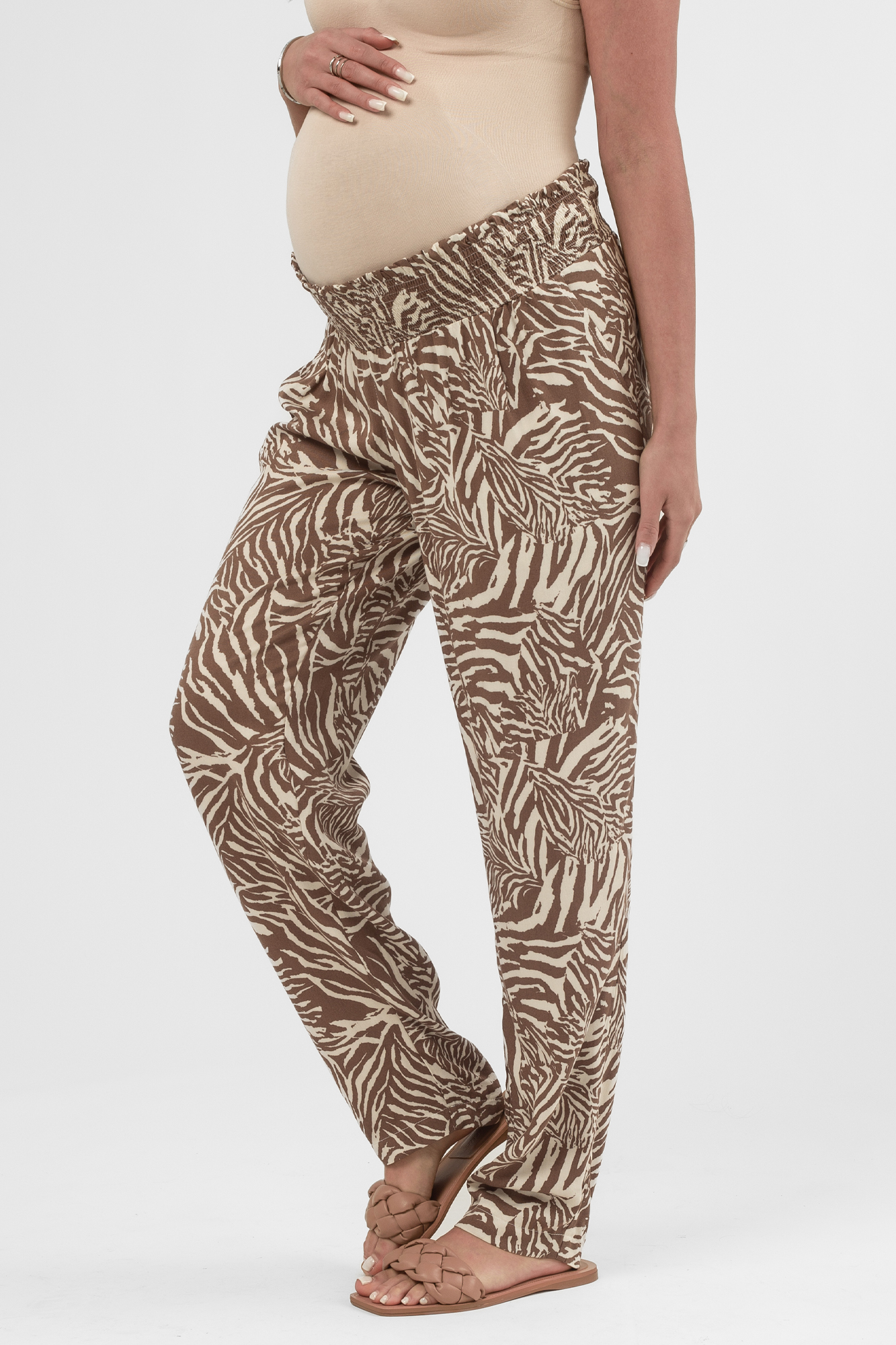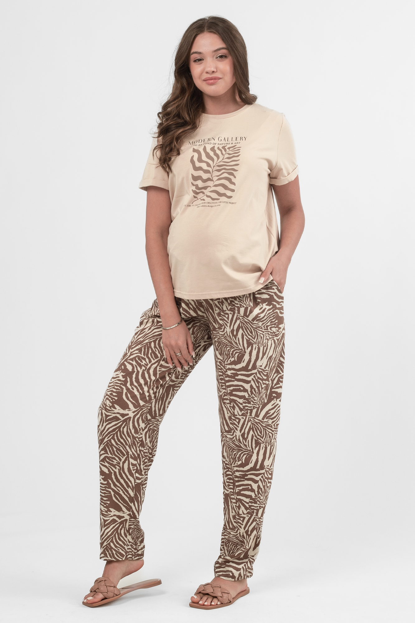 Легкие брюки для беременных выполнены из высококачественной вискозы. Брюки имеют свободный крой с низкой посадкой, что дарит комфорт в носке на протяжении всей беременности, а мягкий пояс аккуратно поддерживает растущий животик. Базовые брюки, благодаря универсальному крою, идеально подходят на любую фигуру. Брюки отлично подходят для прогулок, работы в офисе и просто на каждый день.