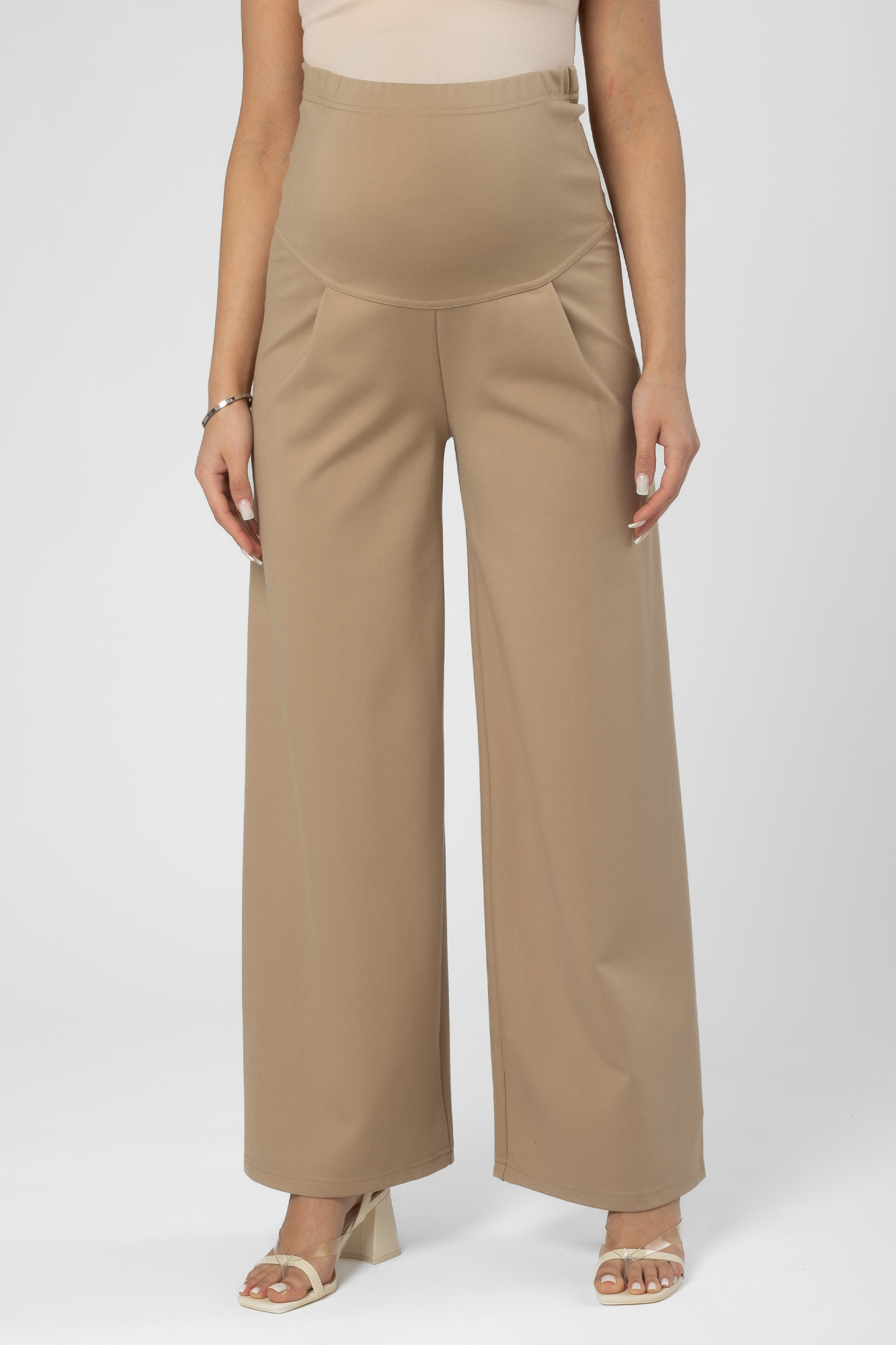 Широкие брюки для беременных сшиты из премиального трикотажа джерси. В его составе вискоза и полиэстер, которые придают ткани высокую износостойкость, устойчивость к появлению катышек и усадке. Классические брюки свободного кроя с высокой посадкой; высокий эластичный пояс оснащен регулировкой объема на резинке, поэтому модель можно носить на любом месяце беременности. Брюки идеально подходят для офиса, отлично сочетаются с деловой женской одеждой. Также они станут эффектным повседневным решением, а при грамотном подборе аксессуаров - стильным вариантом для праздника. Будущая мама может выбрать такие брюки для ношения прохладным летом, весной и осенью. Универсальная однотонная расцветка позволяет удачно комбинировать брюки с разными вещами.