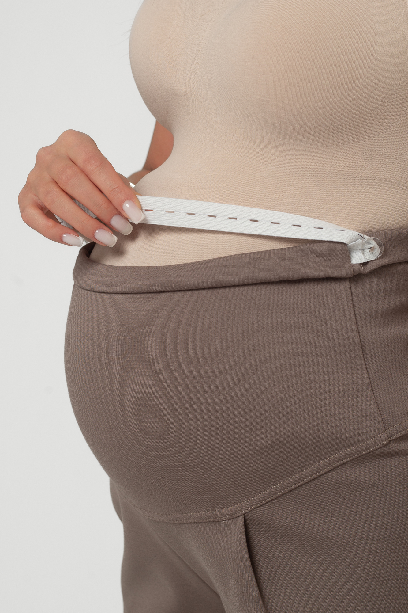 Широкие брюки для беременных сшиты из премиального трикотажа джерси. В его составе вискоза и полиэстер, которые придают ткани высокую износостойкость, устойчивость к появлению катышек и усадке. Классические брюки свободного кроя с высокой посадкой; высокий эластичный пояс оснащен регулировкой объема на резинке, поэтому модель можно носить на любом месяце беременности. Брюки идеально подходят для офиса, отлично сочетаются с деловой женской одеждой. Также они станут эффектным повседневным решением, а при грамотном подборе аксессуаров - стильным вариантом для праздника. Будущая мама может выбрать такие брюки для ношения прохладным летом, весной и осенью. Универсальная однотонная расцветка позволяет удачно комбинировать брюки с разными вещами.