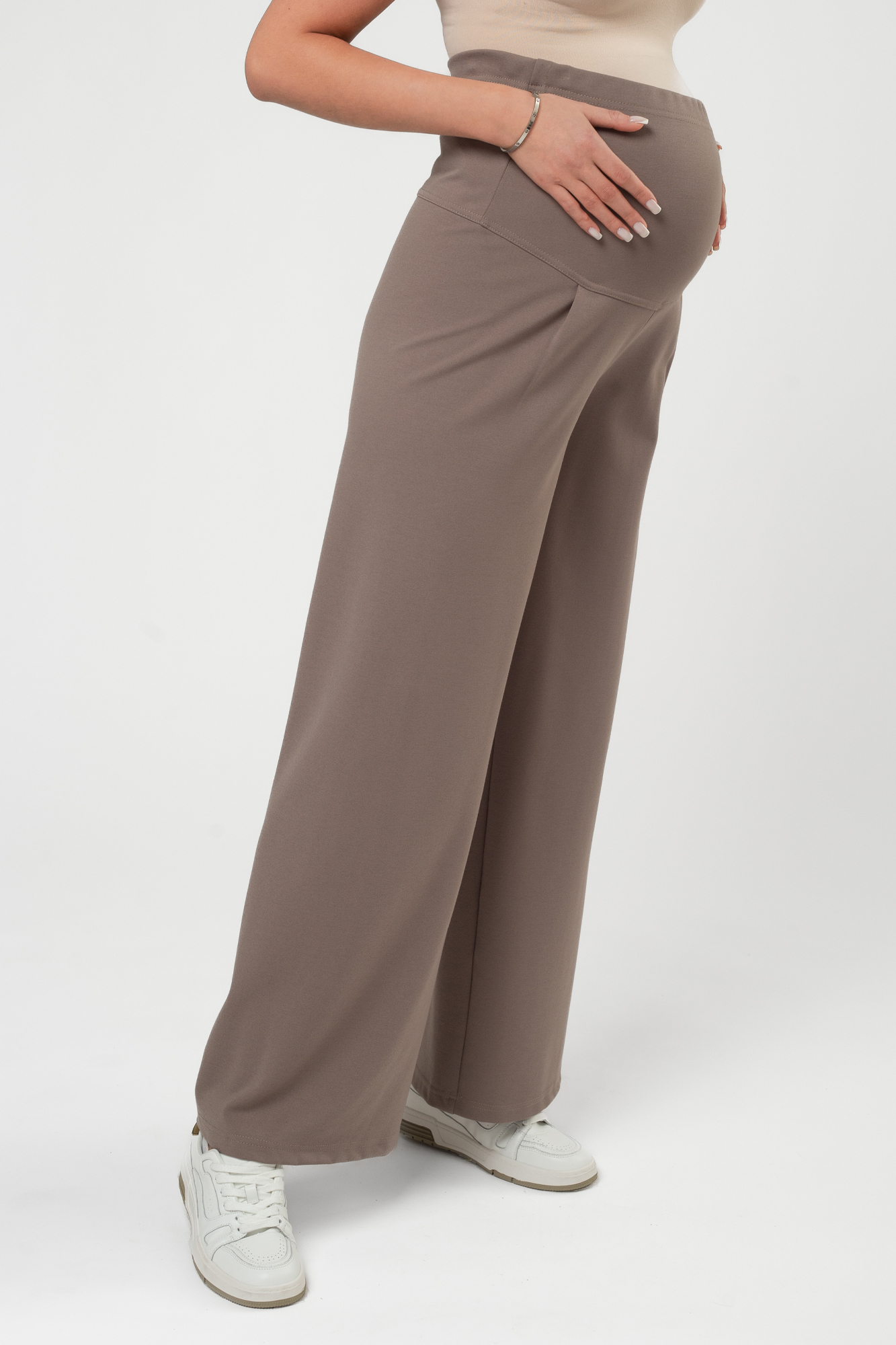 Широкие брюки для беременных сшиты из премиального трикотажа джерси. В его составе вискоза и полиэстер, которые придают ткани высокую износостойкость, устойчивость к появлению катышек и усадке. Классические брюки свободного кроя с высокой посадкой; высокий эластичный пояс оснащен регулировкой объема на резинке, поэтому модель можно носить на любом месяце беременности. Брюки идеально подходят для офиса, отлично сочетаются с деловой женской одеждой. Также они станут эффектным повседневным решением, а при грамотном подборе аксессуаров - стильным вариантом для праздника. Будущая мама может выбрать такие брюки для ношения прохладным летом, весной и осенью. Универсальная однотонная расцветка позволяет удачно комбинировать брюки с разными вещами.