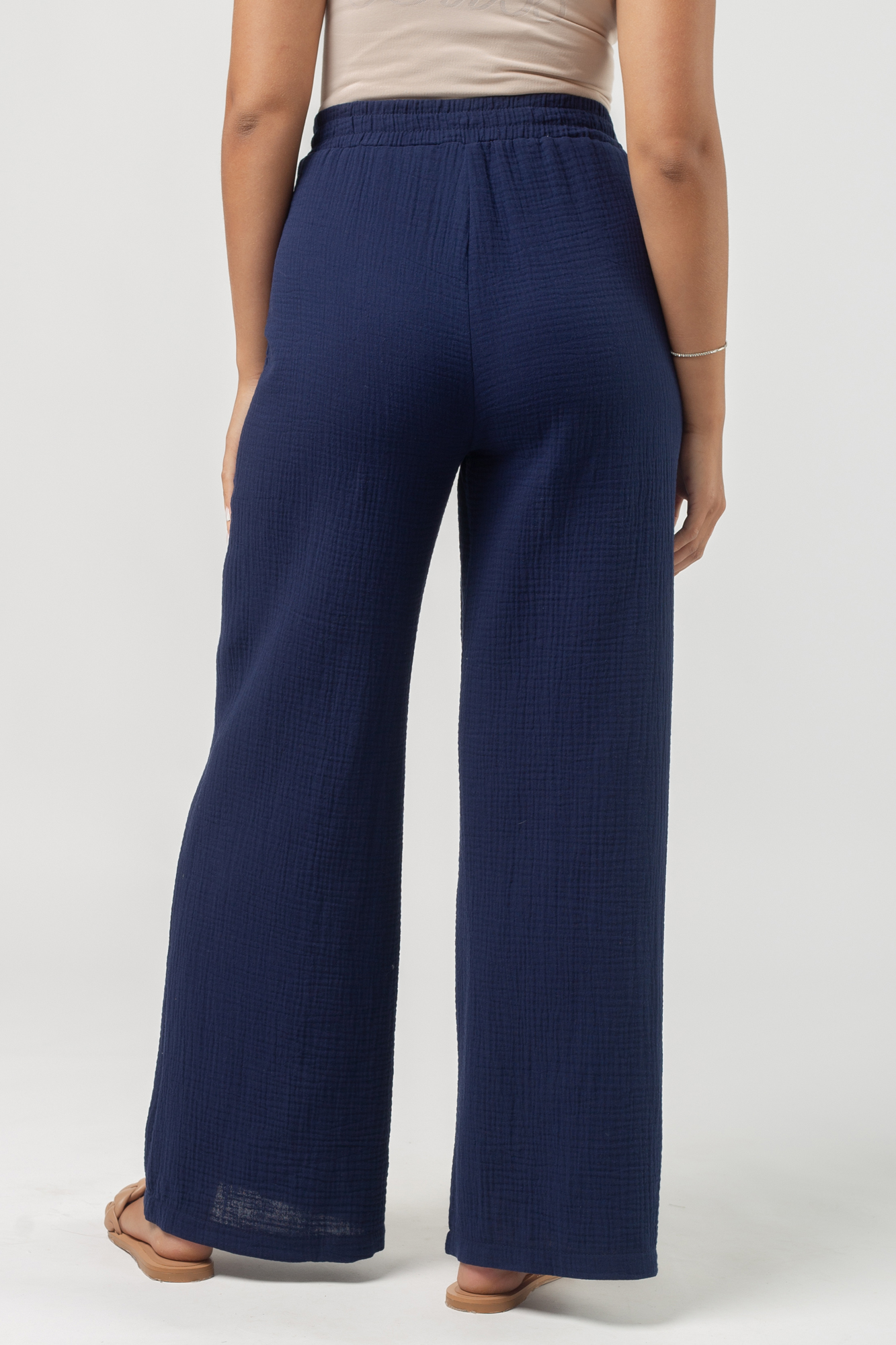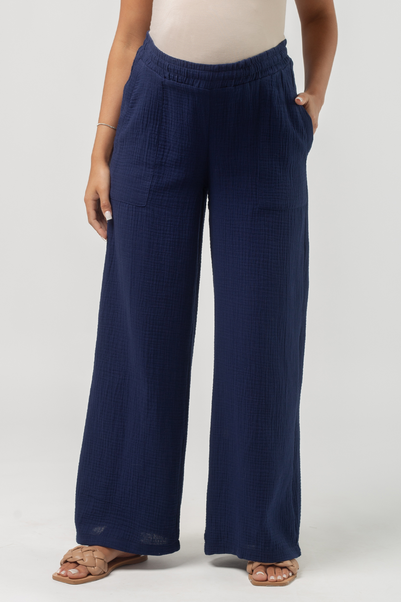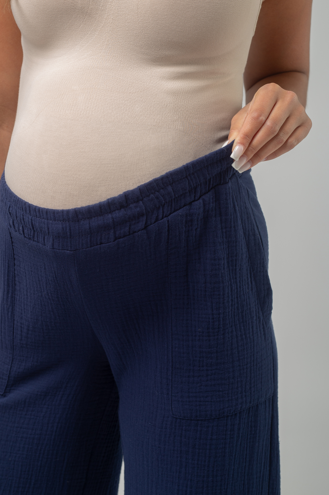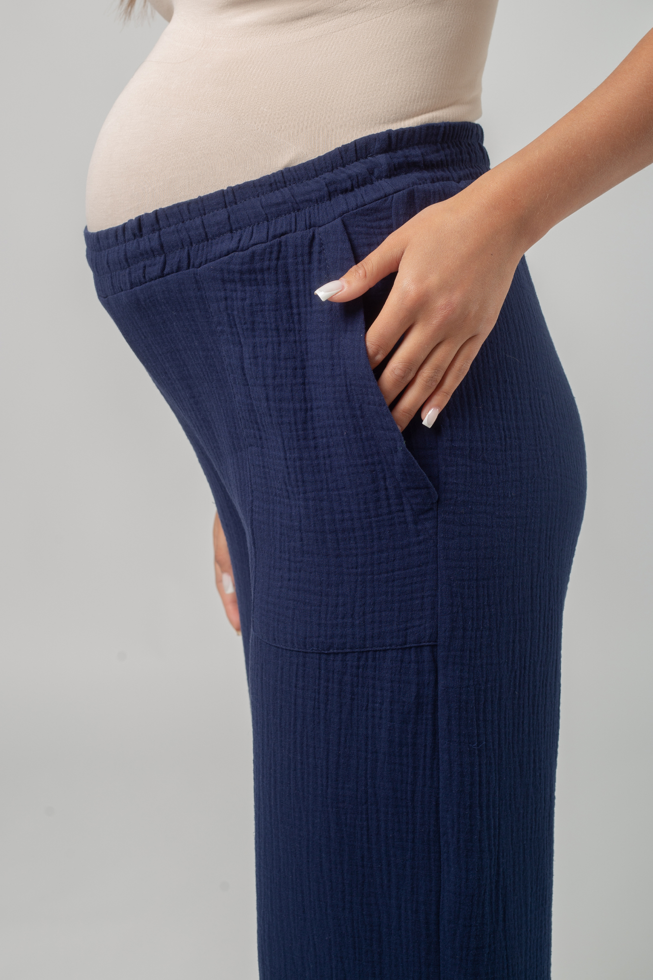 Легкие летние брюки для беременных выполнены из высококачественного натурального муслина. Женские широкие брюки прекрасно подходят для любого типа фигуры. В пояс продета завязка, которая позволяет регулировать объём. Натуральный мягкий материал позволяет коже дышать и не сковывает движения. Брюки прекрасно подойдут для прогулок, повседневной носки и в качестве домашней одежды.