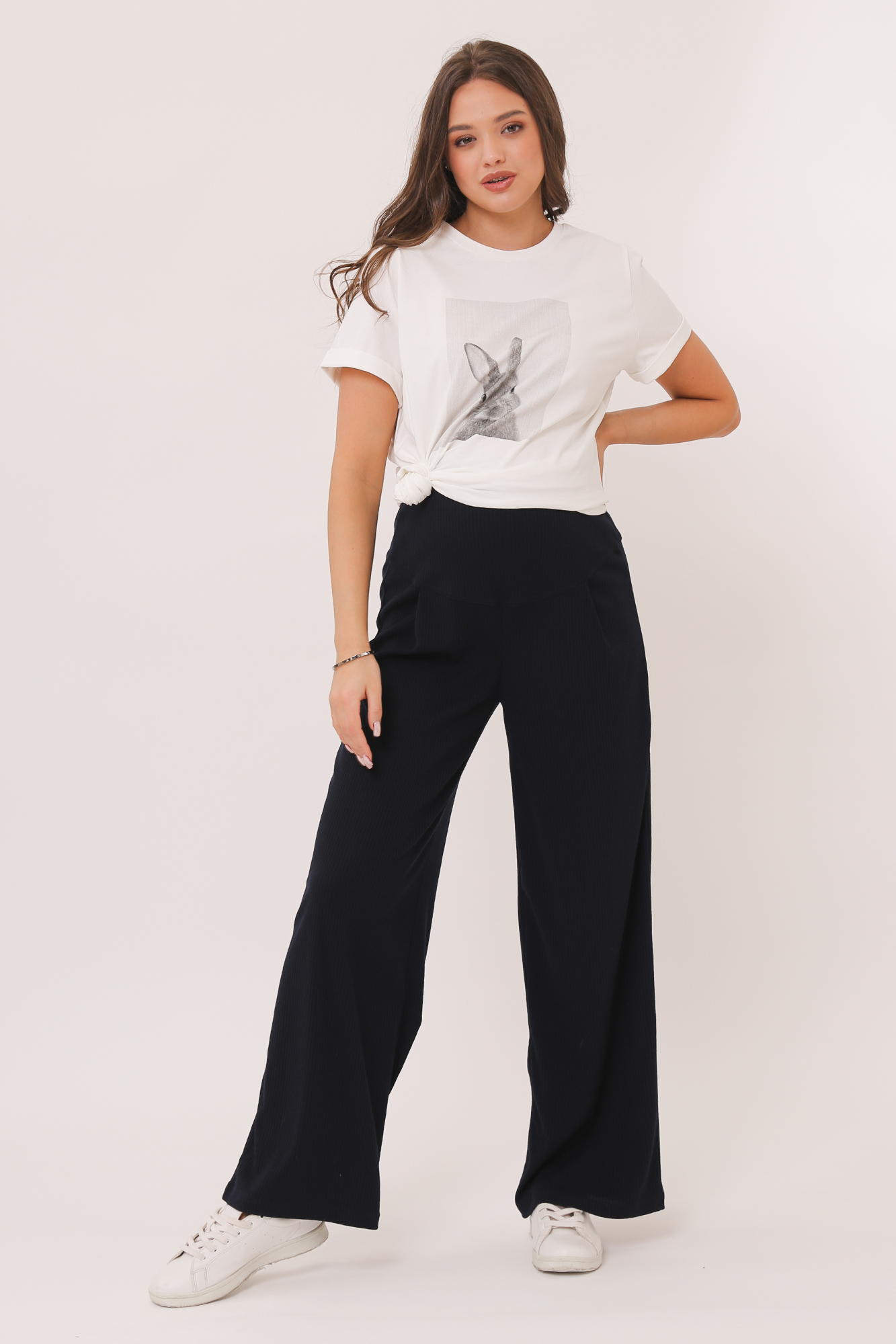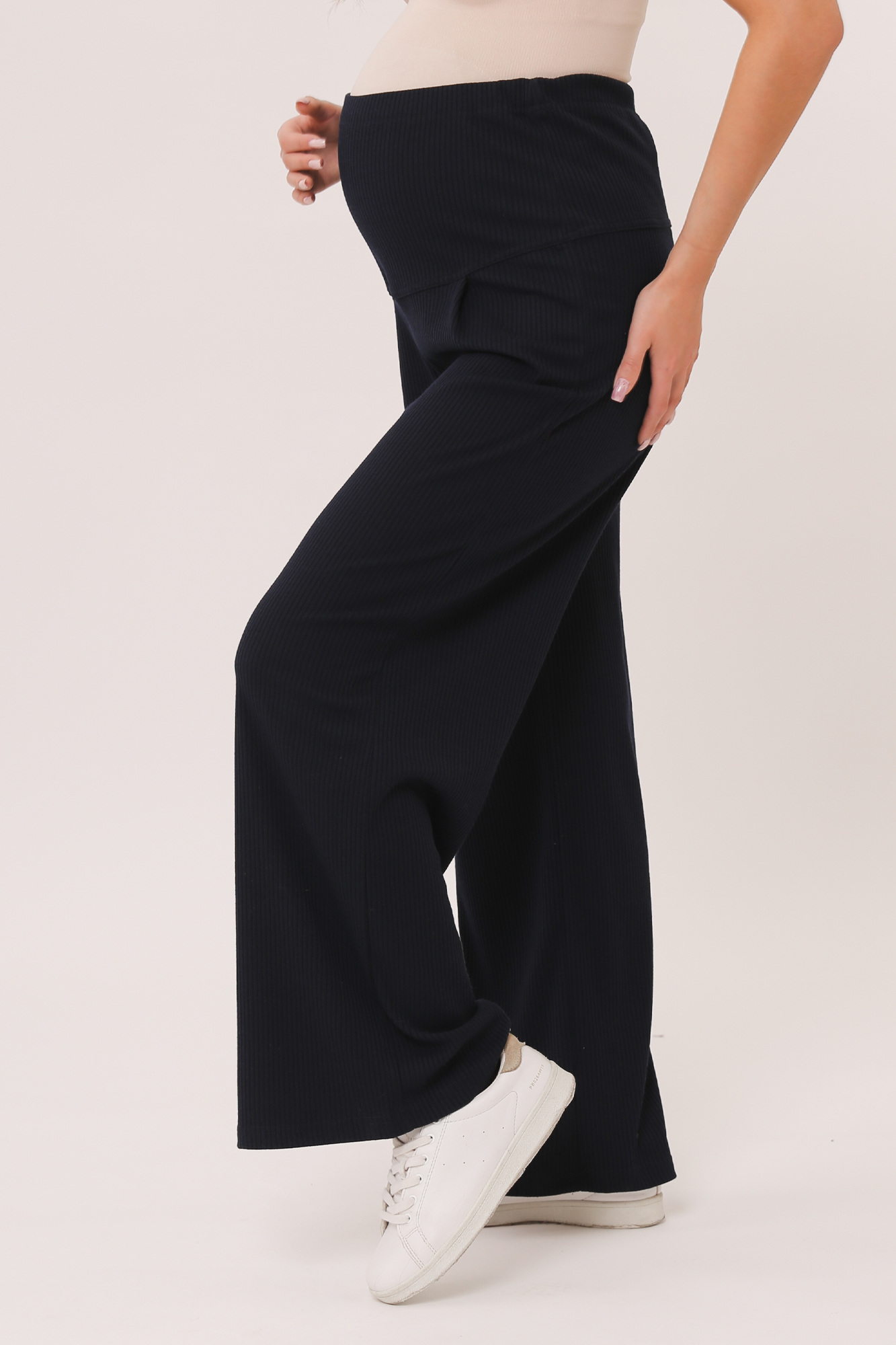 Невероятно стильные широкие прямые брюки для беременных. Базовая модель выполнена из высококачественного трикотажа "лапша". Высокая эластичная вставка обеспечивает комфорт на протяжении всей беременности и после родов. Регулировка объема осуществляется с помощью резинки, перестегивающейся на пуговицу, продетой в верхнюю часть изделия. Брюки подойдут для офиса, праздника и просто на каждый день.