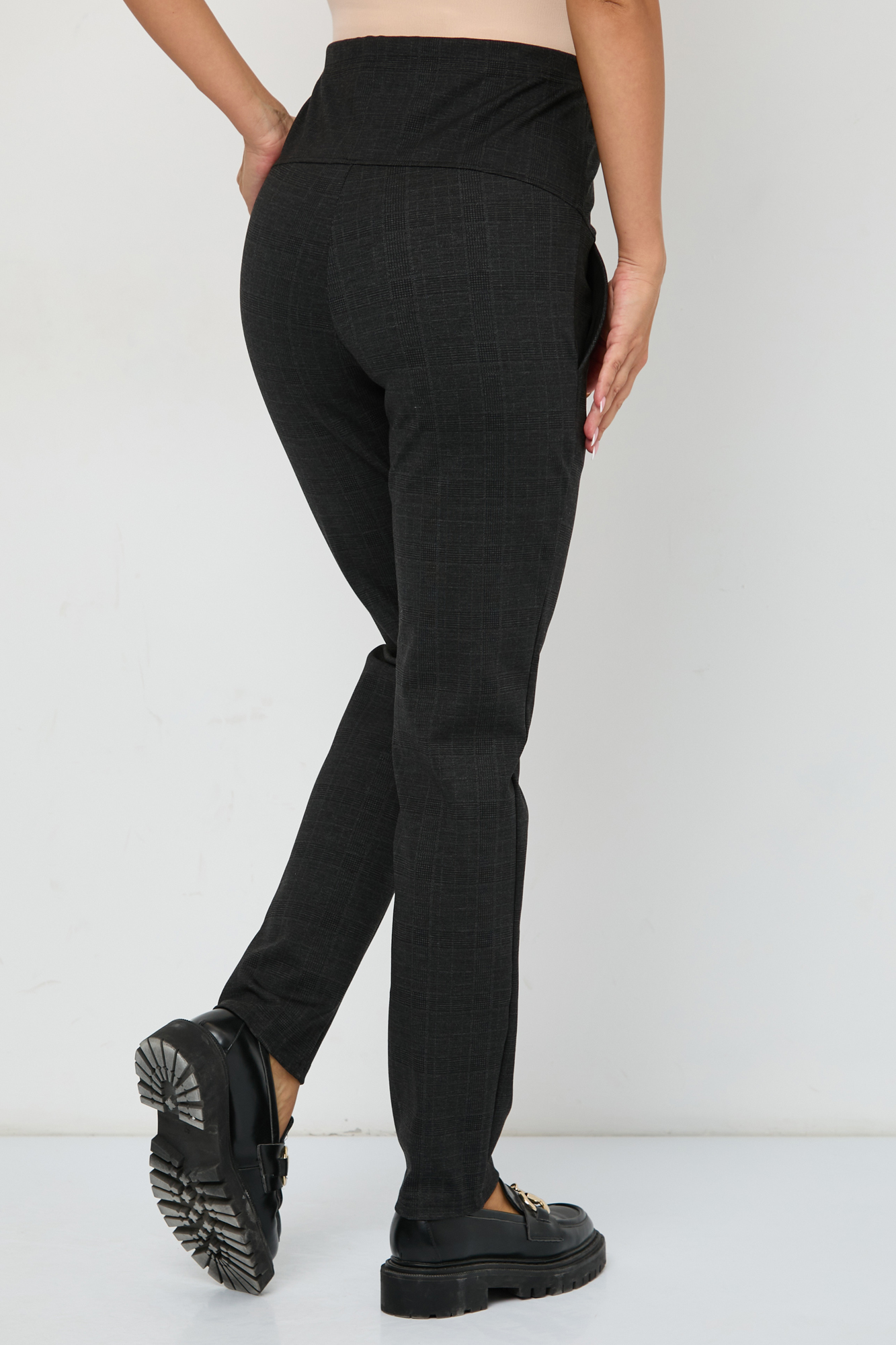 Зауженные брюки для беременных выполнены из плотного джерси. Детали: высокий эластичный бандаж, скошенные боковые карманы, отстроченные стрелки. Объем регулируется с помощью перфорированной резинки, перестегивающейся на пуговицу, продетой в верхнюю часть изделия. Эластичность ткани и регулировка объема обеспечивают идеальную посадку на всем протяжении бременности. В зависимости от подобранных дополнений они могут стать частью и офисного костюма, и одежды для непринуждённого отдыха, и наряда для торжественного события.