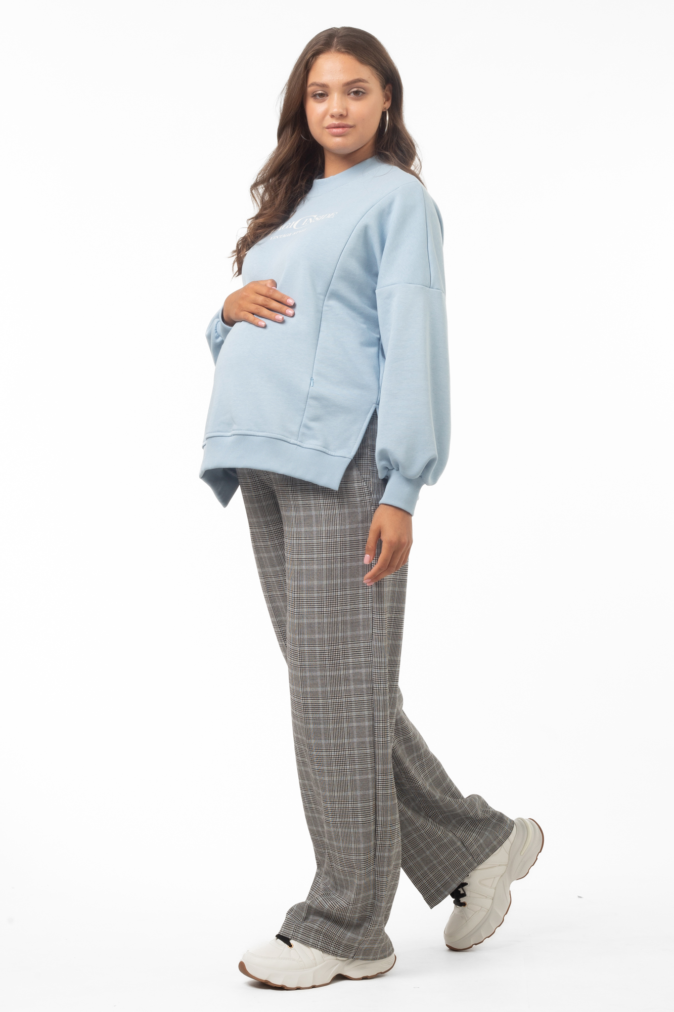Классические брюки для беременных выполнены из плотного немнущегося габардина на основе вискозы. Ткань обладает высокой износостойкостью, не дает усадки и не покрывается катышками. Крой брюк прямой, стандартной длины, с высокой посадкой. Широкий эластичный пояс обеспечивает функцию мягкого бандажа, а скрытая регулировка объема на пуговице позволяет будущей маме носить такие штаны на протяжении всего срока беременности и после рождения малыша. Брюки с высоким поясом станут удобным вариантом повседневной одежды, дополнят офисный и деловой гардероб. Они хорошо сочетаются с блузками, рубашками, лонгсливами и джемперами. Умеренная плотность материала делает штаны из габардина универсальной одеждой для любого времени года, включая зиму и демисезон.