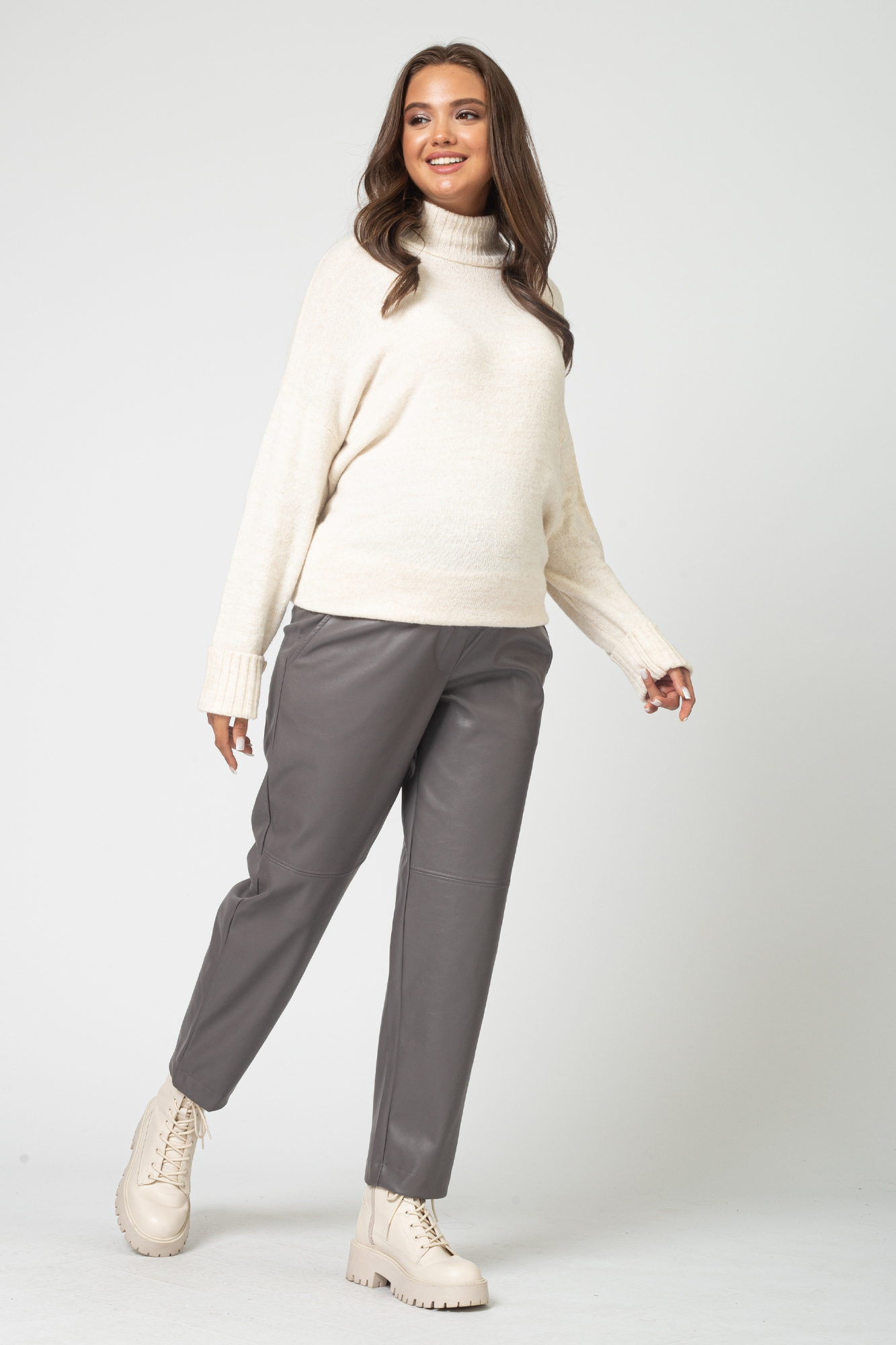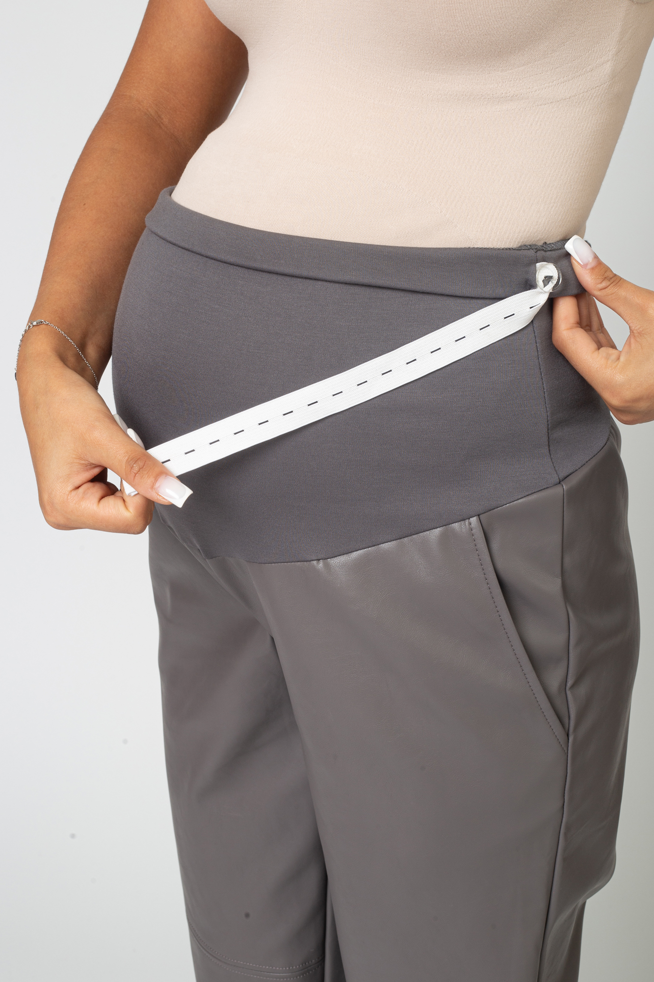 Стильные брюки для беременных из качественной экокожи с эффектной полуматовой фактурой отлично впишутся в гардероб современной будущей мамы. Фасон модели бананы гармонично смотрится на любой фигуре, а высокая посадка с эластичным поясом обеспечивают комфорт на любом месяце беременности. Брюки для беременных из экокожи подойдут для повседневной носки, гармонично впишутся в классический офисный образ, дополнят городской casual look, а при наличии пары ярких аксессуаров вполне может стать частью выходного наряда.