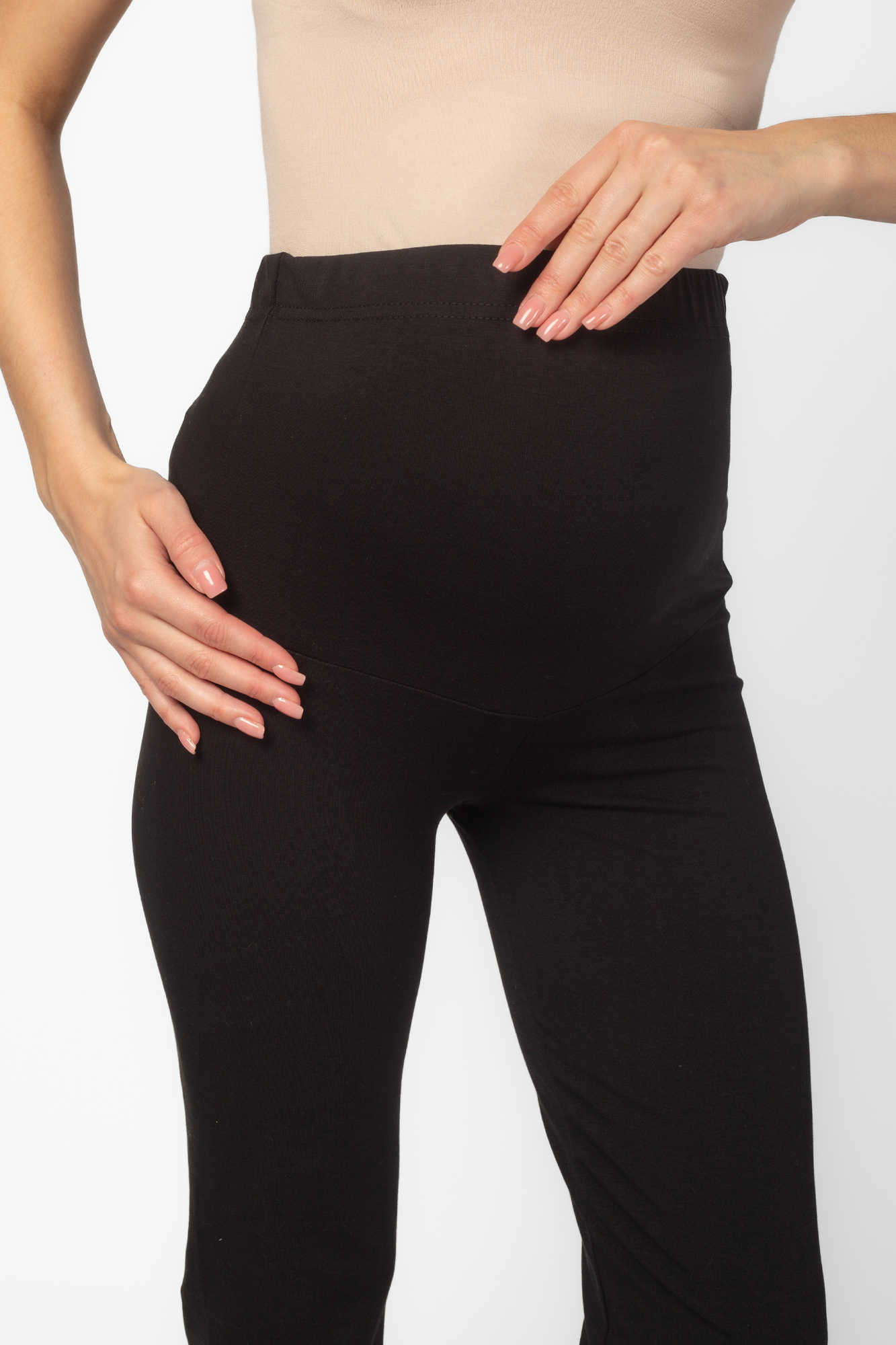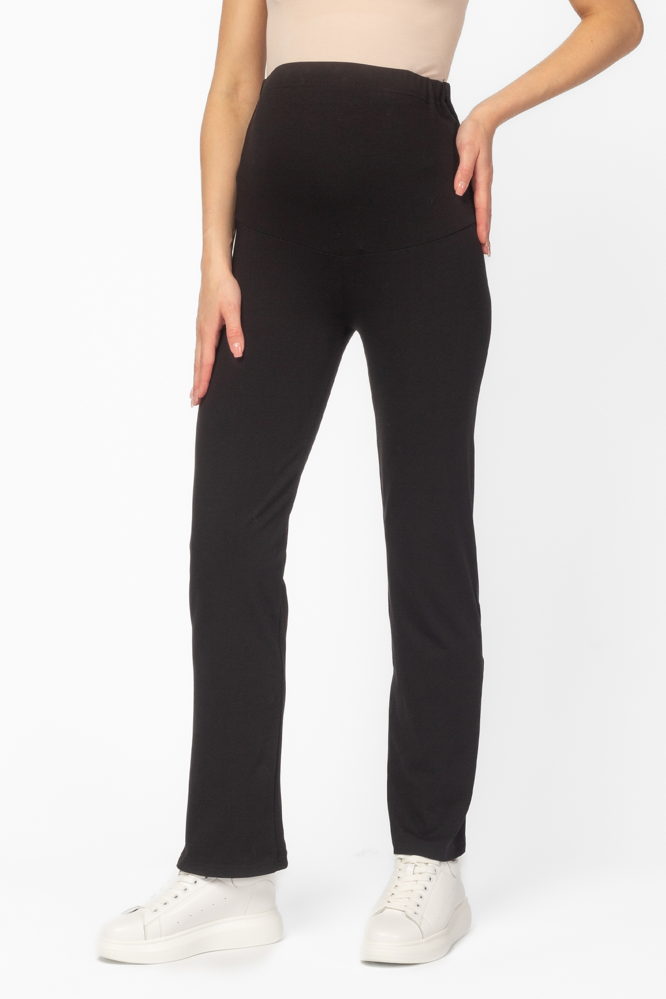 Спортивные брюки из трикотажного полотна для беременных. Благодаря крою не сковывают движений. Средняя посадка, эластичный бандаж из той же ткани позволяет носить брюки от начала до конца беременности. Объем регулируется с помощью перфорированной резинки, продетой в пояс изделия. Брюки можно носить и после беременности, свернув бандаж. Идеальны для занятий спортом, прогулок и в качестве домашней одежды.