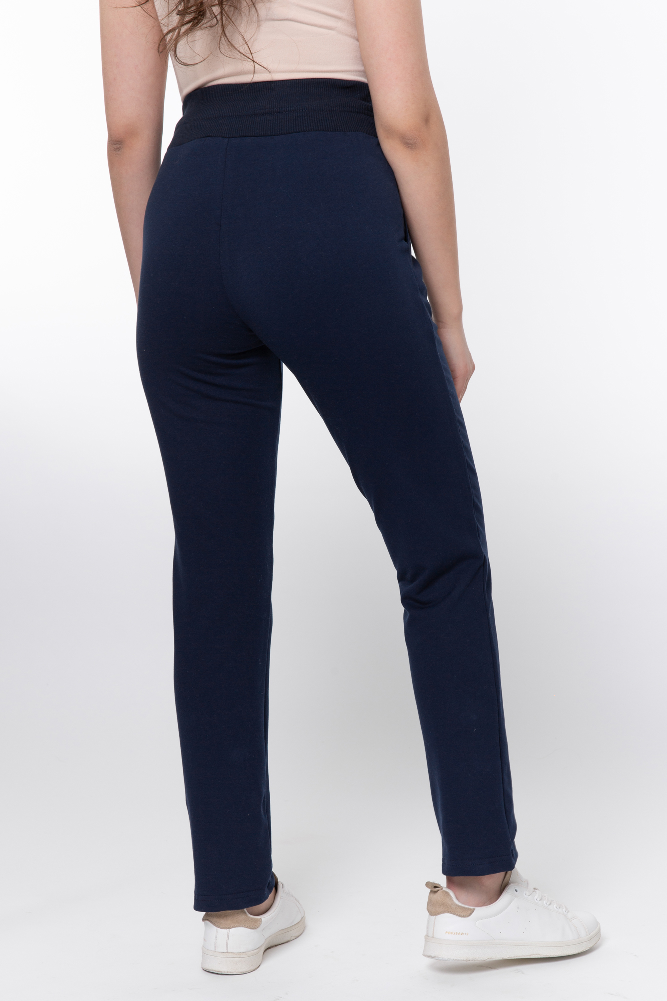 Стильные спортивные брюки беременных из двухниточного футера. Высокий эластичный бандаж мягко и деликатно поддерживает растущий животик. Объем регулируется шнурками в поясе и перфорированной резинкой, перестегивающейся на пуговицу, что позволяет носить брюки от начала до конца беременности и после родов. Брюки декорированы отстроченными стрелками. Невероятно комфортная модель для прогулок, занятий спортом и просто на каждый день.