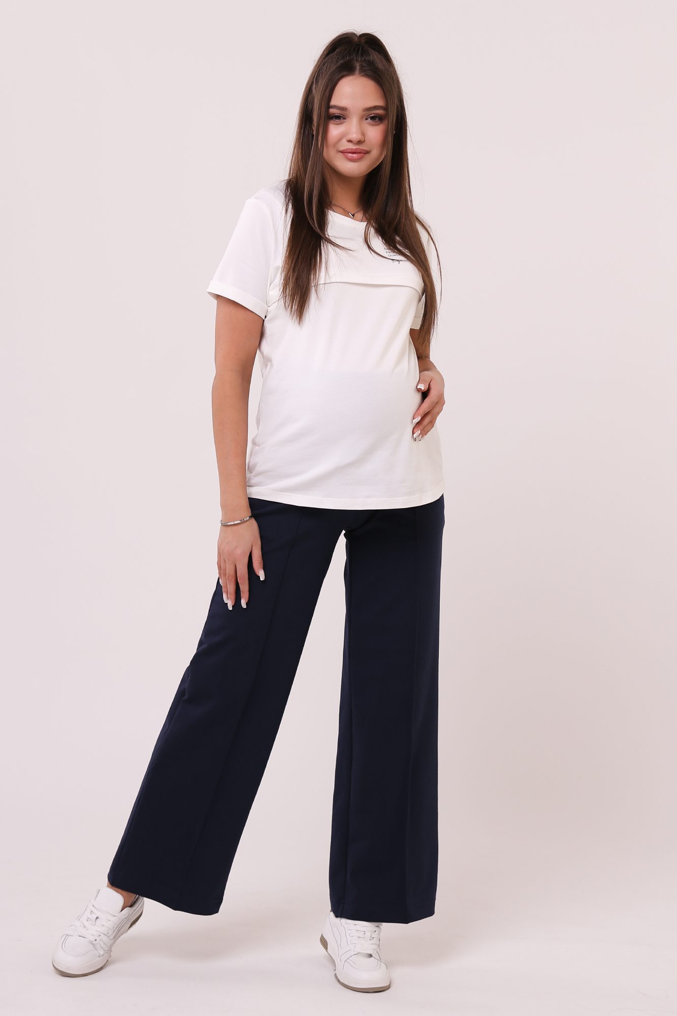 Стильные повседневные брюки для беременных из высококачественного двухниточного футера. Высокий эластичный бандаж мягко и деликатно поддерживает растущий животик. Объем регулируется шнурками в поясе и перфорированной резинкой, перестегивающейся на пуговицу, что позволяет носить брюки от начала до конца беременности и после родов. Изделие декорировано отстроченными стрелками. Невероятно комфортная модель для прогулок, занятий спортом и просто на каждый день.