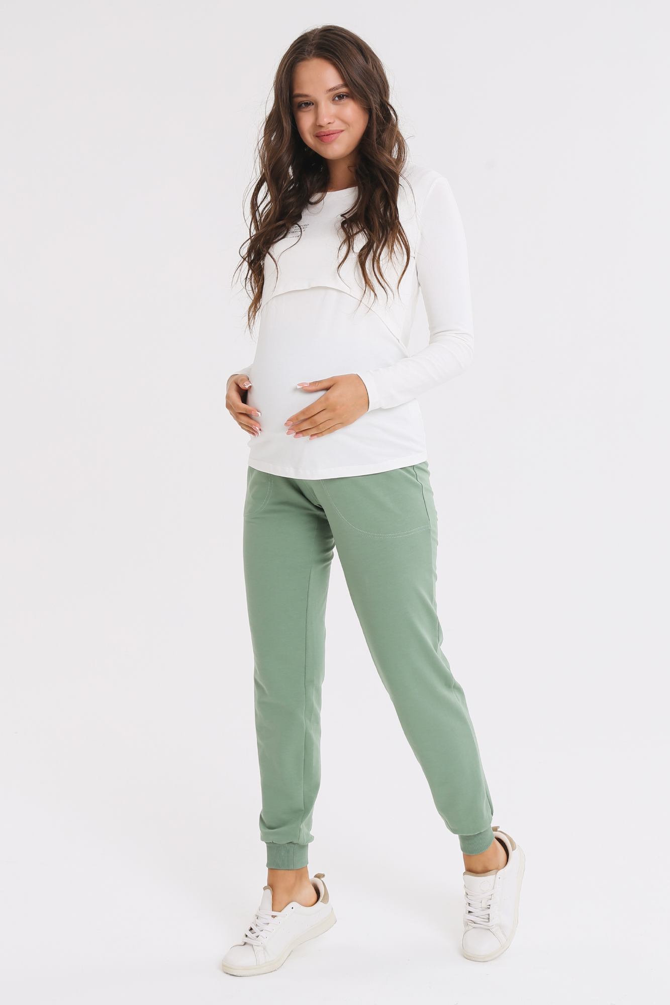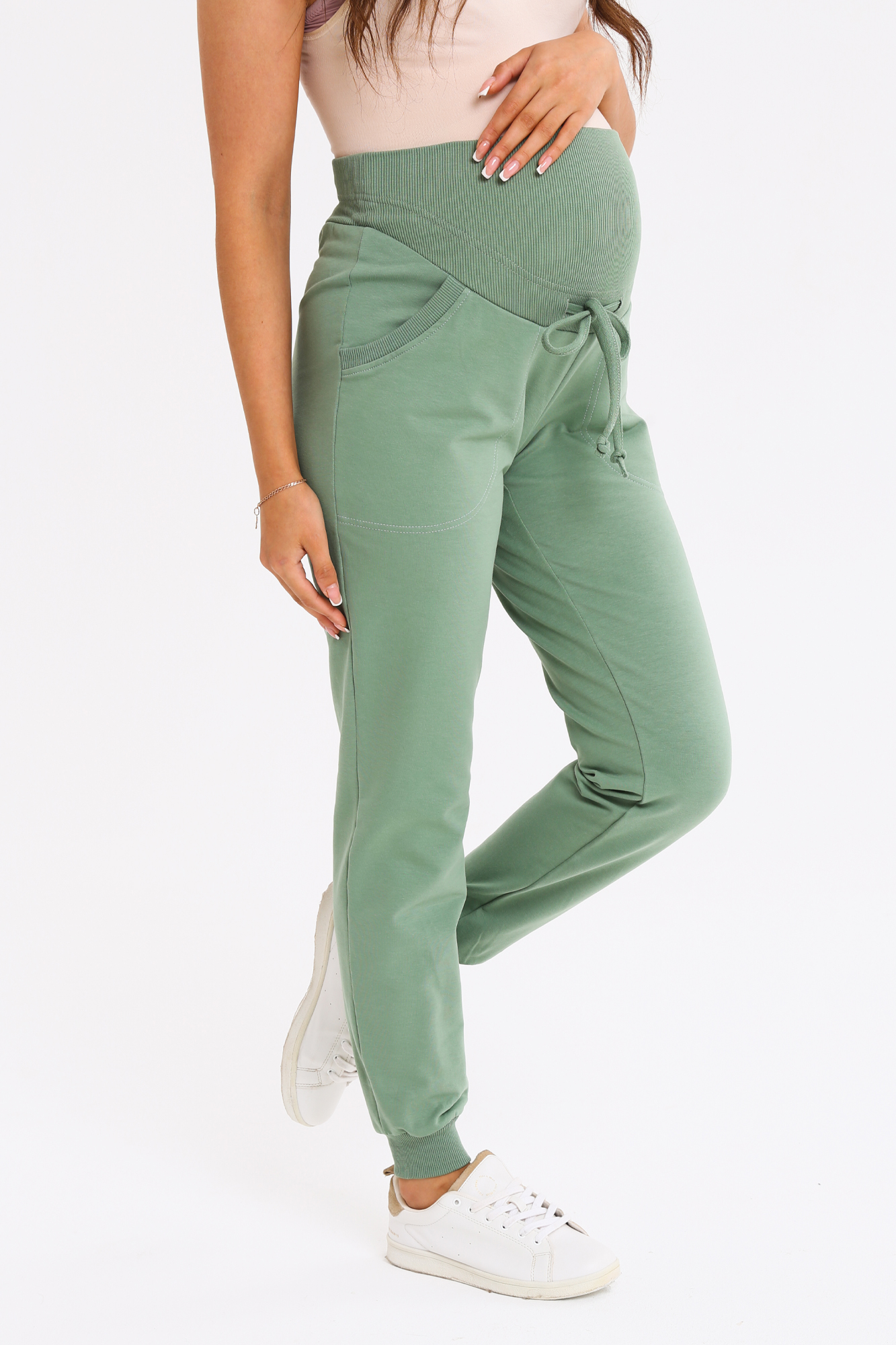 Спортивные брюки для беременных из двухниточного футера (пенье). Высокий эластичный бандаж мягко и деликатно поддерживает растущий животик. Объем регулируется шнурками в поясе и перфорированной резинкой, перестегивающейся на пуговицу, что позволяет носить брюки от начала до конца беременности и после родов. Длина регулируется подворотом брючины и подходит на любой рост. Невероятно комфортная модель для прогулок, занятий спортом и просто на каждый день.