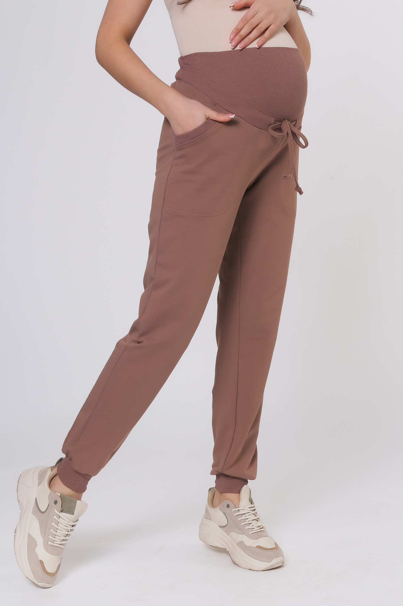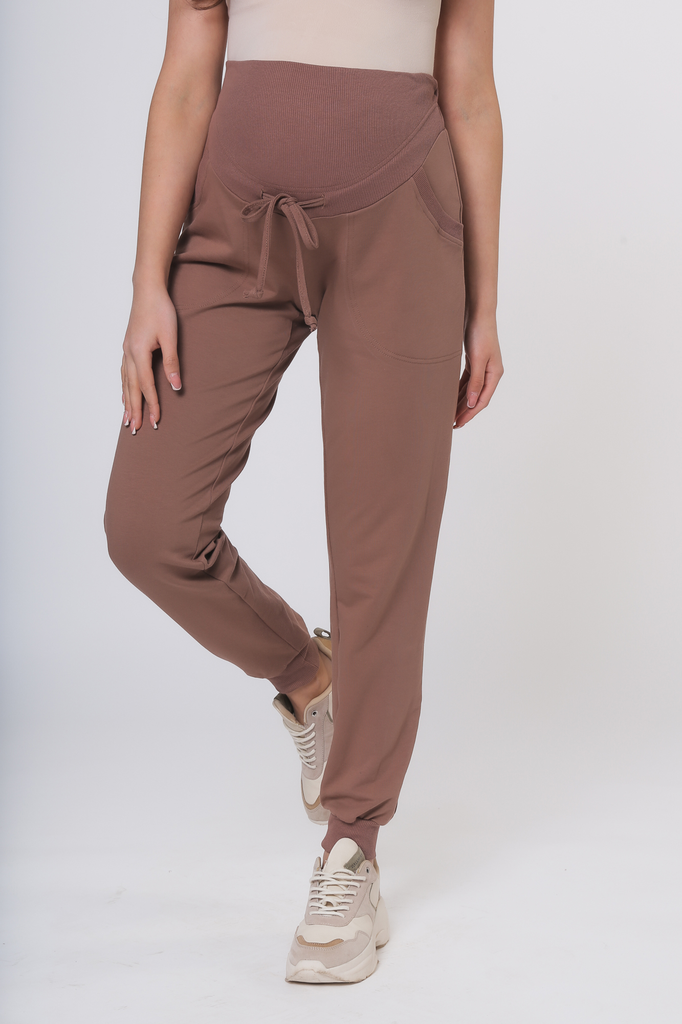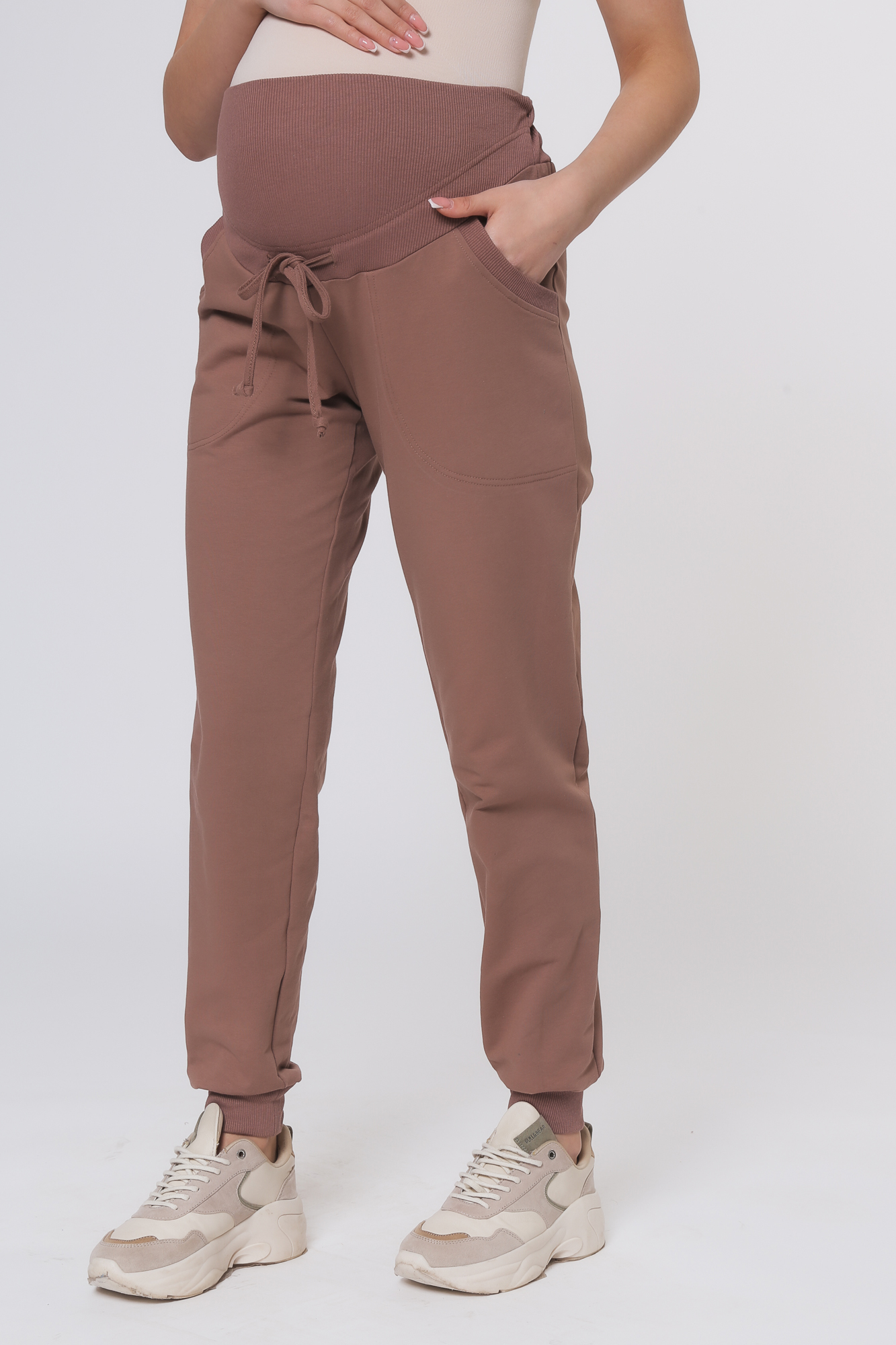 Спортивные брюки для беременных из двухниточного футера (пенье). Высокий эластичный бандаж мягко и деликатно поддерживает растущий животик. Объем регулируется шнурками в поясе и перфорированной резинкой, перестегивающейся на пуговицу, что позволяет носить брюки от начала до конца беременности и после родов. Длина регулируется подворотом брючины и подходит на любой рост. Невероятно комфортная модель для прогулок, занятий спортом и просто на каждый день.