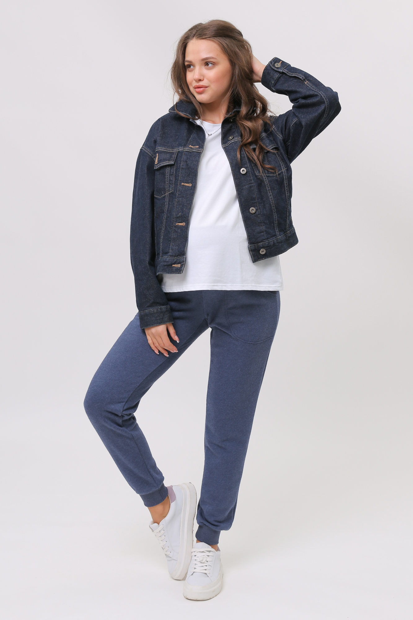 Спортивные брюки для беременных из трехниточного футера (пенье). Высокий эластичный бандаж мягко и деликатно поддерживает растущий животик. Объем регулируется шнурками в поясе и перфорированной резинкой, перестегивающейся на пуговицу, что позволяет носить брюки от начала до конца беременности и после родов. Длина регулируется подворотом брючины и подходит на любой рост. Невероятно комфортная модель для прогулок, занятий спортом и просто на каждый день.