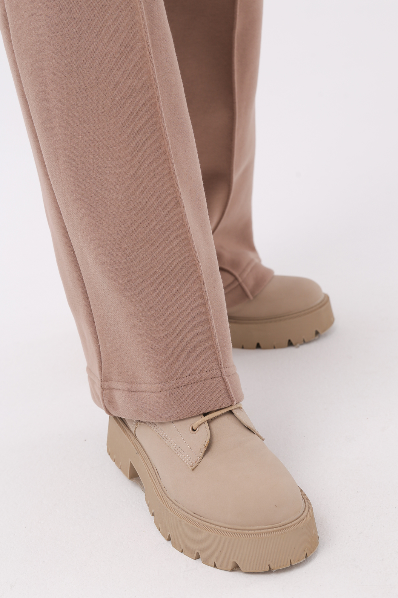 Стильные повседневные брюки для беременных из футера велюра c начесом. Высокий эластичный бандаж мягко и деликатно поддерживает растущий животик. Объем регулируется шнурками в поясе и перфорированной резинкой, перестегивающейся на пуговицу, что позволяет носить брюки от начала до конца беременности и после родов. Невероятно комфортная модель для прогулок, занятий спортом и просто на каждый день.