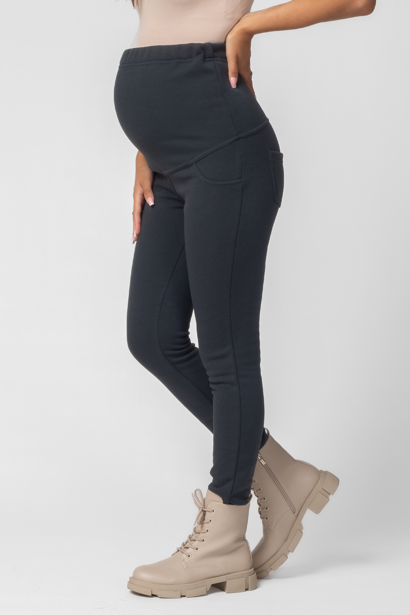 Утепленные брюки для беременных 16032 темно-серый