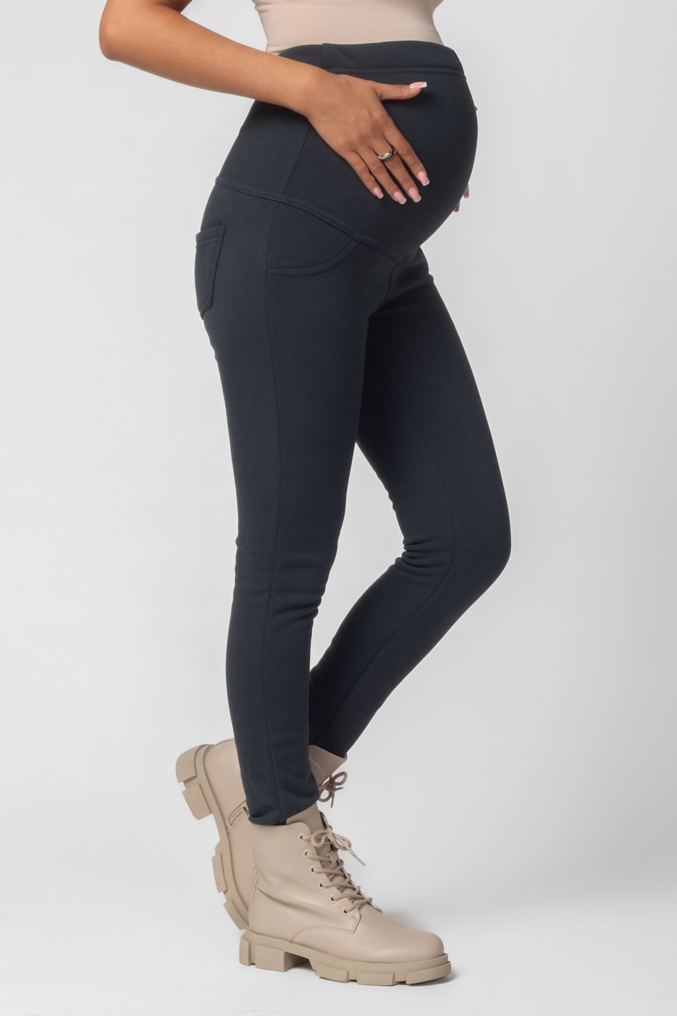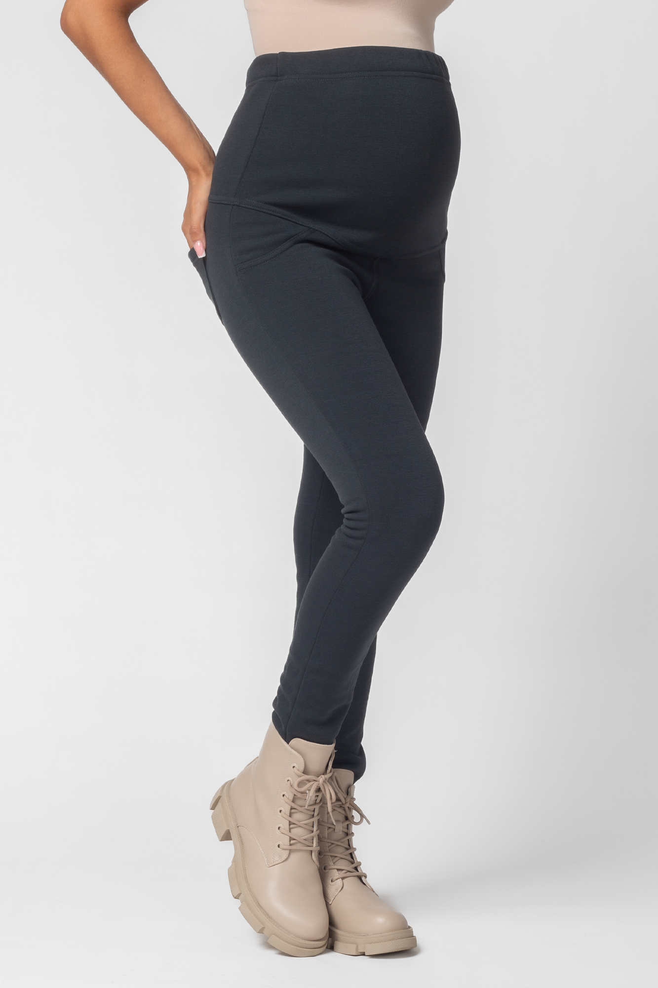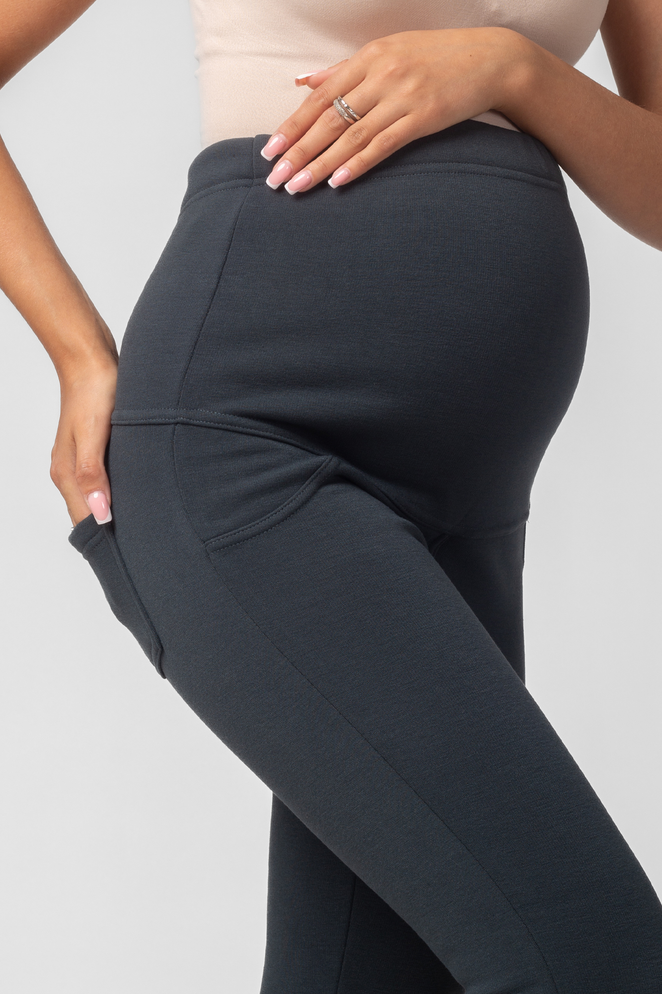 Утепленные леггинсы из плотного джерси с мехом для будущих мам. Эластичный и широкий бандаж позволит чувствовать себя комфортно на любом сроке беременности и после неё. Для регулировки объема предусмотрена перфорированная резинка, перестегивающаяся на пуговицу, продетая в пояс изделия.